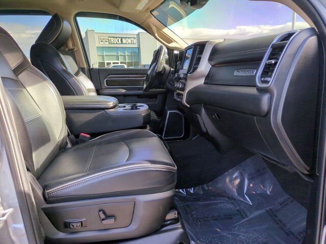 ENGINE: 6.7L I6 CUMMINS TURBO DIESEL -inc: Selective Catalytic Reduction (Urea) Dual 730 Amp Maintenance Free Batteries Cummins Turbo Diesel Badge Heavy Duty Engine Cooling Supplemental Heater 220 Amp Alternator Tow Hooks Diesel Exhaust Brake Front Bumper Sight Shields Capless Fuel Fill w/o Discriminator,BLACK LEATHER TRIM 40/20/40 BENCH SEAT,MONOTONE PAINT,TRANSMISSION: 6-SPEED AUTOMATIC (68RFE) -inc: Chrome Accent Shift Control,TIRES: LT275/70R18E OWL ON/OFF ROAD,3.73 AXLE RATIO (STD),BILLET SILVER METALLIC CLEARCOAT,MANUFACTURER'S STATEMENT OF ORIGIN,RAM TELEMATICS -inc (subscription required): telematics module (subscription required) Powered by Verizon Connect,BILLET SILVER METALLIC CLEARCOAT,220 AMP ALTERNATOR,WHEELS: 18 X 8.0 POLISHED ALUMINUM (STD),ANTI-SPIN DIFFERENTIAL REAR AXLE,QUICK ORDER PACKAGE 2HH LARAMIE -inc: Engine: 6.7L I6 Cummins Turbo Diesel Transmission: 6-Speed Automatic (68RFE),Four Wheel Drive,Tow Hitch,Power Steering,ABS,4-Wheel Disc Brakes,Brake Assist,Aluminum Wheels,Conventional Spare Tire,Heated Mirrors,Power Mirror(s),Integrated Turn Signal Mirrors,Power Folding Mirrors,Rear Defrost,Intermittent Wipers,Variable Speed Intermittent Wipers,Privacy Glass,Power Door Locks,Daytime Running Lights,Automatic Headlights,LED Headlights,Fog Lamps,AM/FM Stereo,Satellite Radio,Bluetooth Connection,Requires Subscription,Premium Sound System,MP3 Capability,Steering Wheel Audio Controls,Auxiliary Audio Input,Premium Sound System,Satellite Radio,Requires Subscription,Heated Front Seat(s),Power Driver Seat,Power Passenger Seat,Adjustable Steering Wheel,Trip Computer,Power Windows,WiFi Hotspot,Driver Adjustable Lumbar,Passenger Adjustable Lumbar,Pass-Through Rear Seat,Rear Bench Seat,Leather Steering Wheel,Heated Steering Wheel,Keyless Entry,Power Door Locks,Keyless Entry,Power Door Locks,Keyless Start,Universal Garage Door Opener,Cruise Control,Climate Control,Multi-Zone A/C,A/C,Woodgrain Interior Trim,Leather Seats,Split Bench Seat,Premium Synthetic Seats,Auto-Dimming Rearview Mirror,Driver Vanity Mirror,Passenger Vanity Mirror,Driver Illuminated Vanity Mirror,Passenger Illuminated Visor Mirror,Floor Mats,Remote Engine Start,Keyless Start,Smart Device Integration,Smart Device Integration,Bluetooth Connection,Power Door Locks,Power Windows,Adjustable Pedals,Trip Computer,Immobilizer,Security System,Traction Control,Stability Control,Traction Control,Front Side Air Bag,Rear Parking Aid,Tire Pressure Monitor,Driver Air Bag,Passenger Air Bag,Passenger Air Bag Sensor,Front Head Air Bag,Rear Head Air Bag,Child Safety Locks,Back-Up Camera