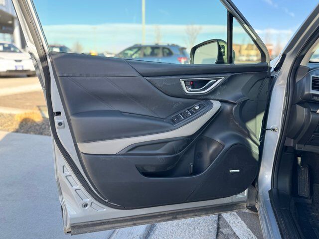 ALL-WEATHER FLOOR LINERS -inc: Part number J501SSJ030,BLACK PERFORATED LEATHER-TRIMMED UPHOLSTERY -inc: silver stitching,ICE SILVER METALLIC,SUNSHADE - WINDSHIELD -inc: Part number SOA3991722,NAV & HARMAN/KARDON & RAB & HEATED STEERING WHEEL -inc: Reverse Automatic Braking System (RAB) Heated Steering Wheel Radio: Subaru STARLINK 8.0 Multimedia Nav System AM/FM stereo HD Radio multi-touch gesture high resolution display screen voice activated controls Bluetooth audio streaming hands-free phone connectivity and hands-free SMS text messaging connectivity (refer to subaru.com for cell phone compatibility) Near Field Communication (NFC) iPod control capability SiriusXM All Access radio (4 months free trial/subscription required after) smartphone integration for AHA Android Auto Apple CarPlay Pandora and STARLINK cloud applications (refer to subaru.com for app availability) USB and Over The Air (OTA) audio system update steering wheel controls for audio and Bluetooth 3.5mm auxiliary input jack and dual USB A input/charge ports harman/kardon 9-Speaker Audio System subwoofer and 576 watt equivalent maximum output amplifier Navigation System voice activated c,CONVENIENCE PACKAGE -inc: Rear Bumper Cover Part number E771SSJ000 LED Upgrade Part number H461SSJ010 Auto-Dimming Mirror w/Compass & HomeLink Part number H501SSJ000 Auto-Dimming Exterior Mirror w/Approach Light Part number J201SFL301,All Wheel Drive,Power Steering,ABS,4-Wheel Disc Brakes,Brake Assist,Brake Actuated Limited Slip Differential,Aluminum Wheels,Tires - Front Performance,Tires - Rear Performance,Temporary Spare Tire,Sun/Moonroof,Generic Sun/Moonroof,Panoramic Roof,Heated Mirrors,Power Mirror(s),Integrated Turn Signal Mirrors,Rear Defrost,Privacy Glass,Intermittent Wipers,Variable Speed Intermittent Wipers,Rear Spoiler,Remote Trunk Release,Power Liftgate,Power Door Locks,Daytime Running Lights,Automatic Headlights,Headlights-Auto-Leveling,LED Headlights,Automatic Highbeams,Fog Lamps,AM/FM Stereo,Satellite Radio,MP3 Capability,Steering Wheel Audio Controls,Bluetooth Connection,Telematics,Auxiliary Audio Input,HD Radio,Smart Device Integration,Requires Subscription,MP3 Capability,Bluetooth Connection,Power Driver Seat,Bucket Seats,Heated Front Seat(s),Driver Adjustable Lumbar,Pass-Through Rear Seat,Rear Bench Seat,Adjustable Steering Wheel,Trip Computer,Power Windows,WiFi Hotspot,Leather Steering Wheel,Keyless Entry,Power Door Locks,Keyless Entry,Power Door Locks,Keyless Start,Remote Trunk Release,Cruise Control,Adaptive Cruise Control,Climate Control,Multi-Zone A/C,A/C,Leather Seats,Driver Vanity Mirror,Passenger Vanity Mirror,Driver Illuminated Vanity Mirror,Passenger Illuminated Visor Mirror,Floor Mats,Cargo Shade,Keyless Start,Smart Device Integration,Smart Device Integration,Requires Subscription,Power Door Locks,Power Windows,Trip Computer,Security System,Immobilizer,Cruise Control Steering Assist,Traction Control,Stability Control,Traction Control,Front Side Air Bag,Lane Departure Warning,Lane Keeping Assist,Lane Departure Warning,Front Collision Mitigation,Driver Monitoring,Telematics,Requires Subscription,Blind Spot Monitor,Cross-Traffic Alert,Evasion Assist,Tire Pressure Monitor,Driver Air Bag,Passenger Air Bag,Front Head Air Bag,Rear Head Air Bag,Passenger Air Bag Sensor,Knee Air Bag,Child Safety Locks,Driver Restriction Features,Back-Up Camera