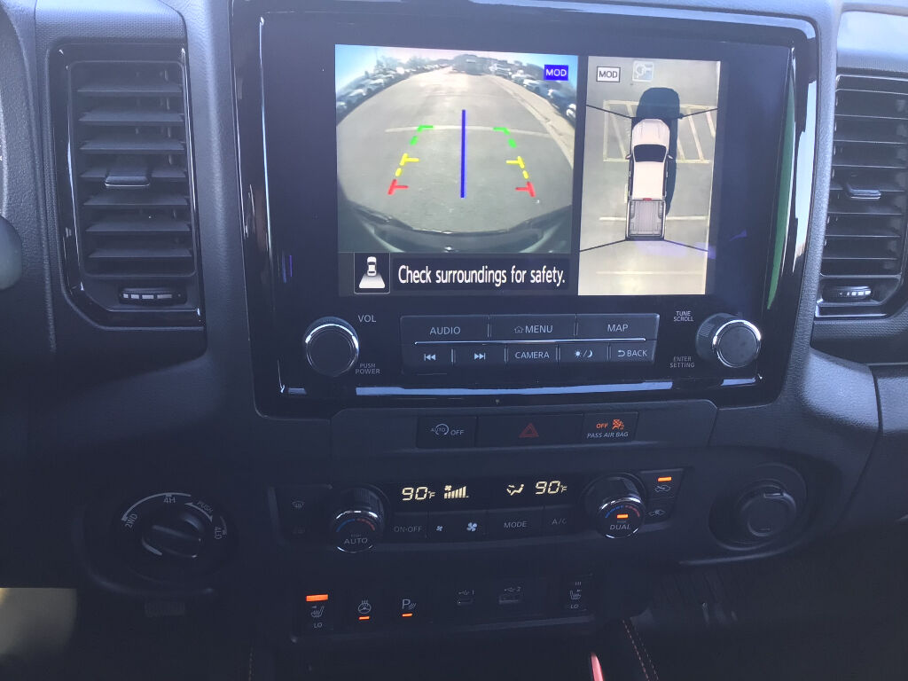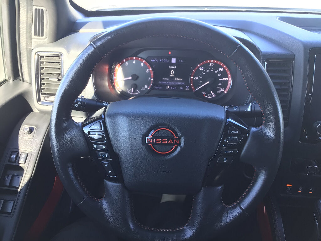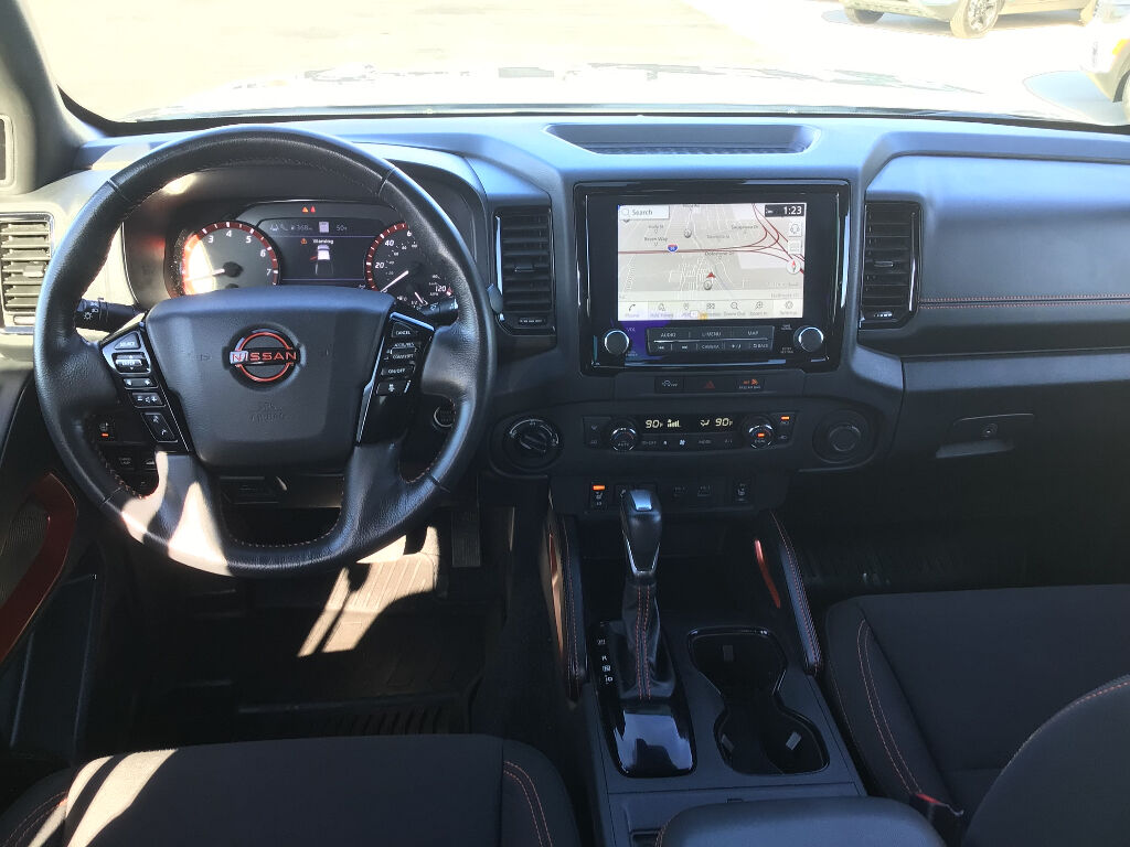 PRO Convenience Package: Bed Under-Rail Lighting; Remote Engine Starter; Trailer Hitch with Wiring Harness; 120V Power Outlet in Bed; Heated Front Seats; Heated Steering Wheel; Intelligent Around View Monitor (I-AVM); Wireless Charging For Personal Devices; Utili-Track System; Heated Outside Mirrors; Spray-In Bedliner; 120V Power Outlet in Rear Center Console,Technology Package: Rear Sonar System; Rear Automatic Braking (RAB); High Beam Assist (HBA); Blind Spot Warning (BSW); Rear Cross Traffic Alert (RCTA); Intelligent Cruise Control (ICC); Lane Departure Warning (LDW),Off-Road Style Step Rails,Bed Access Package,Off-Road Protection Package,Premium Paint - Cadinal Red Metallic Tricoat,Electronic Tailgate Lock,PRO-4X Mud Flaps,Wireless Apple CarPlay/Wired Android Auto smart device wireless mirroring,Automatic Emergency Braking with Pedestrian Detection,Automatic Emergency Braking with Pedestrian Detection,Wi-Fi Hotspot mobile hotspot internet access,RearView Monitor rear mounted camera,Intelligent Cruise Control (ICC),Brake assist system,Cruise control with steering wheel mounted controls,Nissan Navigation with Voice Recognition integrated navigation system with voice activation,Keyfob remote start,Heated steering wheel,Heated driver and front passenger seats,Primary monitor touchscreen,Lane Departure Warning (LDW),Driver seat power reclining, fore/aft control and height adjustable control,Part-time 4WD,VQ 3.8L V-6 gasoline direct injection, DOHC, VVEL variable valve control, regular unleaded, engine with 310HP,VQ 3.8L V-6 DOHC,Front wireless smart device charging,Intelligent Driver Alertness (I-DA),Traffic Sign Recognition (TSR),Intelligent Key with hands-free access and push button start,Intelligent Around View Monitor with Off-Road Mode aerial view camera,Ground view camera,Push-button,Bluetooth wireless audio streaming,Front mounted camera,Right side camera,Left side camera,Blind Spot Warning (BSW),Dual-zone front climate control,High Beam Assist (HBA) auto high-beam headlights,Immobilizer,SiriusXM Traffic/Premium Traffic - NissanConnect Services real-time traffic,NissanConnect Services vehicle integrated emergency SOS system,Bluetooth handsfree wireless device connectivity,Trailer sway control,Utili-track pickup bed rail system,NissanConnect external memory control,Advanced Drive-Assist Display digital/analog instrumentation display,Configurable instrumentation gauges,Electronic stability control system,Hill descent control,Hill Start Assist (HSA),Sliding rear windshield,Automatic climate control,Rear Door Alert rear seat check warning,Rear parking sensors,1 exterior 120V AC power outlet,LED daytime running lights,Towing/Camper Pkg,Aluminum/Alloy Wheels,Bed Liner,Fixed Running Boards,Remote Engine Starter,V6; 3.8 Liter,Automatic; 9-Spd,4WD,Technology Pkg,Blind-Spot Warning,Comfort & Convenience Pkg,Off-Road Protection Pkg,Hill Descent Control,Hill Start Assist,Traction Control,Vehicle Dynamic Control,ABS (4-Wheel),Alarm System,Keyless Entry,Push Button Start,Air Conditioning,Sliding Rear Window,Power Windows,Power Door Locks,Intelligent Cruise Control,Power Steering,Tilt Wheel,AM/FM Stereo,CD/MP3 (Single Disc),USB Port,SiriusXM Satellite,Navigation System,Bluetooth Wireless,NissanConnect,Sonar System,Backup Camera,Surround View Camera,Dual Air Bags,Side Air Bags,F&R Head Curtain Air Bags,Knee Air Bags,Collision Warning,Lane Departure Warning System,Heated Seats,Power Seat,Rear Jump Seats,Daytime Running Lights,LED Headlamps,Fog Lights,Tailgate Spoiler,Running Boards,Towing Pkg,Alloy Wheels