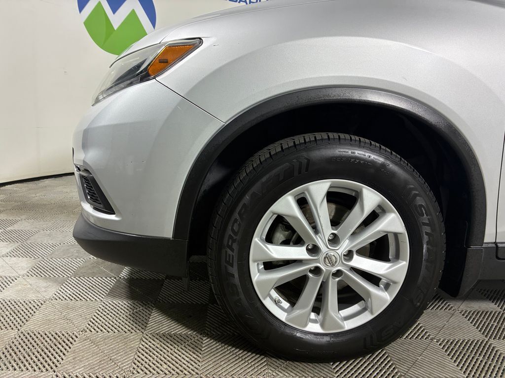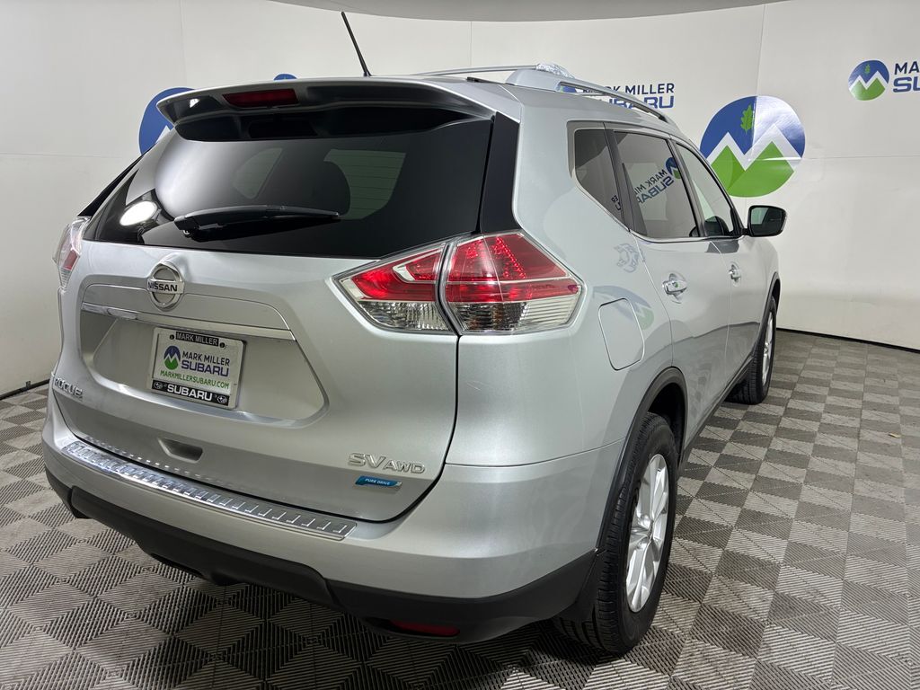 This 2014 Brilliant Silver Nissan Rogue SV AWD is well equipped and includes these features and benefits: AWD, 17'' Aluminum Alloy Wheels, 4-Wheel Disc Brakes, 5.694 Axle Ratio, 6 Speakers, ABS brakes, Activation Disclaimer, Air Conditioning, Alloy wheels, AM/FM radio: SiriusXM, Automatic temperature control, Bluetooth® Hands-Free Phone System, Brake assist, Bumpers: body-color, CD player, Chrome Rear Bumper Protector, Cloth Seat Trim, Delay-off headlights, Driver door bin, Driver vanity mirror, Dual front impact airbags, Dual front side impact airbags, Electronic Stability Control, Floor Mats w/2-PC Front & 2-PC 2nd Row, Four wheel independent suspension, Front anti-roll bar, Front Bucket Seats, Front Center Armrest w/Storage, Front dual zone A/C, Front reading lights, Fully automatic headlights, Illuminated entry, Low tire pressure warning, Occupant sensing airbag, Outside temperature display, Overhead airbag, Overhead console, Panic alarm, Passenger door bin, Passenger vanity mirror, Power door mirrors, Power driver seat, Power Liftgate, Power steering, Power windows, Radio: AM/FM/CD/RDS/AUX NissanConnect, Radio: AM/FM/CD/RDS/AUX NissanConnect w/Nav, Rear anti-roll bar, Rear seat center armrest, Rear window defroster, Rear window wiper, Remote keyless entry, Retractable Cargo Cover, Roof rack: rails only, Roof Rail Cross Bars, Security system, Speed control, Speed-sensing steering, Split folding rear seat, Spoiler, Steering wheel mounted audio controls, Tachometer, Telescoping steering wheel, Tilt steering wheel, Traction control, Trip computer, Turn signal indicator mirrors, and Variably intermittent wipers.