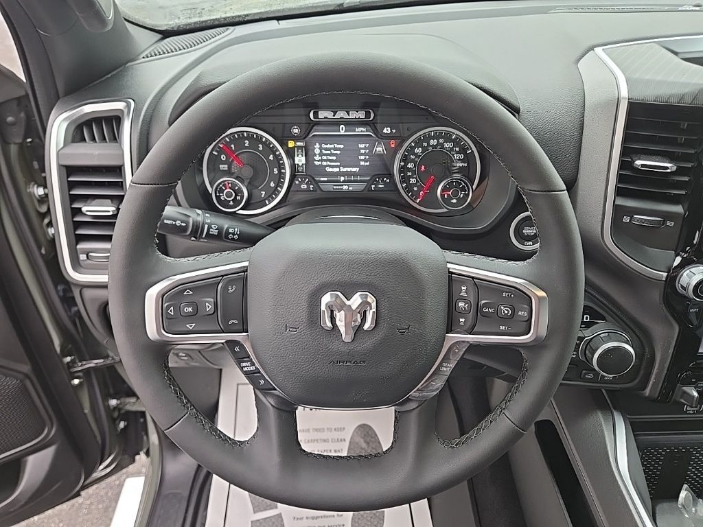 2026 Ram 1500 Big Horn/Lone Star Canyon Lake 4D Crew Cab HEMI 5.7L V8 Multi Displacement VVT eTorque 4WD 115V Auxiliary Power Outlet, 115V Auxiliary Rear Power Outlet, 12-Way/1-Way Trailer Connector, 12'' Touchscreen Display, 2nd Row in Floor Storage Bins, 3 Rear Seat Head Restraints, 4 Way Front Headrests, 4-Wheel Disc Brakes, 400W Inverter, 48V Belt Starter Generator, 4G LTE Wi-Fi Hot Spot, 6 Speakers, 9 Amplified Speakers with Subwoofer, ABS brakes, Accent Color Tailgate Handle, Air Conditioning, Air Conditioning ATC with Dual Zone Control, Alloy wheels, AM/FM radio, Apple CarPlay, Apple CarPlay/Android Auto, Auto High-beam Headlights, Auto Power-Folding Mirrors, Auto-Dimming Exterior Driver Mirror, Auto-Dimming Rear-View Mirror, Bed Utility Group, Big Horn Level 2 Equipment Group, Black Exterior Mirrors, Black Premium Power Mirrors, Black Trailer Tow Power Mirrors, Body Color Fender Flares, Brake assist, Bucket Seats, Bumpers: chrome, Center Console Parts Module, Cloth Bucket Seats, Cluster 7.0'' TFT Color Display, Compass, Configurable Drive Mode, Connected Travel and Traffic Services, Connectivity - US/Canada, Convex Wide-Angle Exterior Mirror Insert, Delay-off headlights, Deluxe Cloth Bucket Seats, Disassociated Touchscreen Display, Driver door bin, Dual front impact airbags, Dual front side impact airbags, E-Locker Rear Axle, Electronic Stability Control, Exterior 115V AC Outlet, Exterior Mirrors Courtesy Lamps, Exterior Mirrors with Heating Element, Exterior Mirrors with Supplemental Signals, Front anti-roll bar, Front Bucket Seats, Front Center Armrest w/Storage, Front Extra Heavy Duty Shock Absorbers, Front fog lights, Front License Plate Bracket, Front reading lights, Front Seat Back Map Pockets, Front wheel independent suspension, Full Length Floor Console, Fully automatic headlights, Global Telematics Box Module, Glove Box Lamp, Google Android Auto, GPS Antenna Input, GPS Navigation, HD Radio, Heated door mirrors, Heated Front Seats, Heated Steering Wheel, Illuminated entry, Integrated Center Stack Radio, Integrated Voice Command with Bluetooth, Leather Wrapped Steering Wheel, LED Dome Lamp with on/Off Switch, LED Footwell Lighting, Low tire pressure warning, Manual Adjust 4-Way Driver Seat, Manual Adjust 4-Way Front Passenger Seat, Manual Folding Exterior Mirrors, Manual Telescoping Mirrors, Manufacturer's Statement of Origin, Media Hub with 2 Charge Only USBs, Mirror Clearance/Running Lights, MOPAR 4 Adjustable Cargo Tie-Down Hooks, MOPAR Front and Rear Rubber Floor Mats, MOPAR Spray in Bedliner, Occupant sensing airbag, Off Road Decals, Off Road Group, Outside temperature display, Overhead airbag, Overhead console, Overhead LED Lamps, Panic alarm, ParkView Rear Back-Up Camera, Passenger door bin, Passenger vanity mirror, Pick-Up Box Lighting, Power 2-Way Driver Lumbar Adjust, Power Adjust 8-Way Driver Seat, Power Adjustable Pedals, Power door mirrors, Power steering, Power windows, Power-Adjustable Convex Aux Mirrors, Premium Overhead Console, Quick Order Package 27Z Big Horn, Radio data system, Radio: Uconnect 5 Navigation with 12.0'' Display, Radio: Uconnect 5 W with 8.4'' Display, Raised Ride Height, RAM Grille Badge - Chrome, Rear 60/40 Folding Seat, Rear anti-roll bar, Rear Center Armrest, Rear Extra Heavy Duty Shock Absorbers, Rear Power Sliding Window, Rear step bumper, Rear Wheelhouse Liners, Rear Window Defroster, Remote keyless entry, Remote Tailgate Release, Security Alarm, Selec-Speed Control, SiriusXM Radio Service, SiriusXM with 360L, Speed control, Steering Wheel Mounted Audio Controls, Sun Visors with Illuminated Vanity Mirrors, Supplier Part Tracking (J-1), Surround View Camera System, Tachometer, Telescoping steering wheel, Tilt steering wheel, Tow Hooks, Towing Technology Group, Traction control, Trailer Brake Control, Trailer Hitch Line-Up Assist, Trailer Reverse Steering Control, Trailer Tire Pressure Monitoring Sy Price includes: $3500 - 2026 National Retail Consumer Cash . Exp. 03/02/202