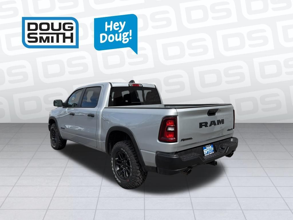 Silver Zynith 2026 Ram 1500 Rebel 4WD 8-Speed Automatic 3.0L I6 Price includes: $3500 - 2026 National Retail Bonus Cash . Exp. 04/30/2026 $750 - 2026 West BC Spring Boost Retail Bonus Cash . Exp. 04/30/2026 - Sale Price Includes: $1,500 Trade-In Allowance Incentive Program for customers that trade in a 2015 or newer passenger vehicle with 100,000 miles or less. - Offer Exp. 04/30/2026 - See Doug Smith CDJR for full details.