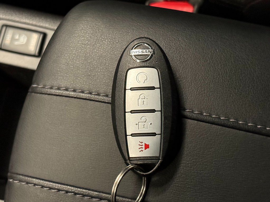 4-Wheel Disc Brakes, 6 Speakers, ABS brakes, Air Conditioning, Auto High-beam Headlights, Automatic temperature control, Blind Spot Warning, Brake assist, Dual front impact airbags, Dual front side impact airbags, Electronic Stability Control, First Aid Kit, Four wheel independent suspension, Front anti-roll bar, Front dual zone A/C, Heated door mirrors, Heated front seats, Heated steering wheel, Knee airbag, Leather-Appointed Seat Trim, Navigation system: NissanConnect Navigation, NissanConnect featuring Apple CarPlay and Android Auto, NissanConnect Services Powered By SiriusXM, Occupant sensing airbag, Overhead airbag, Panic alarm, Power driver seat, Power steering, Power windows, Radio: AM/FM NissanConnect w/Navigation, Rear anti-roll bar, Rear Parking Sensors, Rear side impact airbag, Rear window defroster, Remote keyless entry, Security system, Speed control, Speed-sensing steering, Steering wheel mounted audio controls, TPMS Sensors, Traction control, Wheels: 19'' x 7.0'' Aluminum Alloy.