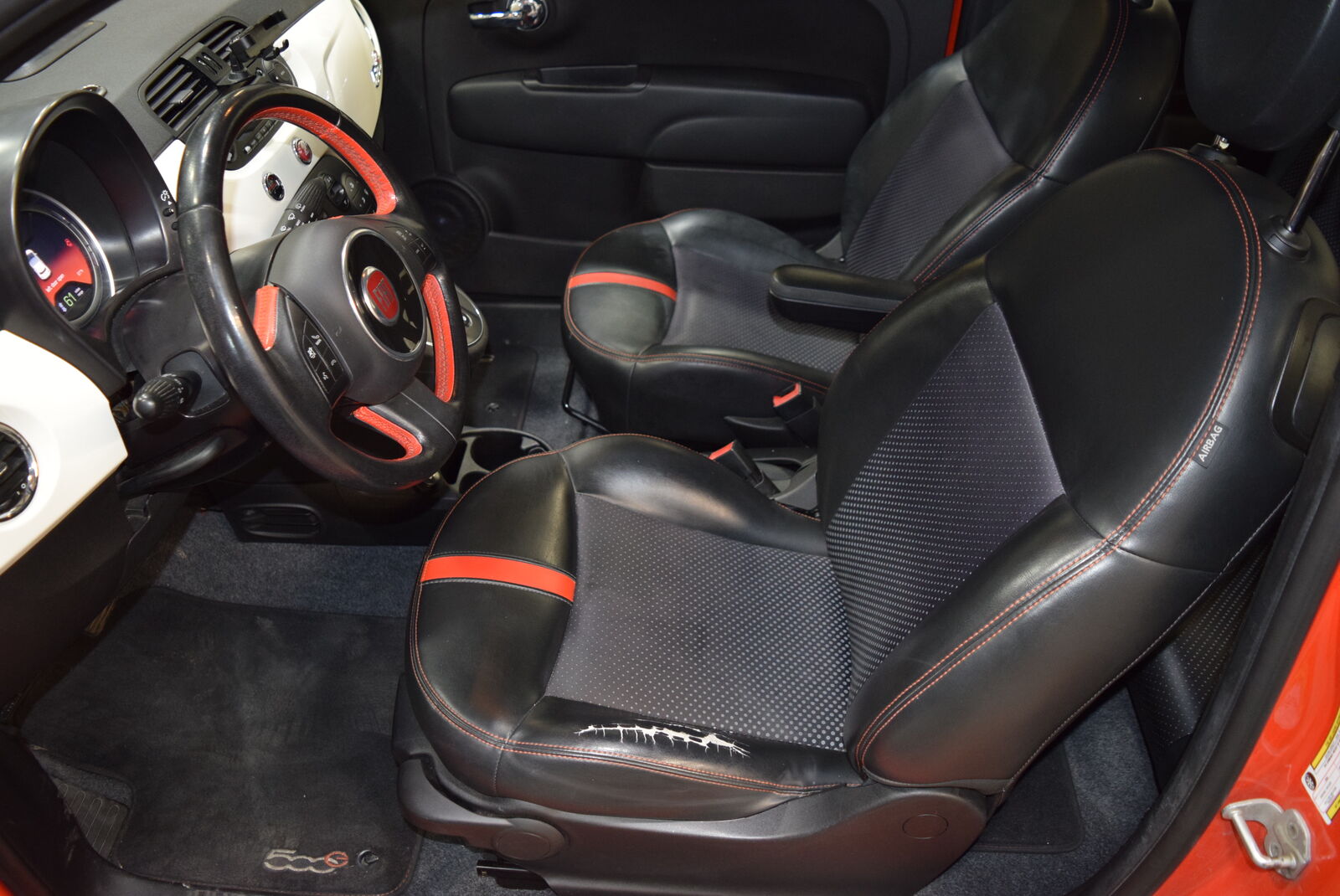 Finished in a standout orange and white exterior with a black interior, this 500e has personality for days and is surprisingly fun behind the wheel.