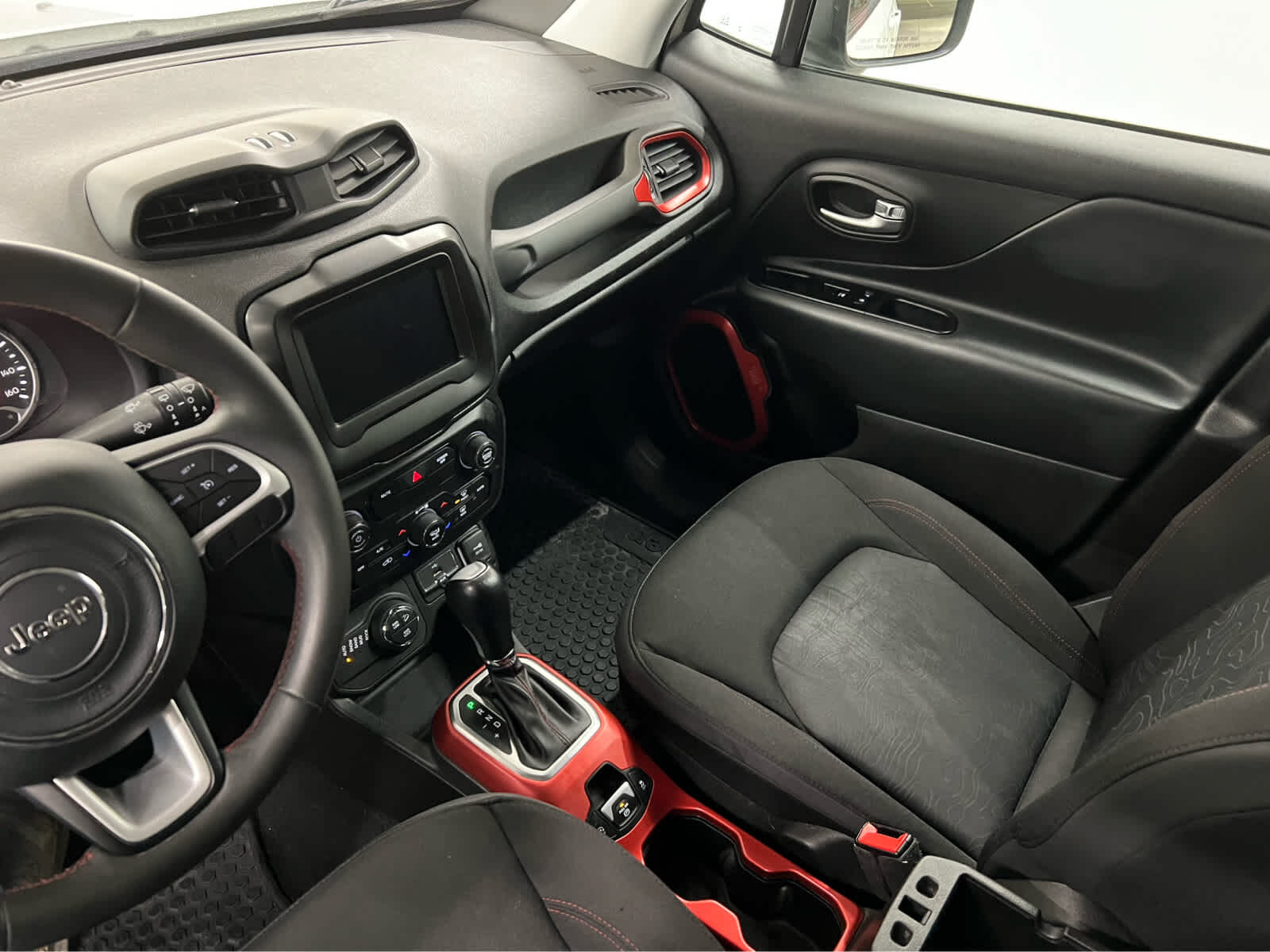 Back-Up Camera, Satellite Radio, iPod/MP3 Input, Onboard Communications System, Aluminum Wheels, Dual Zone A/C, Smart Device Integration. Rear Spoiler, MP3 Player, Privacy Glass, Child Safety Locks. Jeep Trailhawk with Alpine White Clearcoat exterior and Black interior features a 4 Cylinder Engine with 177 HP at 5750 RPM*.
