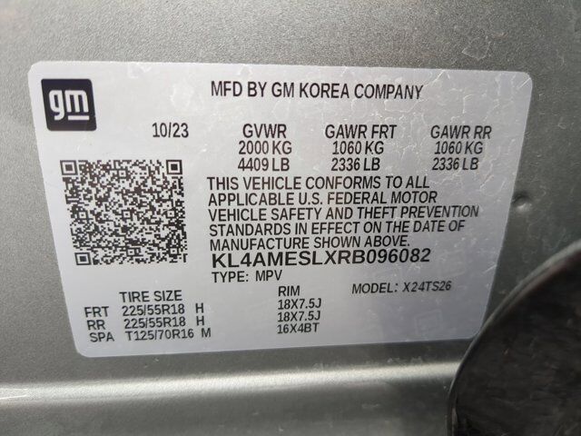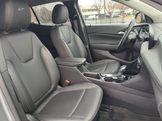 LICENSE PLATE BRACKET FRONT,AUDIO SYSTEM 11 DIAGONAL HD COLOR TOUCHSCREEN AM/FM STEREO. Additional features for compatible phones include: Bluetooth audio streaming for 2 active devices voice command pass-through to phone wireless Apple CarPlay and wireless Android Auto capable (STD),ENGINE ECOTEC 1.3L TURBO (GM-estimated 155 hp [115 kW] @ 5 600 rpm / 174 lb-ft torque [236 Nm] @ 1 600 rpm FWD/AWD models) (STD),MOONSTONE GRAY METALLIC,TRANSMISSION 9-SPEED AUTOMATIC 9T4X GEN 1 (STD),AXLE 3.17 FINAL DRIVE RATIO,SEATS FRONT BUCKET (STD),EBONY SEATS WITH EBONY INTERIOR ACCENTS LEATHERETTE SEAT TRIM,TIRES 225/55R18 ALL-SEASON BLACKWALL (STD),SPORT TOURING PREFERRED EQUIPMENT GROUP includes standard equipment,WHEELS 18 (45.7 CM) GLOSS BLACK ALUMINUM (STD),Lane Departure Warning,Lane Keeping Assist,Front Collision Mitigation,Front Collision Warning,Automatic Highbeams,Turbocharged,Immobilizer,Keyless Start,All Wheel Drive,Power Steering,ABS,4-Wheel Disc Brakes,Aluminum Wheels,Tires - Front Performance,Tires - Rear Performance,Temporary Spare Tire,Automatic Headlights,Automatic Highbeams,Heated Mirrors,Power Mirror(s),Privacy Glass,Intermittent Wipers,AM/FM Stereo,Bluetooth Connection,Smart Device Integration,Satellite Radio,Requires Subscription,Bluetooth Connection,Smart Device Integration,WiFi Hotspot,Bucket Seats,Premium Synthetic Seats,Pass-Through Rear Seat,Rear Bench Seat,Floor Mats,Floor Mats,Adjustable Steering Wheel,Cruise Control,Steering Wheel Audio Controls,Front Collision Warning,Power Windows,Power Windows,Power Windows,Power Door Locks,Keyless Entry,Power Door Locks,Cruise Control,Security System,Security System,MP3 Capability,Auxiliary Audio Input,A/C,A/C,Rear A/C,Rear Defrost,Driver Vanity Mirror,Passenger Vanity Mirror,Driver Illuminated Vanity Mirror,Passenger Illuminated Visor Mirror,Cargo Shade,Traction Control,Stability Control,Front Collision Mitigation,Front Collision Warning,Front Collision Mitigation,Daytime Running Lights,Driver Air Bag,Passenger Air Bag,Front Side Air Bag,Rear Side Air Bag,Front Head Air Bag,Rear Head Air Bag,Knee Air Bag,Passenger Air Bag Sensor,Telematics,Requires Subscription,Back-Up Camera,Blind Spot Monitor,Lane Departure Warning,Lane Keeping Assist,Cross-Traffic Alert,Front Collision Warning,Child Safety Locks,Driver Restriction Features,Tire Pressure Monitor,Tire Pressure Monitor,Telematics,Requires Subscription