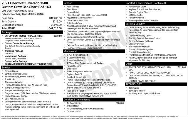 2021 Chevrolet Silverado 1500 Custom Northsky Blue Metallic 4WD 8-Speed Automatic 2.7L Turbo