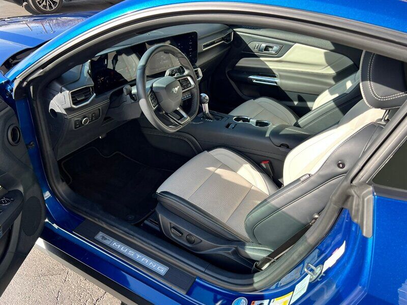 INSTALLED FEATURES: Air filtration, Front air conditioning: automatic climate control, Front air conditioning zones: dual, Airbag deactivation: occupant sensing passenger, Front airbags: dual, Knee airbags: dual front, Side airbags: front, Side curtain airbags: front / rear, Antenna type: diversity / mast, Auxiliary audio input: Bluetooth / iPod/iPhone / USB, Radio: AM/FM / HD radio / touch screen display / voice operated, Radio data system, Satellite radio: SiriusXM, Speed sensitive volume control, Total speakers: 9, ABS: 4-wheel, Braking assist, Electronic brakeforce distribution, Electronic parking brake: auto off, Front brake type: ventilated disc, Power brakes, Rear brake type: ventilated disc, Center console trim: leatherette, Dash trim: leatherette / simulated carbon fiber, Door sill trim: aluminum, Door trim: leatherette / simulated carbon fiber, Floor mat material: carpet, Floor material: carpet, Floor mats: front, Foot pedal trim: aluminum, Heated steering wheel, Interior accents: chrome, Shift knob trim: leather, Steering wheel trim: leather, Ambient lighting: color-adjustable, Capless fuel filler system, Cargo area light, Center console: front console with armrest and storage, Courtesy lights: door, Cruise control, Cupholders: 2 / front, Easy entry: manual driver seat / manual passenger seat, Footwell lights: color-adjustable, Multi-function remote: panic alarm / proximity entry system / trunk release, One-touch windows: 2, Overhead console: front, Power outlet(s): 12V front / USB front, Power steering: variable/speed-proportional, Push-button start, Reading lights: front, Rearview mirror: auto-dimming, Steering wheel: tilt and telescopic, Steering wheel mounted controls: audio / cruise control / phone / voice control, Storage: door pockets / sunglasses holder, Universal remote transmitter: Homelink - garage door opener, Vanity mirrors: dual illuminating, Wireless charging station: front, Active grille shutters, Door handle color: body-color, Exhaust: dual tip, Exhaust tip color: chrome, Front bumper color: body-color, Grille color: black, Mirror color: body-color, Rear bumper color: body-color, Rear spoiler: decklid, Rear spoiler color: body-color, Window trim: black, Connected in-car apps: app marketplace integration / driving performance / Google POIs / Google search, Infotainment: SYNC, Infotainment screen size: 13.2 in., Smartphone integration: wireless Android Auto / wireless Apple CarPlay, Clock, Customizable instrument cluster, Digital odometer, External temperature display, Fuel economy display: MPG / range, Gauge: tachometer, Instrument cluster screen size: 12.4 in., Multi-function display, Trip odometer, Warnings and reminders: coolant temperature warning / lamp failure / low fuel level / low oil level / low oil pressure / low washer fluid / maintenance due, Daytime running lights: LED, Exterior entry lights: approach lamps / puddle lamps, Front fog lights: LED, Headlights: auto delay off / auto high beam dimmer / auto on/off / LED / wiper activated, Taillights: LED, Side mirror adjustments: manual folding / power, Side mirrors: heated / integrated turn signals, Auxiliary oil cooler, Battery: maintenance-free, Battery saver, Drive mode selector, Limited slip differential: rear, Automatic emergency braking: front / front pedestrian / rear, Blind spot safety: sensor/alert, Camera system: rearview, Child seat anchors: LATCH system, Cross traffic alert: rear, Crumple zones: front / rear, Driver attention alert system, Emergency interior trunk release, Impact sensor: alert system / post-collision safety system, Lane deviation sensors, Lane keeping assist, Parking sensors: rear, Pre-collision warning system: audible warning / pedestrian detection / visual warning, Programmable safety key, Rearview monitor: in dash, Vehicle exit safety system, Emergency locking retractors: front, Front seatbelts: 3-point, Rear seatbelts: 3-point, Seatbelt force limiters: front, Seatbelt pretensioners: front, Seatbelt warning sensor: front, Driver seat: cooled / heated, Driver seat manual adjustments: reclining, Driver seat power adjustments: 6 / height / lumbar, Front headrests: 2 / adjustable, Front seat type: bucket, Passenger seat: cooled / heated, Passenger seat manual adjustments: reclining, Passenger seat power adjustments: 4 / height, Rear headrests: 2 / integrated, Rear seat folding: split, Rear seat type: 50-50 split bench, Rear seat upholstery: vinyl, Upholstery: leather-trimmed, Anti-theft system: alarm / perimeter alarm / vehicle immobilizer, Power door locks: anti-lockout / auto-locking, Hill holder control, Stability control, Traction control, Front shock type: gas, Front spring type: coil, Front stabilizer bar: diameter 32 mm, Front struts: MacPherson, Front suspension classification: independent, Front suspension type: double ball joint, Rear shock type: monotube, Rear spring type: coil, Rear stabilizer bar: diameter 22 mm, Rear suspension classification: independent, Rear suspension type: multi-link, Electronic messaging assistance: with read function, Hands-free phone call integration: voice operated, Smart device app compatibility: FordPass Connect, Smart device app function: engine start / lock operation / maintenance status / vehicle location, Wi-Fi: hotspot, Wireless data link: Bluetooth, Spare tire mount location: inside, Spare tire size: temporary, Spare wheel type: steel, Tire Pressure Monitoring System, Wheels: painted aluminum alloy, Front wipers: rain sensing / variable intermittent, Power windows: remotely operated / safety reverse, Window defogger: rear