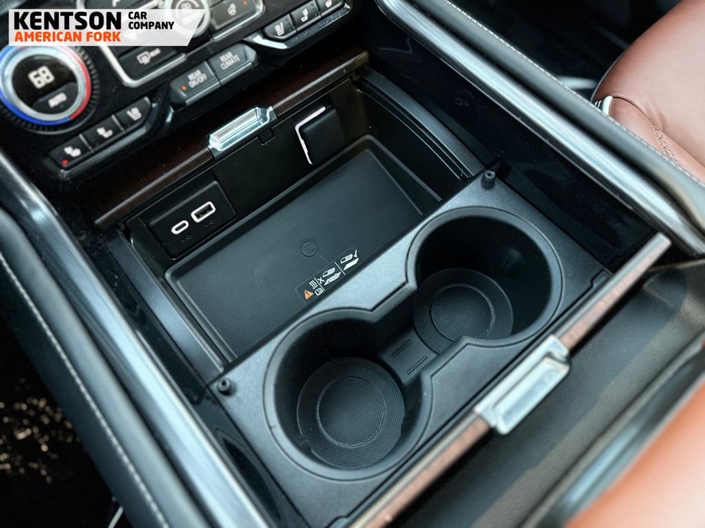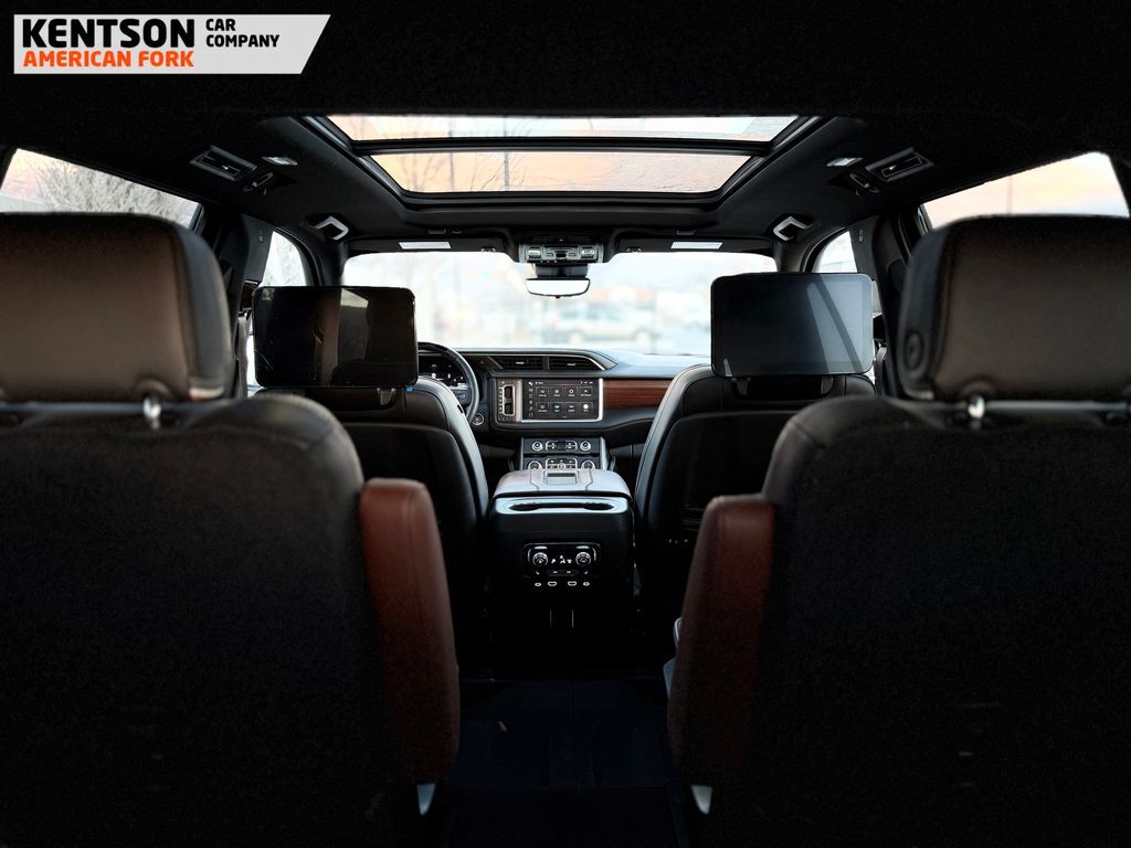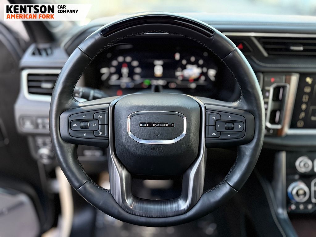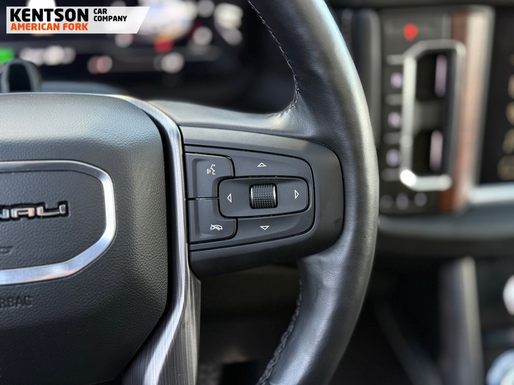 Advanced Security Package (Glass Breakage Sensor, Theft-Deterrent Alarm System, Vehicle Inclination Sensor, and Vehicle Interior Movement Sensor), Advanced Technology Package (Enhanced Automatic Parking Assist, Inside Rearview Auto-Dimming Rear Camera Mirror, Rear Camera Mirror Washer, and Reverse Automatic Braking), Max Trailering Package (Extra Capacity Cooling System), Premium Capability Package w/Active Response 4WD (Air Ride Adaptive Suspension and Electronic Limited Slip Differential (eLSD)), 15'' Diagonal Multi-Color Head-Up Display, 16-Way Power Seat Adjusters, 18 Speakers, 2 Presets For Outside Rearview Mirrors, 3.23 Rear Axle Ratio, 3rd Row 60/40 Power-Folding Split-Bench Seat, 3rd row seats: split-bench, 4-Wheel Disc Brakes, ABS brakes, Adaptive Cruise Control, Adaptive suspension, Air Conditioning, Alloy wheels, AM/FM radio: SiriusXM with 360L, AM/FM Stereo, Apple CarPlay/Android Auto, Auto High-beam Headlights, Auto-dimming door mirrors, Auto-dimming Rear-View mirror, Auto-leveling suspension, Automatic temperature control, Bodyside moldings, Bose Performance Series Sound System w/18 Speakers, Brake assist, Bright Front & Rear Door Sill Plates, Bumpers: body-color, Chrome Door Handles w/Body-Color Strip, Compass, Delay-off headlights, Driver door bin, Driver vanity mirror, Dual Exhaust System, Dual front impact airbags, Dual front side impact airbags, Dual-Pane Panoramic Power Sunroof, Electronic Stability Control, Emergency communication system: OnStar and GMC connected services capable, Enhanced Automatic Emergency Braking, Floor Console, Four wheel independent suspension, Front anti-roll bar, Front Bucket Seats, Front Center Armrest, Front dual zone A/C, Front fog lights, Front reading lights, Full Grain Leather Seats, Fully automatic headlights, Garage door transmitter, Hands-Free Power Programmable Rear Liftgate, HD Surround Vision, Headphones, Heads-Up Display, Heated 2nd Row Outboard Position Seats, Heated door mirrors, Heated Driver & Front Passenger Seats, Heated front seats, Heated rear seats, Heated Steering Wheel, Heated steering wheel, Hill Descent Control, Hitch View, Illuminated entry, Integrated Trailer Brake Controller, Leather steering wheel, Leather-Wrapped Steering Wheel, Low tire pressure warning, Magnetic Ride Control Suspension, Memory seat, Navigation System, Occupant sensing airbag, Outside Heated Power-Adjustable Mirrors, Outside temperature display, Overhead airbag, Overhead console, Panic alarm, Passenger door bin, Passenger vanity mirror,