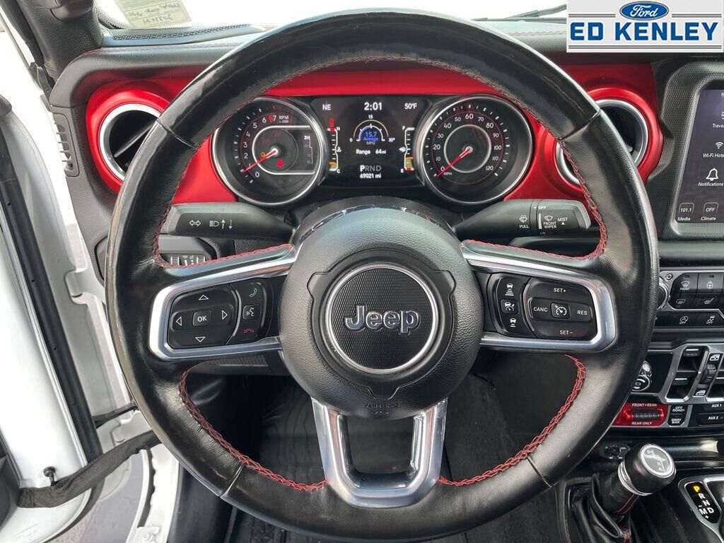 Keep your hands warm all winter with a heated steering wheel in the vehicle . The leather seats in the vehicle are a must for buyers looking for comfort, durability, and style. This 1/2 ton pickup offers Automatic Climate Control for personalized comfort. Start it from inside with remote start. This model features a hands-free Bluetooth phone system. The installed navigation system will keep you on the right path. Protect this unit from unwanted accidents with a cutting edge backup camera system. This 1/2 ton pickup's Forward Collision Warning feature alerts drivers to potential front-end collisions. It has auto-adjust speed for safe following. This 2021 Jeep Gladiator has a clean CARFAX vehicle history report. The state of the art park assist system will guide you easily into any spot. This Jeep Gladiator comes equipped with Android Auto for seamless smartphone integration on the road. It offers Apple CarPlay for seamless connectivity.