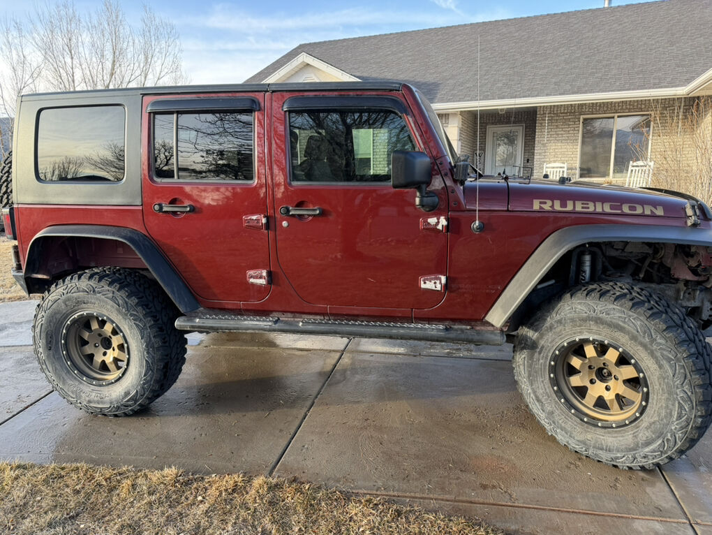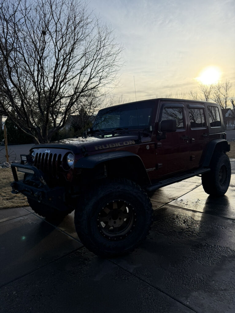 2008 Jeep wrangler unlimited. Been a great family jeep unfortunately we are looking at getting into a newer truck to tow our camper with so this has got to go! This jeep is a beautiful maroon color with bronze wheels with the matching spare. Wheels are wrapped in 37 inch pro comp tires that still have tons of life left! We were told by the previous owner that he had replaced the motor around 78k to 80k miles. Axles have been re-geard to 5.13 to handle the larger tires. All lockers work. 12,000k rough country winch with synthetic line in the front. Looking for $17,000 OBO.