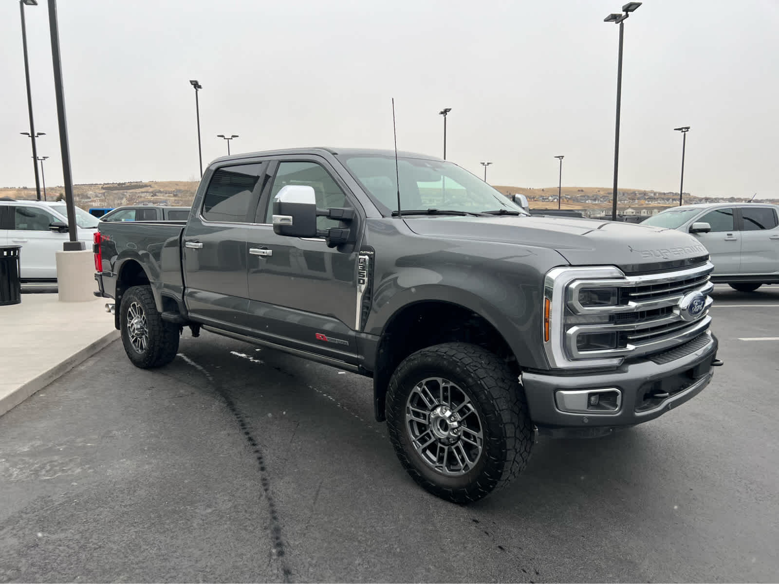 ENGINE: 6.7L HIGH OUTPUT POWER STROKE V8 DIESEL Turbo diesel B20, manual push-button engine-exhaust braking and Operator Commanded Regeneration (OCR), 250 Amp Alternator, 34 Gallon Fuel Tank, GVWR: 12,000 lb Payload Package, 3.31 Axle Ratio, Dual 68 AH AGM 750 CCA Batteries, PLATINUM PLUS PACKAGE satin chrome tailgate applique, front premium suede wrapped pillars, front premium leather interior grab handles and upgraded floor mat accents matching premium interior theme, Platinum Plus experience includes premium maintenance plan - coverage up to 2 years or 25,000 miles (whichever comes first), Covers routine inspections, preventive care, and replacement of normal wear and tear items that require periodic attention, elite welcome call, welcome package and tribute item, accessories discount (90 day window), FordPass rewards upgrade tier and 1:1 texting w/Ford truck expert, Premium Venetian Leather Door Panel, applied French stitching, Upfitter Switches (6), Located in overhead console, Illuminated Scuff Plates, Premium Leather IP Topper, upgraded Microwelt, TOUGH BED SPRAY-IN BEDLINER tailgate-guard, black box bed tie-down hooks and black bed attachment bolts, ELECTRONIC-LOCKING W/3.31 AXLE RATIO, TRANSMISSION: TORQSHIFT 10-SPEED AUTOMATIC SelectShift and selectable drive modes: normal, eco, slippery roads, tow/haul and off-road (STD).