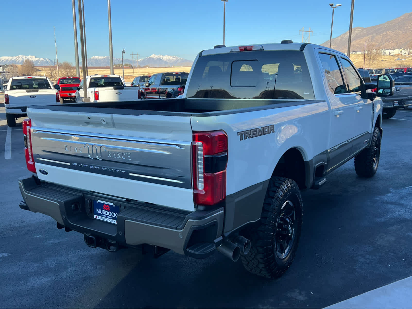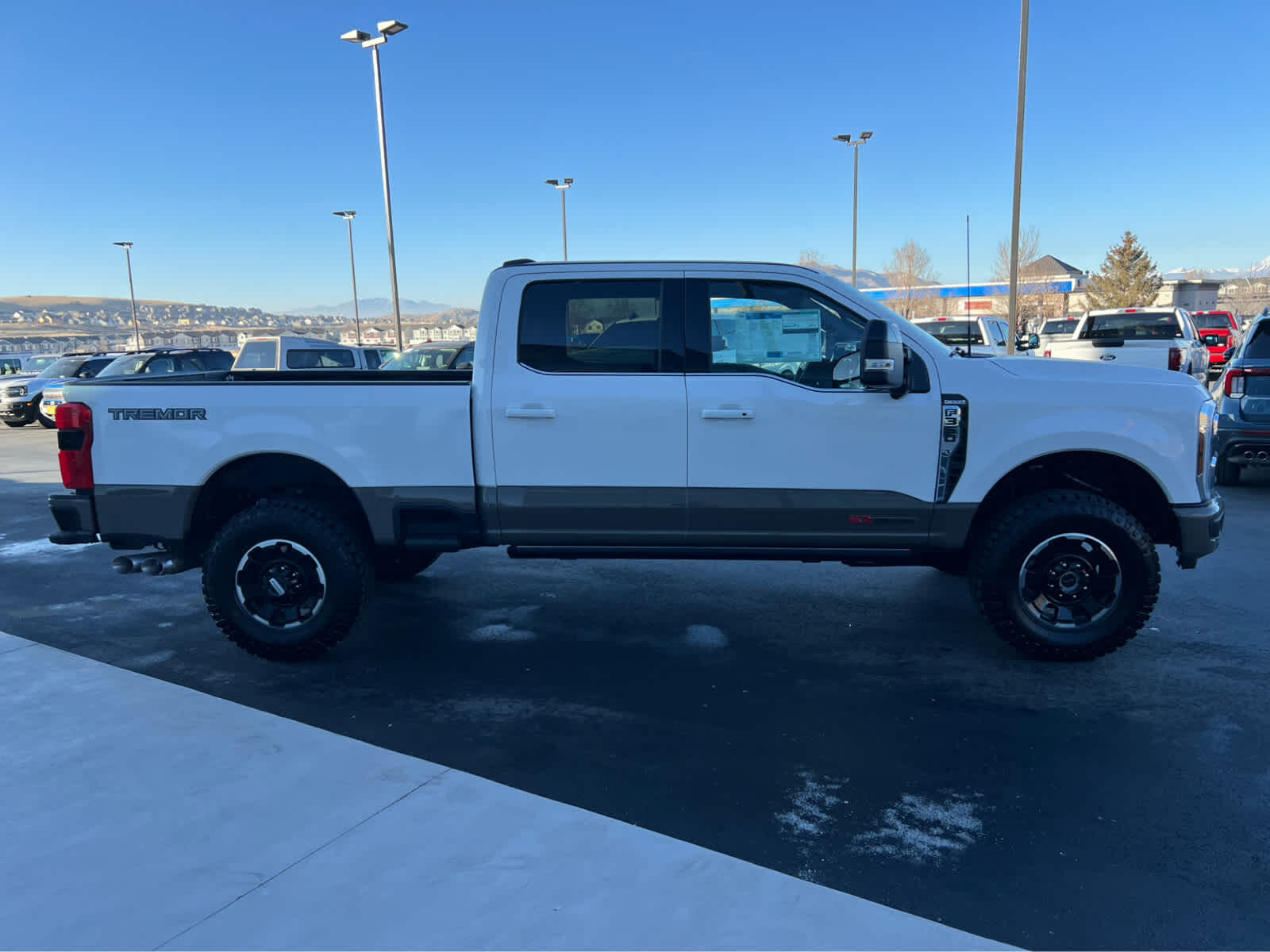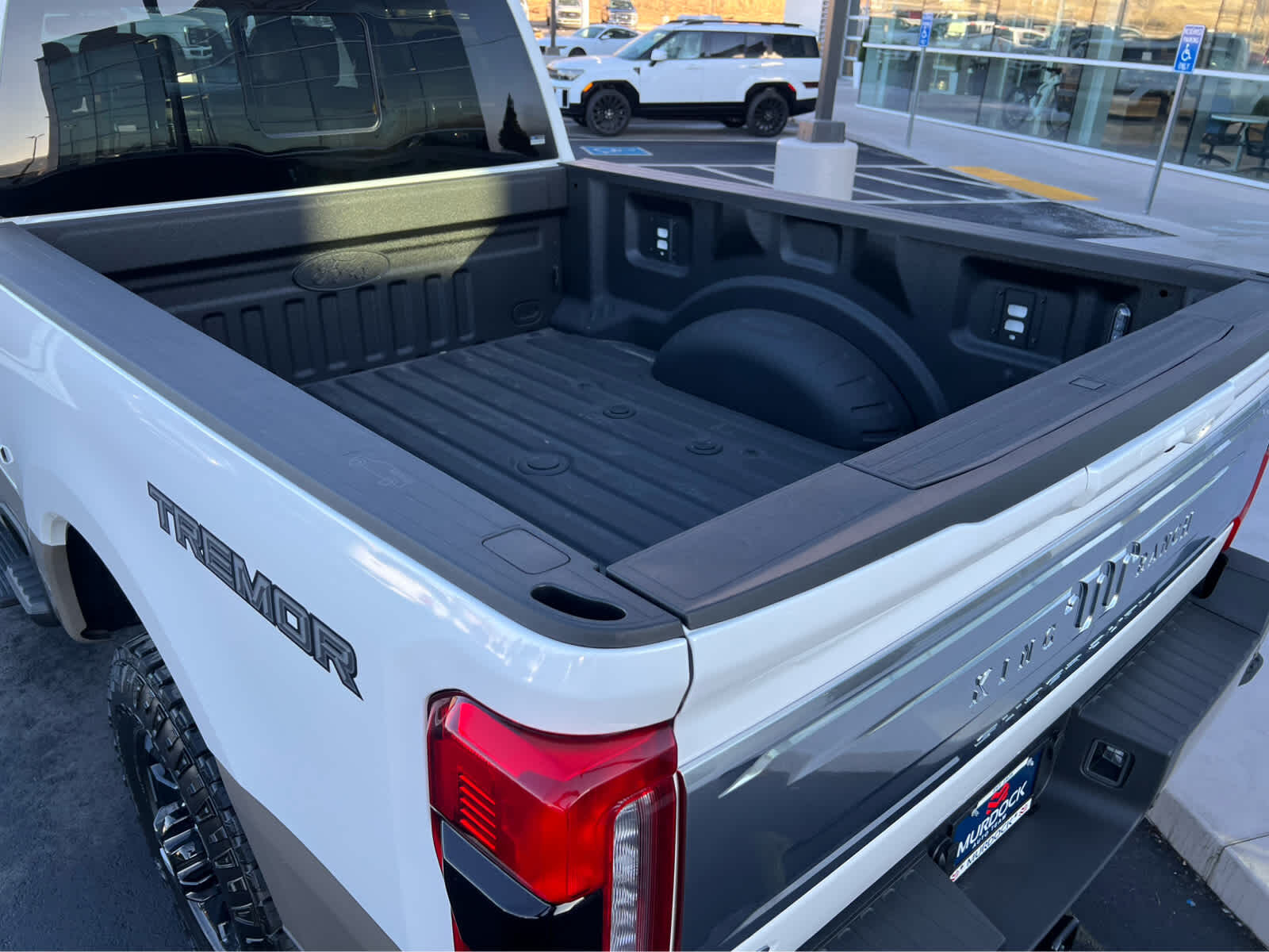ENGINE: 6.7L HIGH OUTPUT POWER STROKE V8 DIESEL Turbo diesel B20, manual push-button engine-exhaust braking and Operator Commanded Regeneration (OCR), 250 Amp Alternator, 34 Gallon Fuel Tank, GVWR: 12,000 lb Payload Package, 3.31 Axle Ratio, Dual 68 AH AGM 750 CCA Batteries, TREMOR OFF-ROAD PACKAGE unique front springs - ride height increase, rear electronic locking differential, front limited slip differential, performance front and rear shock absorbers, unique front air dams w/approach angle improvement, transfer case and axle water fording vent tubes, rock crawl mode, trail control mode and trail turn assist, Tremor Off-Road Decal, Transfer Case & Fuel Tank Skid Plates, Tires: LT285/75R18E BSW Automatic Transmission, Off-road, LT285/75R18E BSW Spare Tire, Textured Matte Finish Off-Road Running Boards, Conventional Road Spare Wheel, Wheels: 18 Ebony Black Machined & Painted Aluminum, TOUGH BED SPRAY-IN BEDLINER tailgate-guard, black box bed tie-down hooks and black bed attachment bolts, SECURICODE KEYLESS ENTRY KEYPAD (DRIVERS SIDE) Integrated into the B-pillar, GOOSENECK HITCH KIT, TRANSMISSION: TORQSHIFT 10-SPEED AUTOMATIC SelectShift and selectable drive modes: normal, eco, slippery roads, tow/haul and off-road (STD).