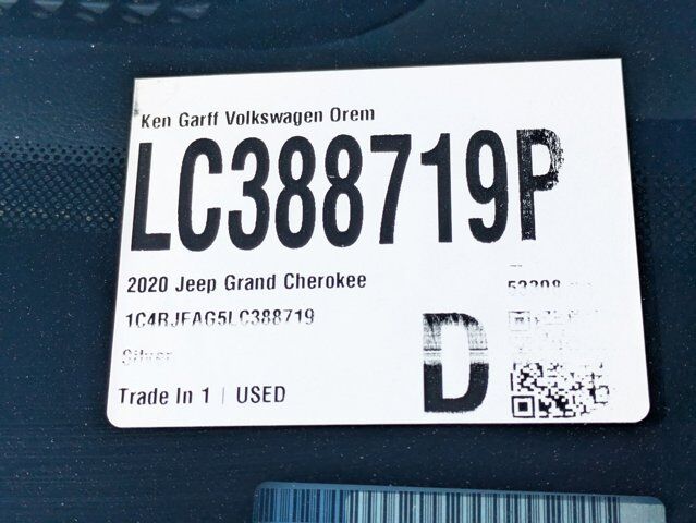 Ken Garff Volkswagen is honored to offer this charming 2020 Jeep Grand Cherokee Altitude in Billet Silver Metallic Clearcoat.CLEAN CARFAX, 1-Year SiriusXM Guardian Trial, 115V Auxiliary Power Outlet, 3.45 Rear Axle Ratio, 4-Wheel Disc Brakes, 4G LTE Wi-Fi Hot Spot, 5-Year SiriusXM Traffic Service, 5-Year SiriusXM Travel Link Service, 6 Speakers, 8.4 Touchscreen Display, ABS brakes, Air Conditioning, Alloy wheels, AM/FM radio, Anti-whiplash front head restraints, Apple CarPlay, Apple CarPlay/Android Auto, Auto High Beam Headlamp Control, Auto-Dimming Rear-View Mirror, Automatic temperature control, Bi-Xenon High-Intensity Discharge Headlamps, Body Color Shark Fin Antenna, Brake assist, Bumpers: body-color, Cloth Bucket Seats, Compass, Dark Lens Taillamps, Delay-off headlights, Disassociated Touchscreen Display, Driver door bin, Driver vanity mirror, Dual front impact airbags, Dual front side impact airbags, Electronic Stability Control, For Details Visit DriveUconnect.com, Four wheel independent suspension, Front anti-roll bar, Front Bucket Seats, Front Center Armrest w/Storage, Front dual zone A/C, Front fog lights, Front LED Fog Lamps, Front License Plate Bracket, Front reading lights, Fully automatic headlights, Gloss Black Rear Fascia Applique, Google Android Auto, GPS Antenna Input, GPS Navigation, HD Radio, Heated door mirrors, Illuminated entry, Instrument Cluster w/Off-Road Disp. Pages, Integrated Center Stack Radio, Integrated Voice Command w/Bluetooth, Jeep Black Gloss Badging, Knee airbag, Leather Shift Knob, LED Daytime Running Headlamps, Low tire pressure warning, Normal Duty Suspension, Occupant sensing airbag, Outside temperature display, Overhead airbag, Overhead console, Panic alarm, ParkView Rear Back-Up Camera, Passenger door bin, Passenger vanity mirror, Power 4-Way Driver Lumbar Adjust, Power 8-Way Driver/Manual Passenger Seat, Power door mirrors, Power steering, Power Sunroof, Power windows, Premium Lighting Group, Quick Order Package 2BZ Altitude, Radio data system, Radio: Uconnect 4C Nav w/8.4 Display, Rear anti-roll bar, Rear Fascia Black MIC Step Pad, Rear reading lights, Rear seat center armrest, Rear window defroster, Rear window wiper, Remote keyless entry, Security & Convenience Group, Security Alarm, SiriusXM Satellite Radio, SiriusXM Traffic Plus, SiriusXM Travel Link, Speed control, Speed-sensing steering, Speed-Sensitive Wipers, Split folding rear seat, Spoiler, Steering Wheel Mounted Audio Controls, Steering wheel mounted audio controls, Tachometer, Telescoping steering wheel, Tilt steering wheel, Traction control, Trip computer, Universal Garage Door Opener, USB Host Flip, Variably intermittent wipers, Wheels: 17 x 8.0 Silver Aluminum, Wheels: 20 x 8.0 Gloss Black Aluminum. Certification Program Details: 118 point vehicle inspection 3 month / 3,000 miles comprehensive limited warranty with a $0 deductible Complementary vehicle history report GarffCARE roadside assistance Powertrain extending additives: Engine deposit cleaning additive Transmission conditioning additive Fuel system cleaner Cooling-system treatment Artic Blast A/C treatment Power steering fluid conditioner Second key and remote Free home delivery available No hassle return/exchange for 5-days or 500 milesOdometer is 29698 miles below market average!Buy with Confidence at Ken Garff Volkswagen! All of our used vehicles go through a rigorous 150 point inspection by our master certified technicians. All of our prices are based off market conditions to be the best value for our customers! We are conveniently located at 115 E University Parkway in Orem, UT 84058. Just 1 Block west of University Mall. Additional Ken Garff VW benefits include: -- A Better Business Rating --Lifetime Garff Care. This includes roadside assistance and towing along the Wasatch Front for as long as you own your car. --Car Fax on every used vehicle. --No Hassle 3-Day Exchange on