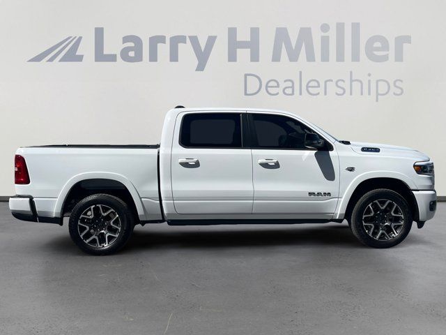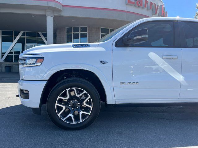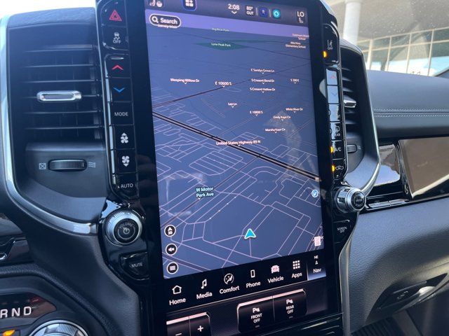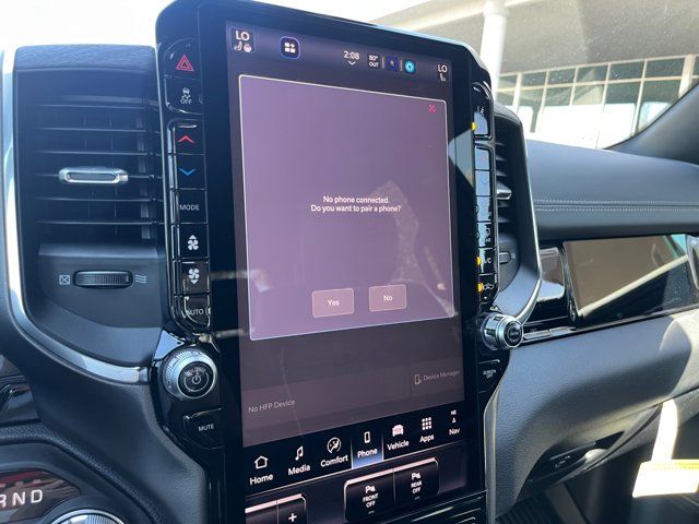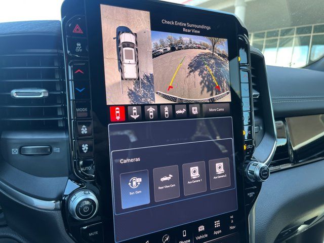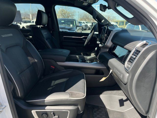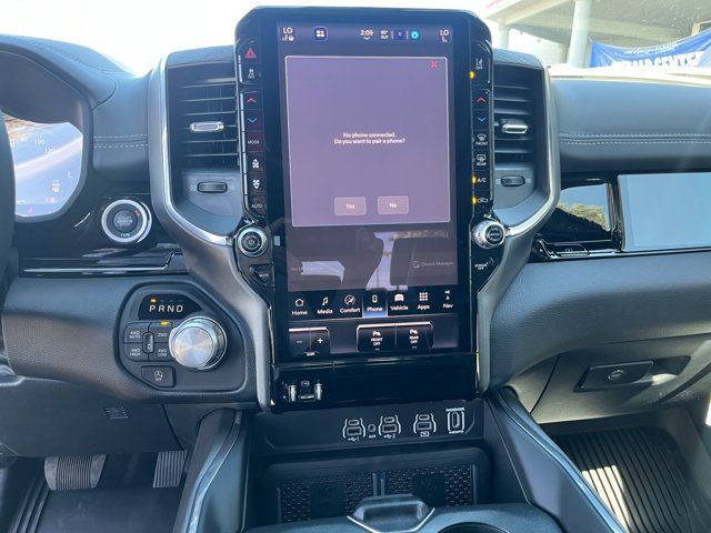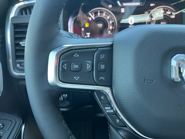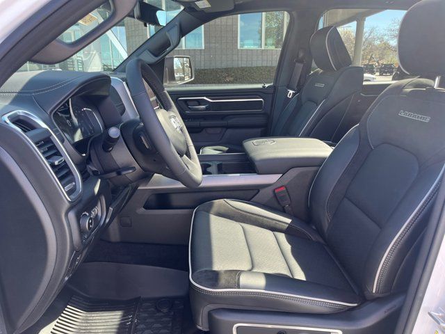 Quick Order Package 27H Laramie,MyFlexCare Service Plan,Laramie Level 2 Equipment Group,Technology Group,Advanced Safety Group II,Bed Utility Group,Laramie Preferred Package,MOPAR 4 Adjustable Cargo Tie-Down Hooks,MOPAR Front and Rear Rubber Floor Mats,Anti-Spin Differential Rear Axle,Leather Trimmed Bucket Seats,Auto-Dimming Exterior Driver Mirror,Accent Color Premium Power Mirrors,Dual-Pane Panoramic Sunroof,Off-Road Information Pages,Cluster 12 TFT Color Display,Rain Sensitive Windshield Wipers,GPS Navigation,Active Noise Control System,Power Tailgate,Heads-Up Display,Dome Dual LED Reading Lamp,LED Dome/Reading Lamp,Black Painted Exterior Mirrors Caps,Exterior Mirrors Approach Lamps,Exterior Mirrors with Supplemental Signals,Exterior Mirrors Courtesy Lamps,Exterior Mirrors with Memory,Chrome Exterior Mirrors,Convex Wide-Angle Exterior Mirror Insert,Auto Power-Folding Mirrors,LED CHMSL Lamp,Body Color Front Bumper,Body Color Rear Bumper with Step Pads,Front License Plate Bracket,RAM's Head Badge,Grille Surround 3 Body Color Tex 4 Chrome,Multi-Function Tailgate,Power Deployable Running Boards,RAM Grille Badge - Chrome,Exterior Mirrors with Heating Element,Harman/Kardon 19 Speaker Premium Sound,USB Host Flip,14.4 Touchscreen Display,Front Passenger Interactive Display,Integrated Center Stack Radio,Connectivity - US/Canada,4G LTE Wi-Fi Hot Spot,SiriusXM with 360L,Connected Travel and Traffic Services,Traffic Sign Recognition,Active Driving Assist System,Evasive Steer Assist,Radio: Uconnect 5 Navigation with 12.0 Display,Radio: Uconnect 5 Nav with 14.4 Display,Wheels: 20 x 9 Premium Paint/Polish,SiriusXM Radio Service,Surround View Camera System,Exterior 115V AC Outlet,Tow Hooks,12-Way/1-Way Trailer Connector,Trailer Brake Control,MOPAR Spray in Bedliner,Drowsy Driver Detection,Intersection Collision Assist System,Integrated Voice Command with Bluetooth,Manufacturer's Statement of Origin,4-Wheel Disc Brakes,Apple CarPlay/Android Auto,AM/FM radio: SiriusXM with 360L,Auto High-beam Headlights,Front Center Armrest w/Storage,Compass,10 Speakers,Auto-dimming Rear-View mirror,Ventilated front seats,Variably intermittent wipers,Turn signal indicator mirrors,Trip computer,Traction control,Tilt steering wheel,Telescoping steering wheel,Steering wheel mounted audio controls,Split folding rear seat,Speed control,Security system,Remote keyless entry,Rear step bumper,Rear seat center armrest,Rear reading lights,Rear anti-roll bar,Radio data system,Power windows,Power steering,Power passenger seat,Power driver seat,Power door mirrors,Pedal memory,Passenger vanity mirror,Passenger door bin,Panic alarm,Overhead console,Overhead airbag,Outside temperature display,Occupant sensing airbag,Memory seat,Low tire pressure warning,Leather steering wheel,Illuminated entry,Heated steering wheel,Heated rear seats,Heated front seats,Heated door mirrors,Garage door transmitter,Fully automatic headlights,Front wheel independent suspension,Front reading lights,Front fog lights,Front dual zone A/C,Front anti-roll bar,Dual front side impact airbags,Dual front impact airbags,Driver vanity mirror,Driver door bin,Delay-off headlights,Bumpers: chrome,Brake assist,Automatic temperature control,Auto-dimming door mirrors,Audio memory,Alloy wheels,Adjustable pedals,ABS brakes,Voltmeter,Tachometer,ParkView Rear Back-Up Camera,Navigation System,Front Bucket Seats,Electronic Stability Control,Air Conditioning,Adaptive Cruise Control,3.92 REAR AXLE RATIO,BRIGHT WHITE CLEARCOAT,MULTI-FUNCTION TAILGATE -inc: RAM's Head Badge,WHEELS: 20 X 9 PREMIUM PAINT/POLISH (STD),MYFLEXCARE SERVICE PLAN,POWER DEPLOYABLE RUNNING BOARDS,LARAMIE LEVEL 2 EQUIPMENT GROUP -inc: Rain Sensitive Windshield Wipers 14.4 Touchscreen Display Front Passenger Interactive Display Radio: Uconnect 5 Nav w/14.4 Display harman/kardon 19 Speaker Premium Sound Cluster 12 TFT Color Display Power Tailgate,BLACK LEATHER TRIMMED BUCKET SEATS,MANUFACTURER'S STATEMENT OF ORIGIN,RADIO: UCONNECT 5 NAV W/14.4 DISPLAY,TIRES: 275/55R20 ALL SEASON LRR (STD),DUAL-PANE PANORAMIC SUNROOF -inc: LED Dome/Reading Lamp Dome Dual LED Reading Lamp,ADVANCED SAFETY GROUP II -inc: Exterior Mirrors Approach Lamps Active Driving Assist System Surround View Camera System Evasive Steer Assist Drowsy Driver Detection Intersection Collision Assist System Traffic Sign Recognition 12-Way/1-Way Trailer Connector,TRANSMISSION: 8-SPEED AUTOMATIC (8HP75) (STD),MOPAR FRONT & REAR RUBBER FLOOR MATS,TECHNOLOGY GROUP -inc: Head Up Display LED CHMSL Lamp 12-Way/1-Way Trailer Connector,QUICK ORDER PACKAGE 27H LARAMIE -inc: Engine: 5.7L V8 HEMI MDS VVT eTorque Transmission: 8-Speed Automatic (8HP75),LARAMIE PREFERRED PACKAGE -inc: Accent Color Premium Power Mirrors Power Deployable Running Boards Grille Surround 3 Body Color Tex 4 Chrome Trailer Brake Control Tow Hooks Body Color Front Bumper Dual-Pane Panoramic Sunroof LED Dome/Reading Lamp Dome Dual LED Reading Lamp Body Color Rear Bumper w/Step Pads Black Painted Exterior Mirrors Caps,TRAILER BRAKE CONTROL,ENGINE: 5.7L V8 HEMI MDS VVT ETORQUE -inc: 48V Belt Starter Generator Heavy Duty Engine Cooling Passive Tuned Mass Damper Delete Alternator Passive Cold End Exhaust 18 Aluminum Spare Wheel,BED UTILITY GROUP -inc: MOPAR Spray In Bedliner MOPAR 4 Adjustable Cargo Tie-Down Hooks Exterior 115V AC Outlet,FRONT LICENSE PLATE BRACKET,ANTI-SPIN DIFFERENTIAL REAR AXLE,Four Wheel Drive,Tow Hitch,Power Steering,ABS,4-Wheel Disc Brakes,Brake Assist,Aluminum Wheels,Tires - Front Performance,Tires - Rear Performance,Conventional Spare Tire,Power Mirror(s),Integrated Turn Signal Mirrors,Power Folding Mirrors,Heated Mirrors,Privacy Glass,Intermittent Wipers,Variable Speed Intermittent Wipers,Power Door Locks,Daytime Running Lights,Automatic Headlights,LED Headlights,Fog Lamps,Automatic Highbeams,AM/FM Stereo,Navigation System,Satellite Radio,Bluetooth Connection,HD Radio,Requires Subscription,Premium Sound System,MP3 Capability,Steering Wheel Audio Controls,Auxiliary Audio 
