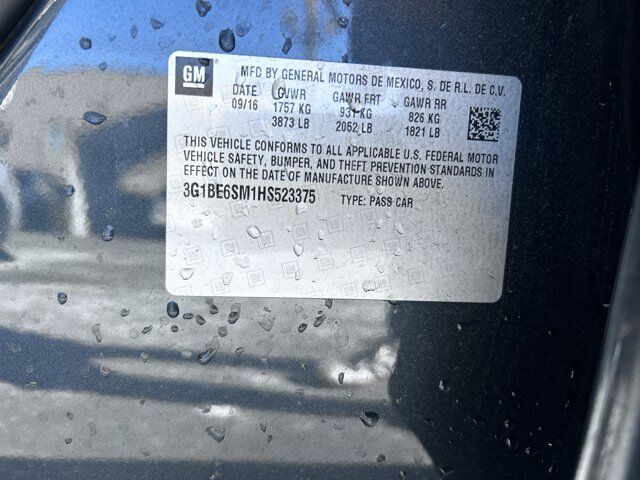 REMOTE VEHICLE STARTER SYSTEM,VISORS DRIVER AND FRONT PASSENGER ILLUMINATED VANITY MIRRORS,LIGHTING INTERIOR AMBIENT,SUNROOF POWER SLIDING,AUDIO SYSTEM CHEVROLET MYLINK RADIO WITH 8 DIAGONAL COLOR TOUCH-SCREEN AM/FM stereo with seek-and-scan and digital clock includes Bluetooth streaming audio for music and select phones; voice-activated technology for radio and phone; featuring Apple CarPlay capability for compatible phone (late availability Android Auto) and Shop with the ability to browse select and install apps to your vehicle. Apps include Pandora iHeartRadio The Weather Channel and more.,SEATS HEATED DRIVER AND FRONT PASSENGER,GRAPHITE METALLIC,TECHNOLOGY PACKAGE includes (UQA) Bose premium 9-speaker system (UDD) color Driver Information Center and (UMN) miles/kilometers speedometer instrumentation (Also includes (IO5) Chevrolet MyLink Radio.,SUN AND SOUND PACKAGE includes (ZLA) Technology Package [includes (IO5) Chevrolet MyLink Radio (UQA) Bose premium 9-speaker system (UDD) color Driver Information Center and (UMN) miles/kilometers speedometer instrumentation] and (ZLN) Sunroof Package [includes (CF5) power sunroof (D6I) driver and front passenger illuminated vanity mirrors visors and (C93) interior ambient lighting],LT PREFERRED EQUIPMENT GROUP includes Standard Equipment,KEYLESS OPEN,KEYLESS START,SUNROOF PACKAGE (CF5) power sunroof (D6I) driver and front passenger illuminated vanity mirrors visors and (C93) interior ambient lighting,LICENSE PLATE BRACKET FRONT,TIRES 205/55R16 ALL-SEASON BLACKWALL (STD),DRIVER INFORMATION CENTER 4.2-INCH DIAGONAL COLOR DISPLAY,INSTRUMENTATION ANALOG MILES/KILOMETERS SPEEDOMETER,ENGINE 1.4L TURBO DOHC 4-CYLINDER DI with Continuous Variable Valve Timing (CVVT) (153 hp [114.08 kW] @ 5600 rpm 177 lb-ft of torque [239 N-m] @ 2000-4000 rpm) (STD),TRANSMISSION 6-SPEED AUTOMATIC (STD),JET BLACK CLOTH SEAT TRIM,SEATS FRONT BUCKET WITH RECLINING SEATBACKS AND ADJUSTABLE HEAD RESTRAINTS (STD),AUDIO SYSTEM FEATURE BOSE PREMIUM 9-SPEAKER SYSTEM,SEAT ADJUSTER DRIVER 8-WAY POWER,CONVENIENCE PACKAGE includes (ATH) Keyless Open (BTM) Keyless Start (KA1) heated driver and front passenger seats and (AH5) driver 8-way power seat adjuster and (BTV) remote vehicle starter system [with automatic transmission only]; deletes (KTF) primary foldable key,Turbocharged,Front Wheel Drive,Power Steering,ABS,4-Wheel Disc Brakes,Aluminum Wheels,Tires - Front Performance,Tires - Rear Performance,Temporary Spare Tire,Rear Spoiler,Automatic Headlights,Heated Mirrors,Power Mirror(s),Intermittent Wipers,Variable Speed Intermittent Wipers,Intermittent Wipers,Daytime Running Lights,AM/FM Stereo,MP3 Capability,Bluetooth Connection,Auxiliary Audio Input,Smart Device Integration,Satellite Radio,Requires Subscription,Bluetooth Connection,Telematics,WiFi Hotspot,Requires Subscription,MP3 Capability,Auxiliary Audio Input,Bucket Seats,Cloth Seats,Pass-Through Rear Seat,Rear Bench Seat,Floor Mats,Adjustable Steering Wheel,Steering Wheel Audio Controls,Tire Pressure Monitor,Power Windows,Power Door Locks,Keyless Entry,Power Door Locks,Cruise Control,Security System,Security System,Immobilizer,A/C,Rear Defrost,Driver Vanity Mirror,Passenger Vanity Mirror,Front Reading Lamps,Cargo Shade,Traction Control,Stability Control,Driver Air Bag,Passenger Air Bag,Front Side Air Bag,Rear Side Air Bag,Front Head Air Bag,Rear Head Air Bag,Passenger Air Bag Sensor,Knee Air Bag,Telematics,Navigation from Telematics,Requires Subscription,Telematics,Requires Subscription,Back-Up Camera,Driver Restriction Features,Tire Pressure Monitor