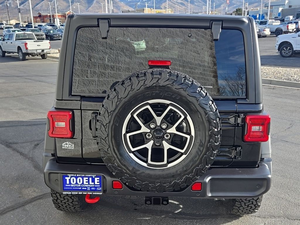 2026 Jeep Wrangler Rubicon Black Clearcoat 4D Sport Utility 2.0L I4 DOHC 4WD 12.3'' Touchscreen Display, 4-Wheel Disc Brakes, 4.10 Rear Axle Ratio, 4G LTE Wi-Fi Hot Spot, 8 Speakers, ABS brakes, Air Conditioning, Alloy wheels, Alpine Premium Audio System, AM/FM radio: SiriusXM with 360L, Apple CarPlay, Apple CarPlay/Android Auto, Auto High Beam Headlamp Control, Auto-Dimming Rear-View Mirror, Automatic temperature control, Aux Battery, Auxiliary Switches, Black 3-Piece Hard Top, Blind Spot and Cross Path Detection, Brake assist, Class II Receiver Hitch, Cloth Low-Back Bucket Seats, Compass, Connected Travel and Traffic Services, Connectivity - US/Canada, Convenience Group, Delay-off headlights, Driver door bin, Driver vanity mirror, Dual front impact airbags, Dual front side impact airbags, Electronic Stability Control, Emergency communication system: Jeep Connect, For More Info, Call 800-643-2112, Freedom Panel Storage Bag, Front anti-roll bar, Front Bucket Seats, Front Center Armrest w/Storage, Front dual zone A/C, Front fog lights, Front License Plate Bracket, Front reading lights, Fully automatic headlights, Google Android Auto, GPS Navigation, HD Radio, Heated door mirrors, Heated Front Seats, Heated Steering Wheel, Illuminated entry, Integrated Center Stack Radio, Integrated Off-Road Camera, Integrated roll-over protection, Integrated Voice Command with Bluetooth, Jeep Trail Rated Kit, Low tire pressure warning, MOPAR All-Weather Floor Mats, No Soft Top, Non-Lock Fuel Cap Without Discriminator, Occupant sensing airbag, Outside temperature display, Overhead airbag, Panic alarm, ParkSense Rear Park Assist System, ParkView Rear Back-Up Camera, Passenger door bin, Passenger vanity mirror, Performance Hood, Performance Suspension, Power door mirrors, Power steering, Power windows, Quick Order Package 22R Rubicon, Radio data system, Radio: Uconnect 5 Navigation with 12.3'' Display, Radio: Uconnect 5 with 12.3'' Display, Rear anti-roll bar, Rear reading lights, Rear Window Defroster, Rear Window Wiper/Washer, Remote keyless entry, Safety Group, Security system, SiriusXM Radio Service, SiriusXM with 360L, Speed control, Split folding rear seat, Steel Performance Hood Package, Steering wheel mounted audio controls, Stop-Start Dual Battery System, Tachometer, Technology Group, Telescoping steering wheel, Tilt steering wheel, Traction control, Trip computer, Universal Garage Door Opener, Variably intermittent wipers, Voltmeter, Wheels: 17'' x 7.5'' Machined/Painted Black.