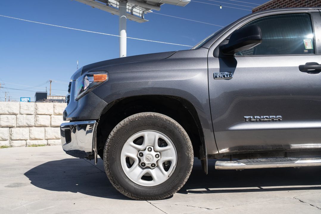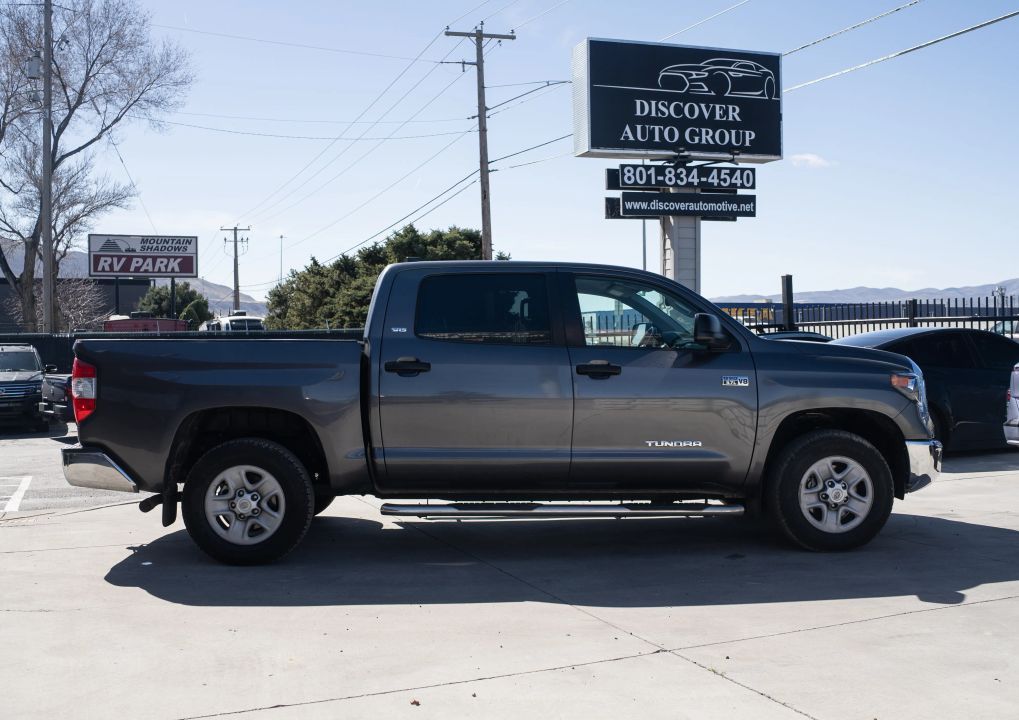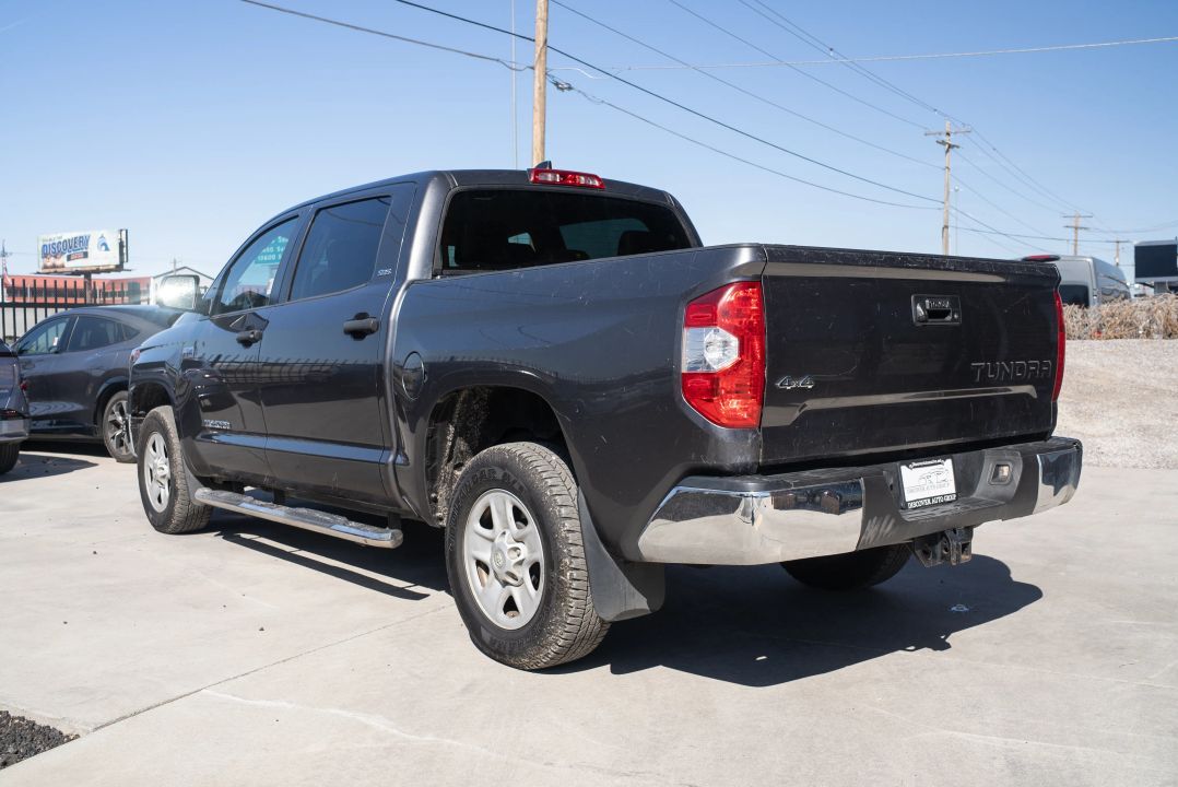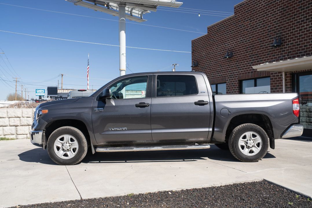 Branded Title | Gray Exterior | SR5 Premium Trim | CrewMax Pickup 4D | 5.5-ft Bed | 4WD | Automatic TransmissionIf you are searching for a pickup that is ready for anything, the 2020 Toyota Tundra CrewMax SR5 could be just what you need. Its rugged gray exterior and comfortable black interior make every drive a pleasure, whether you are heading out on a weekend getaway or just running errands. With four doors and plenty of space, this truck offers versatility and reliability in one impressive package.