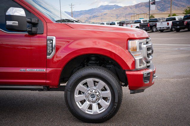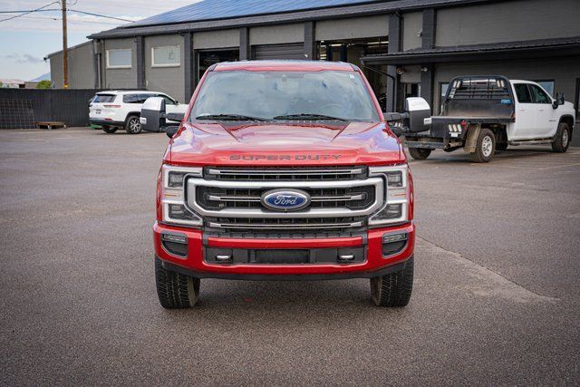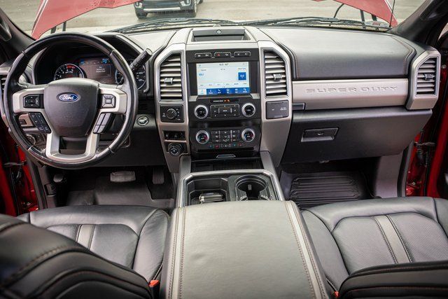 4WD 4D Crew Cab 2020 Ford F-350SD Platinum 2020 10-Speed Automatic 4WD, ABS brakes, Alloy wheels, Compass, Electronic Stability Control, Front dual zone A/C, Heated door mirrors, Illuminated entry, Low tire pressure warning, Remote keyless entry, Traction control. Platinum Ford F-350SD Power Stroke 6.7L V8 DI 32V OHV Turbodiesel Rapid Red Metallic Tinted Clearcoat