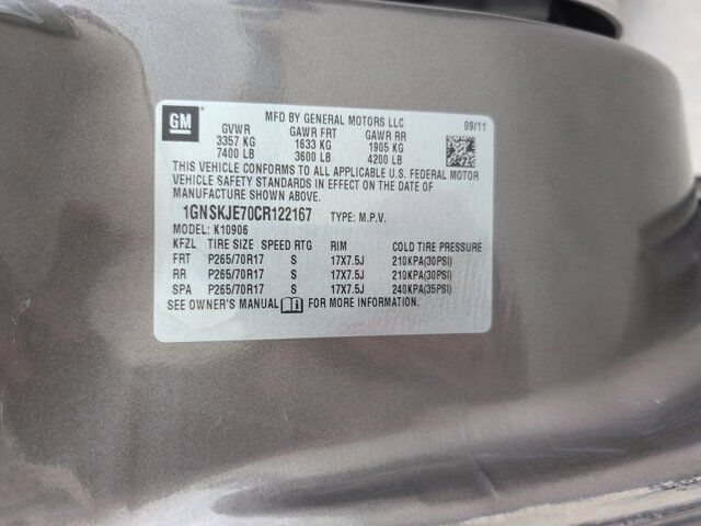Premium Smooth Ride Suspension Package,9 Speakers,AM/FM radio: SiriusXM,AM/FM Stereo w/CD Player & MP3 Playback,Bose Premium Audio System Feature,CD player,Radio data system,Rear audio controls,SIRIUSXM Satellite Radio,USB Port,Air Conditioning,Automatic temperature control,Front dual zone A/C,Rear air conditioning,Rear window defroster,Tri-Zone Automatic Climate Control,6-Way Power Front Passenger Seat Adjuster,Power driver seat,Power steering,Power windows,Power-Adjustable Accelerator & Brake Pedals,Remote keyless entry,Remote Vehicle Starter System,Steering wheel mounted audio controls,Traction control,4-Wheel Disc Brakes,ABS brakes,Dual front impact airbags,Dual front side impact airbags,Emergency communication system: OnStar Directions & Connections,Front anti-roll bar,Front wheel independent suspension,Low tire pressure warning,Occupant sensing airbag,Overhead airbag,Rear anti-roll bar,Electronic Stability Control,Rear Park Assist,Delay-off headlights,Front fog lights,Front Halogen Fog Lamps,Fully automatic headlights,Panic alarm,Security system,Speed control,Heavy-Duty Locking Rear Differential,Bodyside moldings,Bumpers: body-color,Color-Keyed Bodyside Moldings,Heated door mirrors,Power door mirrors,Roof rack,Spoiler,Adjustable pedals,Compass,Driver door bin,Driver vanity mirror,Front reading lights,Illuminated entry,Leather steering wheel,Outside temperature display,Overhead console,Passenger vanity mirror,Rear reading lights,Rear seat center armrest,Tachometer,Tilt steering wheel,Trip computer,Voltmeter,3rd row seats: split-bench,6-Way Power Driver Seat Adjuster,Custom Leather-Appointed Seat Trim,Driver & Front Passenger Heated Seats,Driver Manual Lumbar Control,Front Bucket Seats,Front Center Armrest,Heated front seats,Power passenger seat,Split folding rear seat,Black Roof-Mounted Luggage Rack Center Rails,Passenger door bin,17 inch x 7.5 inch 5-Spoke Aluminum Wheels,Alloy wheels,Rear window wiper,Variably intermittent wipers,3.08 Rear Axle Ratio,MOCHA STEEL METALLIC,SEATS FRONT BUCKET WITH LEATHER-APPOINTED SEATING (AG1) 6-way power driver and (AG2) front passenger seat adjusters adjustable head restraints (AM1) driver manual lumbar control floor console and rear storage pockets (STD),ENGINE VORTEC 5.3L V8 SFI FLEXFUEL with Active Fuel Management capable of running on unleaded or up to 85% ethanol (with gas - 320 hp [239 kW] @ 5400 rpm 335 lb-ft of torque [454 N-m] @ 4000 rpm with E85 ethanol - 326 hp [243 kW] @ 5300 rpm 348 lb-ft of torque [472 N-m] @ 4400 rpm) aluminum block (STD),REAR AXLE 3.08 RATIO,WHEELS 4 - 17 X 7.5 (43.2 CM X 19.1 CM) ALUMINUM 5-SPOKE WITH SMOOTH SURFACE AND RECTANGULAR POCKETS (STD),TRANSMISSION 6-SPEED AUTOMATIC HEAVY-DUTY ELECTRONICALLY CONTROLLED WITH OVERDRIVE AND TOW/HAUL MODE (STD),AUDIO SYSTEM AM/FM STEREO WITH CD PLAYER AND MP3 PLAYBACK seek-and-scan digital clock auto-tone control Radio Data System (RDS) speed compensated volume TheftLock auxiliary input jack and USB port (STD),LIGHT TITANIUM/DARK TITANIUM CUSTOM LEATHER-APPOINTED SEAT TRIM,LICENSE PLATE BRACKET FRONT,SEATS SECOND ROW BUCKET WITH LEATHER-APPOINTED SEATING RECLINING,SUSPENSION PACKAGE PREMIUM SMOOTH RIDE (STD),LT PREFERRED EQUIPMENT GROUP Includes Standard Equipment,TIRES P265/70R17 ALL-SEASON BLACKWALL (STD),Locking/Limited Slip Differential,Four Wheel Drive,Tow Hitch,Tow Hooks,Power Steering,ABS,4-Wheel Disc Brakes,Aluminum Wheels,Tires - Front All-Season,Tires - Rear All-Season,Conventional Spare Tire,Luggage Rack,Luggage Rack,Running Boards/Side Steps,Automatic Headlights,Fog Lamps,Heated Mirrors,Power Mirror(s),Privacy Glass,Intermittent Wipers,AM/FM Stereo,CD Player,MP3 Capability,Auxiliary Audio Input,MP3 Capability,Auxiliary Audio Input,Premium Sound System,Rear Seat Audio Controls,Power Outlet,Satellite Radio,Requires Subscription,Bluetooth Connection,Power Driver Seat,Power Passenger Seat,Leather Seats,Bucket Seats,Driver Adjustable Lumbar,Pass-Through Rear Seat,Rear Bench Seat,Leather Seats,Power Driver Seat,Power Passenger Seat,Heated Front Seat(s),3rd Row Seat,Pass-Through Rear Seat,Rear Seat Audio Controls,Floor Mats,Adjustable Steering Wheel,Leather Steering Wheel,Cruise Control,Steering Wheel Audio Controls,Tire Pressure Monitor,Power Windows,Power Door Locks,Keyless Entry,Power Door Locks,Remote Engine Start,Cruise Control,Adjustable Pedals,Immobilizer,Climate Control,Multi-Zone A/C,A/C,Rear A/C,A/C,Rear A/C,Rear Defrost,Power Outlet,Driver Vanity Mirror,Passenger Vanity Mirror,Driver Illuminated Vanity Mirror,Passenger Illuminated Visor Mirror,Front Reading Lamps,Rear Reading Lamps,Traction Control,Stability Control,Daytime Running Lights,Driver Air Bag,Passenger Air Bag,Passenger Air Bag Sensor,Front Head Air Bag,Rear Head Air Bag,Front Side Air Bag,Telematics,Navigation from Telematics,Requires Subscription,Telematics,Requires Subscription,Telematics,Requires Subscription,Telematics,Navigation from Telematics,Requires Subscription,Rear Parking Aid