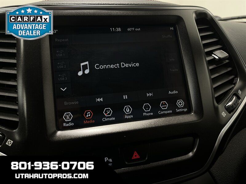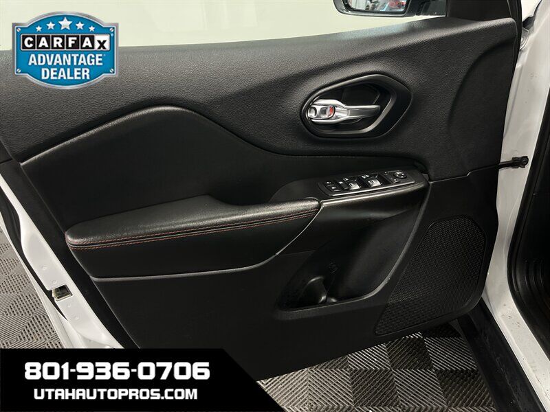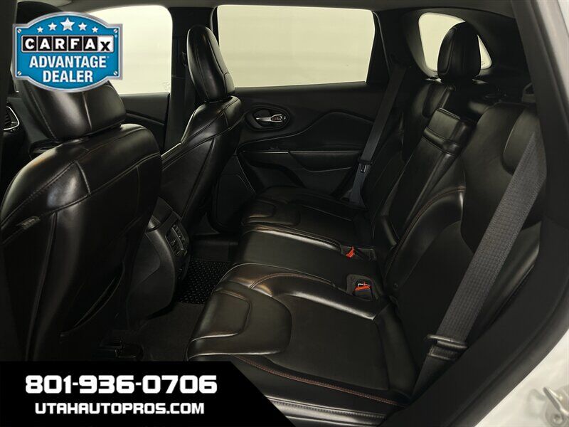 TUFF CHEROKEE TRAILHAWK!!! This is a great looking Jeep Cherokee Trailhawk in a brilliant white with tinted windows and a black leather interior. It is sitting on a small lift, upgraded all terrain tires, good looking wheels, rear ladder, roof rack, push button start, backup camera, bluetooth phone and audio, various drive modes such as sand, snow and rock, remote entry, power windows and door locks, xenon headlights, clean title, runs and drives great. We tend to sell our vehicles quickly so please call and verify availability before heading in. You can check out the rest of our great inventory online at www.utahautopros.com