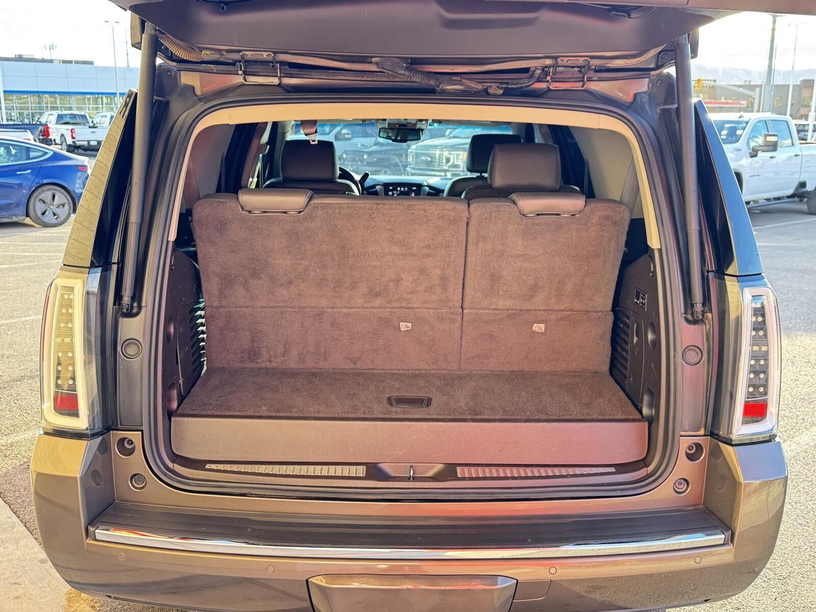 Driver Alert PackageSafety Alert SeatOpen Road Package ($2,260 value)Power Tilt-Sliding Sunroof with Express-Open/closeRear Seat Blu-Ray/DVD Entertainment SystemPremium Package ($3,165 value)Perforated Leather-Appointed Seat TrimPower Retractable Assist Steps with Perimeter LightingHead-Up DisplayEnhanced Safety Package ($395 value)Self-Powered HornVehicle Inclination SensorInterior Movement SensorPreferred Equipment Group 5SAPerforated Leather-Appointed Seat TrimMemory PackageHeated and Cooled Full-Feature Reclining Bucket SeatsPassive Entry SystemPower Second Row Bucket SeatsPush Button Keyless StartBlack Assist Steps with Chrome StripInside Rearview Auto-Dimming Mirror3.23 Axle RatioAM/FM/SiriusXM/HD Radio with NavigationPower-Adjustable Pedals For Accelerator and BrakeIntegrated Trailer Brake ControllerHigh-Capacity Air CleanerWireless Charging8-Speed Automatic TransmissionPower Tilt and Telescopic Steering Column2-Speed Electronic Autotrac Active Transfer CaseOnStar Basic Plan For 5 Years5 Auxiliary 12-Volt Power OutletsPower Rear LiftgateHands Free Power LiftgateRear Cross-Traffic AlertUniversal Home RemoteSide Blind Zone Alert with Lane Change AlertBose Centerpoint Surround Sound 10 Speaker SystemColor-Keyed Heated Leather-Wrapped Steering WheelOnStar with 4G LTEDriver Alert PackageAdaptive Cruise Control with Front Automatic BrakingVAC Power Disc Brakes with Electronic Stability Control