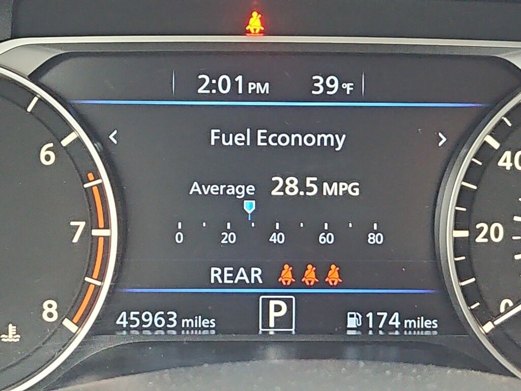 Floor Mats/trunk Mat/hideaway Net,NissanConnect featuring Apple CarPlay smart device mirroring,Intelligent Forward Collision Warning w/Automatic Emergency Braking (AEB),Automatic Emergency Braking with Pedestrian Detection (P-AEB),RearView Monitor rear mounted camera,Rear Cross Traffic Alert (RCTA) w/Rear Automatic Braking (RAB) collision mitigation,Brake assist system,Selective service internet access,Cruise control with steering wheel mounted controls,Keyfob remote start,Primary monitor touchscreen,Lane Departure Warning (LDW),Driver seat power reclining, cushion tilt, fore/aft control and height adjustable control,2.5L I-4 gasoline direct injection, DOHC, CVTCS variable valve control, regular unleaded, engine with 188HP,2.5L I-4 DOHC,Intelligent Driver Alertness (I-DA),Intelligent Key with hands-free access and push button start,Keyfob window control,Front windshield solar coating,Push-button,Bluetooth wireless audio streaming,Blind Spot Warning (BSW),High Beam Assist (HBA) auto high-beam headlights,Immobilizer,Bluetooth handsfree wireless device connectivity,NissanConnect external memory control,Electronic stability control system,Hill Start Assist (HSA),Rear Door Alert rear seat check warning,Rear parking sensors,LED daytime running lights,Active grille shutters,Manual rear child safety door locks,Gauge cluster display size: 7.00,Manual tilting steering wheel,Manual telescopic steering wheel,Metallic paint,17 x 7.5-inch front and rear machined w/painted accents aluminum wheels,P215/55VR17 AS BSW front and rear tires,Cloth front seat upholstery,10 airbags,Driver front impact airbag,Seat mounted side impact driver airbag,Curtain first and second-row overhead airbags,Passenger front impact airbag,Seat mounted side impact front passenger airbag,Airbag occupancy sensor,Driver and passenger side knee airbag,Rear side impact airbags,Auto-locking doors,Valet key