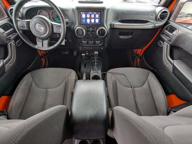 ANTI-SPIN DIFFERENTIAL REAR AXLE,WHEELS: 17 X 7.5 ALUMINUM,CONNECTIVITY GROUP -inc: Vehicle Information Center Uconnect Voice Command w/Bluetooth Tire Pressure Monitoring Display,3.73 REAR AXLE RATIO,MAX TOW PACKAGE -inc: 3.73 Rear Axle Ratio Trailer Tow Group Class II Receiver Hitch Trailer Tow w/4-Pin Connector Wiring,BLACK 3-PIECE HARD TOP -inc: Freedom Panel Storage Bag Rear Window Defroster Rear Window Wiper/Washer Tinted Rear Quarter & Liftgate Windows Delete Sunrider Soft Top,RADIO: UCONNECT 430 CD/DVD/MP3/HDD -inc: Remote USB Port,TRANSMISSION: 5-SPEED AUTOMATIC (W5A580) -inc: Tip Start Hill Descent Control,SIRIUS SATELLITE RADIO,QUICK ORDER PACKAGE 24S -inc: Engine: 3.6L V6 24V VVT Transmission: 5-Speed Automatic (W5A580) Auto Dim Mirror w/Reading Lamp Tires: P255/75R17 OWL On/Off Road Wheels: 17 x 7.5 Aluminum Leather Wrapped Steering Wheel Chrome/Leather Wrapped Shift Knob Power Convenience Group Front 1-Touch Down Power Windows Security Alarm Power Heated Mirrors Power Locks Remote Keyless Entry Deep Tint Sunscreen Windows,SUNSET ORANGE PEARLCOAT,ENGINE: 3.6L V6 24V VVT (STD),TIRES: P255/75R17 OWL ON/OFF ROAD,BLACK CLOTH BUCKET SEATS -inc: adjustable head restraints,Four Wheel Drive,Power Steering,ABS,4-Wheel Disc Brakes,Brake Assist,Brake Actuated Limited Slip Differential,Tires - Front All-Terrain,Tires - Rear All-Terrain,Conventional Spare Tire,Convertible Soft Top,Tow Hooks,Tow Hooks,Intermittent Wipers,Variable Speed Intermittent Wipers,Rollover Protection Bars,Fog Lamps,AM/FM Stereo,CD Player,MP3 Capability,Auxiliary Audio Input,Steering Wheel Audio Controls,Pass-Through Rear Seat,Rear Bench Seat,Adjustable Steering Wheel,Trip Computer,Cruise Control,A/C,Cloth Seats,Bucket Seats,Driver Vanity Mirror,Passenger Vanity Mirror,Floor Mats,Trip Computer,Immobilizer,Traction Control,Stability Control,Traction Control,Tire Pressure Monitor,Driver Air Bag,Passenger Air Bag,Passenger Air Bag Sensor,Child Safety Locks
