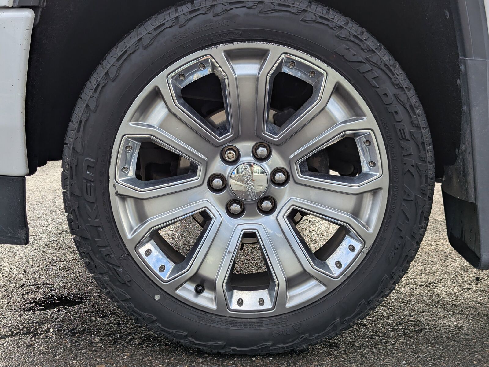 LPO WHEEL LOCKS SET OF 4,JET BLACK PERFORATED LEATHER-APPOINTED FRONT SEAT TRIM,ACTIVE NOISE CANCELLATION,DENALI ULTIMATE PACKAGE includes (L86) 6.2L EcoTec3 V8 engine (Q7M) 22 aluminum wheels with premium paint and chrome inserts (SFE) wheel locks LPO (CF5) power sunroof (JL1) trailer brake controller (BRS) Tri-Mode Power Steps (VQY) chrome recovery hooks LPO.,TRANSMISSION 8-SPEED AUTOMATIC ELECTRONICALLY CONTROLLED with overdrive and tow/haul mode. Includes Cruise Grade Braking and Powertrain Grade Braking (STD),AUDIO SYSTEM 8 DIAGONAL COLOR TOUCH SCREEN NAVIGATION WITH GMC INFOTAINMENT SYSTEM AM/FM/SIRIUSXM HD RADIO with USB ports auxiliary jack Bluetooth streaming audio for music and most phones Pandora Internet radio and voice-activated technology for radio and phone (STD),SUNROOF POWER,WHITE FROST TRICOAT,TRI-MODE POWER STEPS REARWARD ARTICULATING (providing bed access). Foot activated running side board.,TRAILER BRAKE CONTROLLER INTEGRATED,LICENSE PLATE KIT FRONT,CUSTOMER DIALOGUE NETWORK,REAR AXLE 3.23 RATIO,LPO CHROME RECOVERY HOOKS,TIRES P285/45R22 SL 110H ALL-TERRAIN BLACKWALL,DENALI PREFERRED EQUIPMENT GROUP,LPO FRONT AND REAR MOLDED SPLASH GUARDS BLACK,SEATS FRONT FULL-FEATURE LEATHER-APPOINTED BUCKET with (KA1) heated seat cushions and seat backs. Includes 12-way power driver and front passenger seat adjusters including 4-way power lumbar control 2-position driver memory adjustable head restraints (D07) floor console and storage pockets and (K4C) wireless charging (STD),ENGINE 6.2L ECOTEC3 V8 WITH ACTIVE FUEL MANAGEMENT DIRECT INJECTION and Variable Valve Timing includes aluminum block construction (420 hp [313 kW] @ 5600 rpm 460 lb-ft of torque [624 Nm] @ 4100 rpm),WHEELS 22 (55.9 CM) ALUMINUM with premium paint and chrome inserts,Brake Assist,Lane Departure Warning,Lane Keeping Assist,Front Collision Mitigation,Front Collision Warning,Automatic Highbeams,Tow Hitch,Locking/Limited Slip Differential,Active Suspension,Four Wheel Drive,Tow Hooks,Power Steering,ABS,4-Wheel Disc Brakes,Aluminum Wheels,Tires - Front Performance,Tires - Rear Performance,Conventional Spare Tire,Conventional Spare Tire,Running Boards/Side Steps,LED Headlights,Automatic Highbeams,Fog Lamps,Heated Mirrors,Power Mirror(s),Integrated Turn Signal Mirrors,Power Folding Mirrors,Rear Defrost,Sliding Rear Window,Privacy Glass,Bed Liner,AM/FM Stereo,Navigation System,Satellite Radio,MP3 Capability,Bluetooth Connection,Auxiliary Audio Input,HD Radio,Requires Subscription,HD Radio,Satellite Radio,Requires Subscription,Premium Sound System,CD Player,MP3 Capability,Bluetooth Connection,Steering Wheel Audio Controls,Power Driver Seat,Power Passenger Seat,Leather Seats,Bucket Seats,Heated Front Seat(s),Driver Adjustable Lumbar,Passenger Adjustable Lumbar,Seat Memory,Telematics,WiFi Hotspot,Requires Subscription,Leather Seats,Bucket Seats,Heated Front Seat(s),Cooled Front Seat(s),Pass-Through Rear Seat,Rear Bench Seat,Floor Mats,Adjustable Steering Wheel,Heated Steering Wheel,Power Windows,Power Door Locks,Adjustable Pedals,Keyless Entry,Power Door Locks,Remote Engine Start,Universal Garage Door Opener,Cruise Control,Security System,Climate Control,Multi-Zone A/C,A/C,Rear Defrost,Auto-Dimming Rearview Mirror,Driver Vanity Mirror,Passenger Vanity Mirror,Driver Illuminated Vanity Mirror,Passenger Illuminated Visor Mirror,Brake Assist,Front Collision Mitigation,Front Collision Warning,Traction Control,Stability Control,Daytime Running Lights,Driver Air Bag,Passenger Air Bag,Front Side Air Bag,Front Head Air Bag,Rear Head Air Bag,Passenger Air Bag Sensor,Passenger Air Bag Sensor,Telematics,Requires Subscription,Back-Up Camera,Rear Parking Aid,Front Collision Warning,Lane Departure Warning,Lane Keeping Assist,Driver Restriction Features,Tire Pressure Monitor