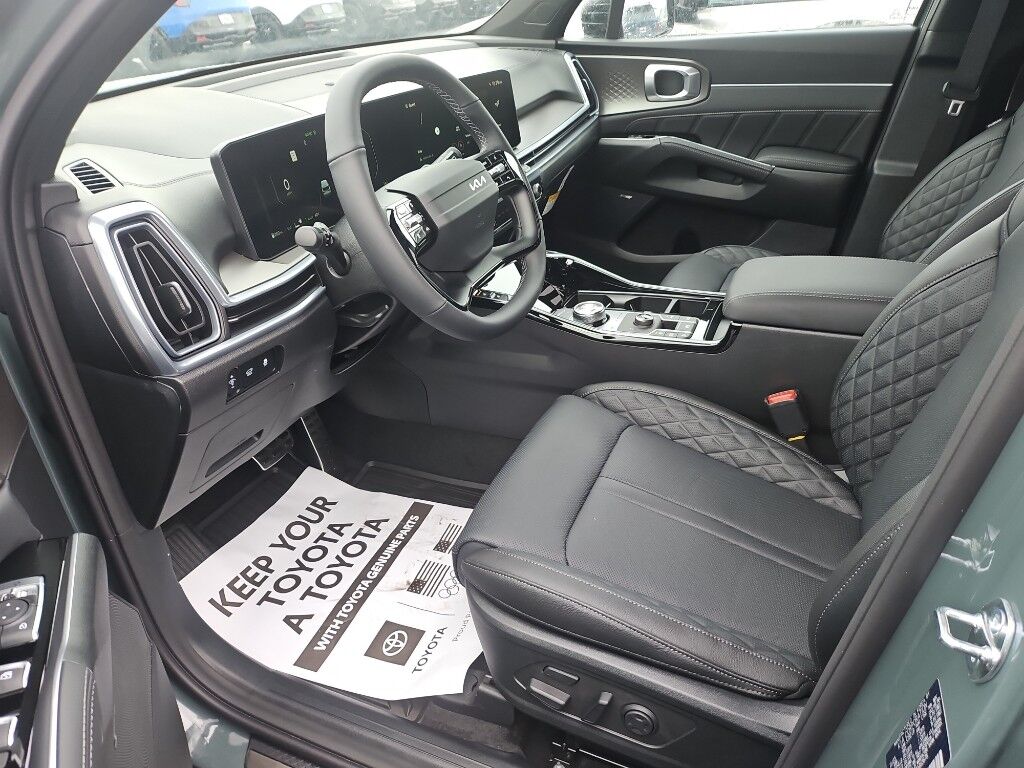 Apple CarPlay & Android Auto smart device wireless mirroring,Forward Collision-Avoidance Assist-Ped/Cyclist pedestrian impact prevention,Highway Driving Assist 2 (HDA 2) Automatic curve slowdown cruise control,Kia Connect mobile hotspot internet access,Rear mounted camera,Lane Keep Assist System (LKAS),Blind-Spot Collision-Avoidance Assist (BCA) active blind spot system,Rear Cross-Traffic Collision Avoidance (RCCA),Navigation-Based Smart Cruise Control-Ramp w/Stop & Go & Curve Control (NSCC-R) & Machine Learning (SCC-ML),Brake assist system,Cruise control with steering wheel mounted controls,Smart Power Liftgate power liftgate rear cargo door,Ventilated driver and front passenger seats,Integrated navigation system with voice activation,Keyfob remote start,Heated steering wheel,Heated driver and front passenger seats,Heated rear seats,Leather front seat upholstery,Primary monitor touchscreen,Fixed third-row seats,First and second-row sliding and tilting glass sunroof with express open/close activation sunshade,Driver seat power reclining, lumbar support, cushion extension, cushion tilt, fore/aft control and height adjustable control,Automatic full-time AWD,1.6L I-4 gasoline direct injection, DOHC, variable valve control, intercooled turbo, regular unleaded, engine with 177HP,1.6L I-4 DOHC,Front wireless smart device charging,Forward Collision-Avoidance Assist (FCA-LO/LS/JX),Driver Attention Warning (DAW ) w/Lead Vehicle Departure Alert (LVDA),Intelligent Speed Limit Assist (ISLA) traffic sign recognition with automatic speed limit assist,Evasive Steering Assist (ESA) evasion assist system,Parking Collision Avoidance Assist - Rear (PCA-R) rear pedestrian detection prevention,Junction Crossing front cross traffic mitigation,Smart Key with hands-free access and push button start,Surround View Monitor (SVM) aerial view camera,Blind-Spot View Monitor (BVM) left and right blind spot view,Smart device remote start,Push-button,Automatic brake hold,Video-feed rearview mirror,Bluetooth wireless audio streaming,Power rear child safety door locks,Digital Key 2.0 Advanced smart device-as-key proximity door locks,Gauge cluster display size: 12.30,Smart Liftgate proximity cargo area access release,Front mounted camera,Right side camera,Left side camera,Safe Exit Warning (SEW) external exit warning system,Dual-zone front climate control