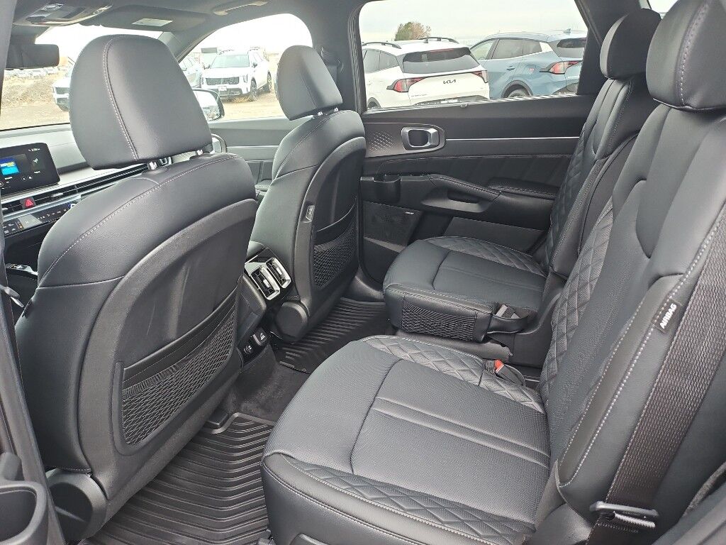 Apple CarPlay & Android Auto smart device wireless mirroring,Forward Collision-Avoidance Assist-Ped/Cyclist pedestrian impact prevention,Highway Driving Assist 2 (HDA 2) Automatic curve slowdown cruise control,Kia Connect mobile hotspot internet access,Rear mounted camera,Lane Keep Assist System (LKAS),Blind-Spot Collision-Avoidance Assist (BCA) active blind spot system,Rear Cross-Traffic Collision Avoidance (RCCA),Navigation-Based Smart Cruise Control-Ramp w/Stop & Go & Curve Control (NSCC-R) & Machine Learning (SCC-ML),Brake assist system,Cruise control with steering wheel mounted controls,Smart Power Liftgate power liftgate rear cargo door,Ventilated driver and front passenger seats,Integrated navigation system with voice activation,Keyfob remote start,Heated steering wheel,Heated driver and front passenger seats,Heated rear seats,Leather front seat upholstery,Primary monitor touchscreen,Fixed third-row seats,First and second-row sliding and tilting glass sunroof with express open/close activation sunshade,Driver seat power reclining, lumbar support, cushion extension, cushion tilt, fore/aft control and height adjustable control,Automatic full-time AWD,1.6L I-4 gasoline direct injection, DOHC, variable valve control, intercooled turbo, regular unleaded, engine with 177HP,1.6L I-4 DOHC,Front wireless smart device charging,Forward Collision-Avoidance Assist (FCA-LO/LS/JX),Driver Attention Warning (DAW ) w/Lead Vehicle Departure Alert (LVDA),Intelligent Speed Limit Assist (ISLA) traffic sign recognition with automatic speed limit assist,Evasive Steering Assist (ESA) evasion assist system,Parking Collision Avoidance Assist - Rear (PCA-R) rear pedestrian detection prevention,Junction Crossing front cross traffic mitigation,Smart Key with hands-free access and push button start,Surround View Monitor (SVM) aerial view camera,Blind-Spot View Monitor (BVM) left and right blind spot view,Smart device remote start,Push-button,Automatic brake hold,Video-feed rearview mirror,Bluetooth wireless audio streaming,Power rear child safety door locks,Digital Key 2.0 Advanced smart device-as-key proximity door locks,Gauge cluster display size: 12.30,Smart Liftgate proximity cargo area access release,Front mounted camera,Right side camera,Left side camera,Safe Exit Warning (SEW) external exit warning system,Dual-zone front climate control
