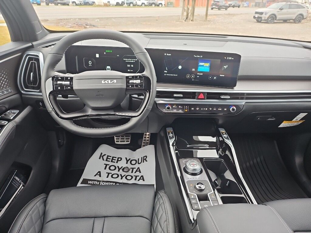 This 2026 Kia Sorento Hybrid offers Android Auto for seamless smartphone integration. This 2026 Kia Sorento Hybrid offers Apple CarPlay for seamless connectivity. Start this model from inside with remote start. The leather seats in this Kia Sorento Hybrid are a must for buyers looking for comfort, durability, and style. The installed navigation system will keep you on the right path. Bluetooth technology is built into this 2026 Kia Sorento Hybrid , keeping your hands on the steering wheel and your focus on the road. Keep your hands warm all winter with a heated steering wheel in this mid-size suv . It stays safely in its lane with Lane Keep Assist. Protect the Kia Sorento Hybrid from unwanted accidents with a cutting edge backup camera system. The vehicle employs advanced tech for collision avoidance, enhancing safety on the road. The Kia Sorento Hybrid has a 4 Cyl, 1.6L high output engine.
