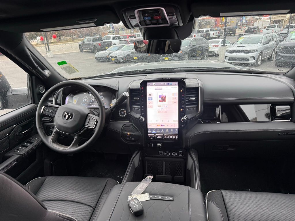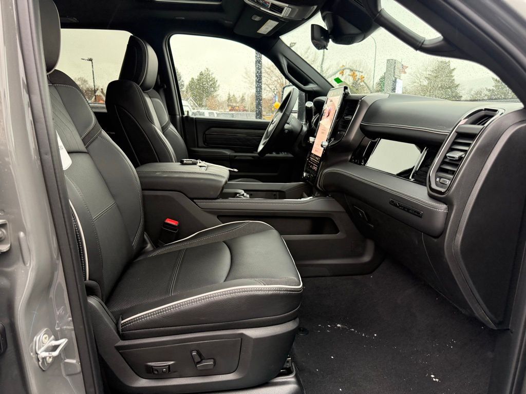 17 Speakers, 3.42 Axle Ratio, 4-Wheel Disc Brakes, 5th Wheel/Gooseneck Towing Prep Group, ABS brakes, Active Lane Management System, Adaptive Steering System, Adjustable pedals, Air Conditioning, Alloy wheels, AM/FM radio: SiriusXM with 360L, Apple CarPlay/Android Auto, Audio memory, Auto High-beam Headlights, Auto Level Rear Air Suspension, Auto-dimming door mirrors, Auto-dimming Rear-View mirror, Automatic temperature control, Black Exterior Truck Badging, Black Grille Limited, Black Wheel Center Hub, Body Color Grille Surround, Bodyside moldings, Brake assist, Bumpers: body-color, Center Stop Lamp with Cargo View Camera, Cold Weather Group, Compass, Delay-off headlights, Digital 3.0 Rear View Auto Dim Mirror, Digital Rearview Mirror, Driver door bin, Driver vanity mirror, Drowsy Driver Detection, Dual front impact airbags, Dual front side impact airbags, Electronic Stability Control, Engine Block Heater, Front anti-roll bar, Front Bucket Seats, Front Center Armrest w/Storage, Front dual zone A/C, Front fog lights, Front License Plate Bracket, Front reading lights, Fully automatic headlights, Garage door transmitter, Genuine wood console insert, Genuine wood dashboard insert, Genuine wood door panel insert, harman/kardon® Speakers, Heated door mirrors, Heated front seats, Heated rear seats, Heated steering wheel, Illuminated entry, Leather steering wheel, LED Bed Lighting, Limited Level 1 Equipment Group, Low tire pressure warning, Manufacturer's Statement of Origin, Memory seat, MOPAR Spray in Bedliner, MOPAR Trailer Camera Wiring with No Camera, MOPAR Winter Front Grille Cover, Navigation System, Night Edition, Occupant sensing airbag, Outside temperature display, Overhead airbag, Overhead console, Panic alarm, ParkView Rear Back-Up Camera, Passenger door bin, Passenger vanity mirror, Pedal memory, Pickup Box, Power Deployable Running Boards, Power door mirrors, Power driver seat, Power passenger seat, Power steering, Power Sunroof, Power windows, Quick Order Package 24M Limited, Radio data system, Radio: Uconnect 5 Nav with 14.4'' Display, Rain sensing wipers, Rear reading lights, Rear seat center armrest, Rear step bumper, Rear window defroster, Remote keyless entry, Security system, Speed control, Split folding rear seat, Sport Performance Hood, Steering wheel mounted audio controls, Surround View Camera System, Tachometer, Tilt steering wheel, Tow Technology Plus Group, Traction control, Traffic Sign Recognition, Trailer Reverse Guidance, Trailer Reverse Steering Control, Trailer Tire Pressure Monitoring System, Trip computer, Turn signal indicator mirrors, Ultra Premium Leather Seats, Variably intermittent wipers, Vendor Painted Cargo Box, Vendor Painted Cargo Box Tracking, Ventilated front seats, Voltmeter, Wheels: 20'' x 8'' Diamond Cut Aluminum, Wheels: 20'' x 8'' Night Edition Black Aluminum. Price includes: $1000 - 2026 National Bonus Cash . Exp. 04/30/2026