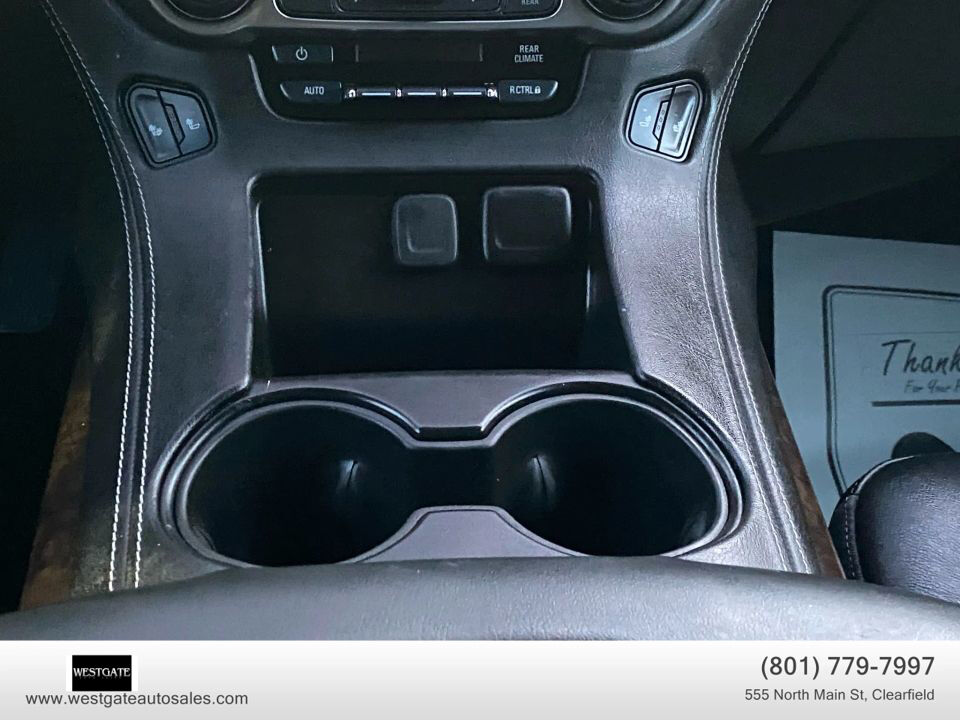 Alloy Wheels,Traction Control,Bluetooth Wireless,Blind-Spot Alert,Roof Rack,Third Row Seat,Dual Air Bags,OnStar,Luxury Pkg,ABS (4-Wheel),F&R Head Curtain Air Bags,Lane Keep Assist,Keyless Start,Power Windows,Side Air Bags,Running Boards,Dual Power Seats,Leather,Hill Start Assist,Power Door Locks,Navigation System,Cruise Control,CD/MP3 (Single Disc),Power Liftgate Release,4WD,StabiliTrak,SiriusXM Satellite,Air Conditioning,Theft Deterrent System,Power Steering,Backup Camera,Air Conditioning Rear,Automatic 6-Spd w/Overdrive,Moon Roof,Heated Seats,Keyless Entry,DVD System,Rear Park Assist,V8 EcoTec3 5.3 Liter,Premium Sound,Daytime Running Lights,AM/FM/HD Radio w/MyLink,Power Third Row,Towing Pkg,Tilt & Telescoping Wheel