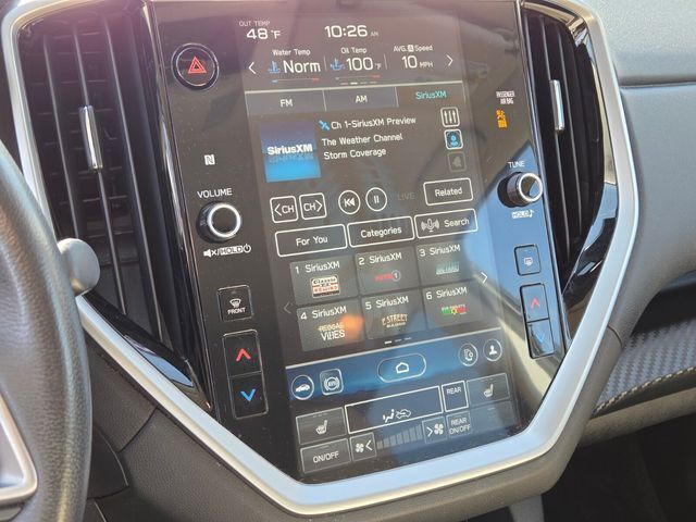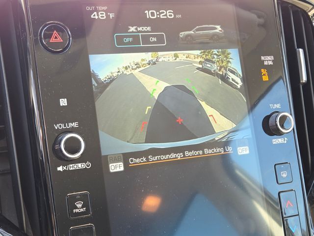 Exterior@Bumper detail (rear protector)~Exterior@Daytime running lights~Exterior@Door handle color (body-color)~Exterior@Exhaust (dual tip)~Exterior@Exhaust tip color (stainless steel)~Exterior@Exterior entry lights (approach lamps)~Exterior@Fender lip moldings (black)~Exterior@Front bumper color (black)~Exterior@Front wipers (variable intermittent)~Exterior@Grille color (black)~Exterior@Grille color (chrome surround)~Exterior@Headlight bezel color (black)~Exterior@Headlights (LED)~Exterior@Headlights (auto delay off)~Exterior@Headlights (auto high beam dimmer)~Exterior@Headlights (auto on/off)~Exterior@Headlights (cornering)~Exterior@Headlights (self-leveling)~Exterior@Headlights (wiper activated)~Exterior@Heated windshield wiper rests~Exterior@Laminated glass (acoustic windshield)~Exterior@Liftgate window (fixed)~Exterior@Mirror color (body-color)~Exterior@Power windows (safety reverse)~Exterior@Rear bumper color (black)~Exterior@Rear privacy glass~Exterior@Rear spoiler (roofline)~Exterior@Rear spoiler color (body-color)~Exterior@Rear trunk/liftgate (liftgate)~Exterior@Rear trunk/liftgate (power operated)~Exterior@Rear wiper (auto-on in reverse)~Exterior@Rear wiper (intermittent)~Exterior@Rear wiper (with washer)~Exterior@Rocker panel color (black)~Exterior@Roof rails (black)~Exterior@Side mirror adjustments (manual folding)~Exterior@Side mirror adjustments (power)~Exterior@Side mirrors (heated)~Exterior@Side mirrors (integrated turn signals)~Exterior@Tinted glass~Exterior@Window defogger (rear)~Exterior@Window trim (chrome)~Interior@Adaptive cruise control~Interior@Adaptive stop and go cruise control (semi-automatic)~Interior@Air filtration~Interior@Airbag deactivation (occupant sensing passenger)~Interior@Antenna type (diversity)~Interior@Antenna type (mast)~Interior@Armrests (rear outboard seats)~Interior@Assist handle (front)~Interior@Assist handle (rear)~Interior@Autonomous lane guidance (lane centering)~Interior@Cargo area floor mat (rubber/vinyl)~Interior@Cargo area light~Interior@Center console (front console with armrest and storage)~Interior@Center console (illuminated)~Interior@Center console (organizer tray)~Interior@Center console trim (leatherette)~Interior@Connected in-car apps (Google POIs)~Interior@Connected in-car apps (Google search)~Interior@Connected in-car apps (SiriusXM Travel Link)~Interior@Connected in-car apps (Yelp)~Interior@Conversation mirror~Interior@Courtesy lights (door)~Interior@Cupholders (front)~Interior@Cupholders (rear)~Interior@Cupholders (third row)~Interior@Dash trim (simulated carbon fiber)~Interior@Door trim (leatherette)~Interior@Door trim (simulated carbon fiber)~Interior@Driver assistance app (roadside assistance)~Interior@Driver seat (heated)~Interior@Driver seat power adjustments (8)~Interior@Driver seat power adjustments (height)~Interior@Driver seat power adjustments (reclining)~Interior@Easy entry (manual rear seat)~Interior@Electronic messaging assistance (voice operated)~Interior@Electronic messaging assistance (with read function)~Interior@Floor mat material (carpet)~Interior@Floor material (carpet)~Interior@Front air conditioning (automatic climate control)~Interior@Front air conditioning zones (dual)~Interior@Front airbags (dual)~Interior@Front headrests (2)~Interior@Front headrests (adjustable)~Interior@Front seat type (bucket)~Interior@Hands-free phone call integration (voice operated)~Interior@Infotainment (STARLINK)~Interior@Infotainment screen size (11.6 in.)~Interior@Interior accents (chrome)~Interior@Internet radio app (AHA)~Interior@Internet radio app (Pandora)~Interior@Internet radio app (iHeartRadio)~Interior@Knee airbags (driver)~Interior@Memorized settings (liftgate)~Interior@Multi-function remote (panic alarm)~Interior@Multi-function remote (proximity entry system)~Interior@Multi-function remote (trunk release)~Interior@One-touch windows (2)~Interior@Overhead console (front)~Interior@Passenger seat (heated)~Interior@Passenger seat manual adjustments (4)~Interior@Passenger seat manual adjustments (reclining)~Interior@Power outlet(s) (12V cargo area)~Interior@Power outlet(s) (12V front)~Interior@Power outlet(s) (USB-C front)~Interior@Power outlet(s) (USB-C rear)~Interior@Power outlet(s) (two 12V front)~Interior@Power steering (variable/speed-proportional)~Interior@Power windows (lockout button)~Interior@Push-button start~Interior@Radio (AM/FM)~Interior@Radio (HD radio)~Interior@Radio (touch screen display)~Interior@Radio (voice operated)~Interior@Radio data system~Interior@Reading lights (front)~Interior@Reading lights (rear)~Interior@Reading lights (third row)~Interior@Rear air conditioning (automatic climate control)~Interior@Rear air conditioning (independently controlled)~Interior@Rear air conditioning zones (single)~Interior@Rear headrests (2)~Interior@Rear headrests (adjustable)~Interior@Rear seat folding (flat)~Interior@Rear seat folding (split)~Interior@Rear seat type (captains chairs)~Interior@Rear vents (third row)~Interior@Rearview mirror (auto-dimming)~Interior@Shift knob trim (leather)~Interior@Side airbags (front)~Interior@Side curtain airbags (front)~Interior@Side curtain airbags (rear)~Interior@Side curtain airbags (third row)~Interior@Smart device app compatibility (MySubaru)~Interior@Smart device app function (engine start)~Interior@Smart device app function (horn/light operation)~Interior@Smart device app function (lock operation)~Interior@Smart device app function (maintenance scheduling)~Interior@Smart device app function (maintenance status)~Interior@Smart device app function (vehicle location)~Interior@Smartphone integration (wireless Android Auto)~Interior@Smartphone integration (wireless Apple CarPlay)~Interior@Speed sensitive volume control~Interior@Steering wheel (tilt and telescopic)~Interior@Steering wheel mounted controls (audio)~Interior@Steering wheel mounted controls (cruise control)~Interior@Steering wheel mounted controls (multi-function)~Interior@Steering wheel mounted controls (paddle