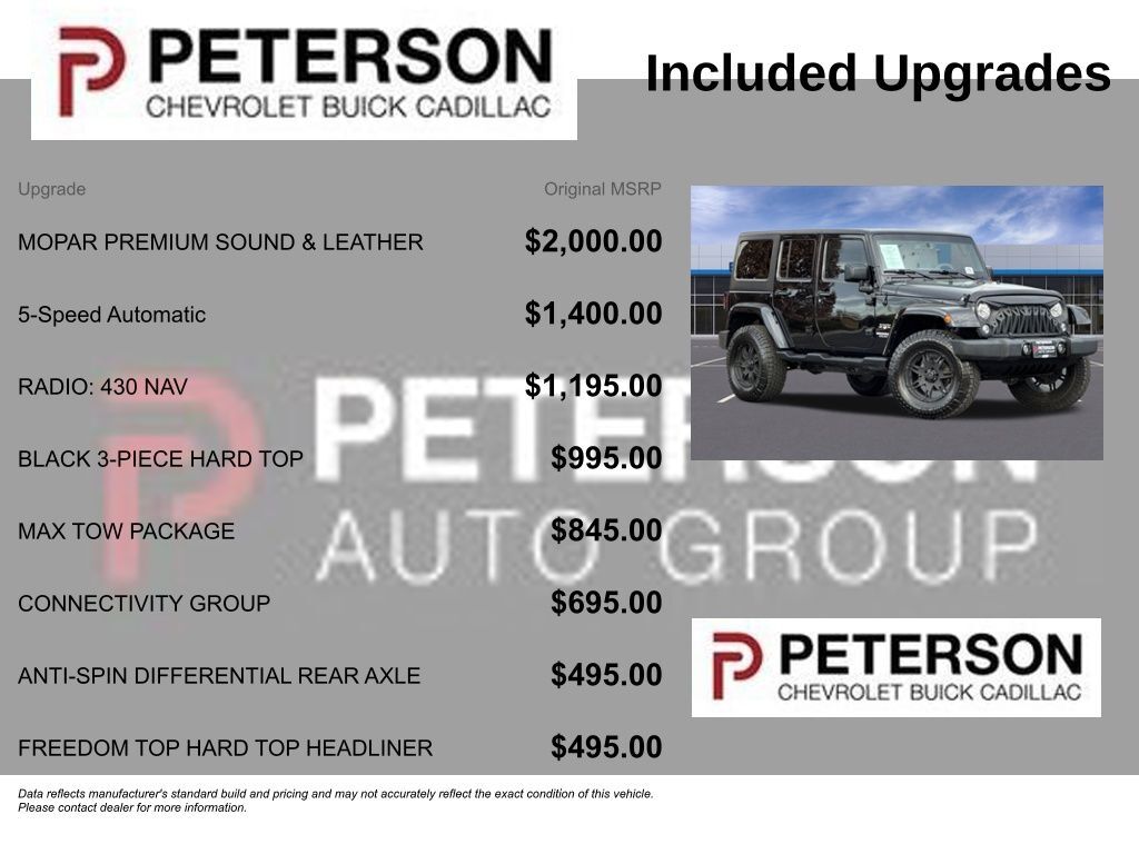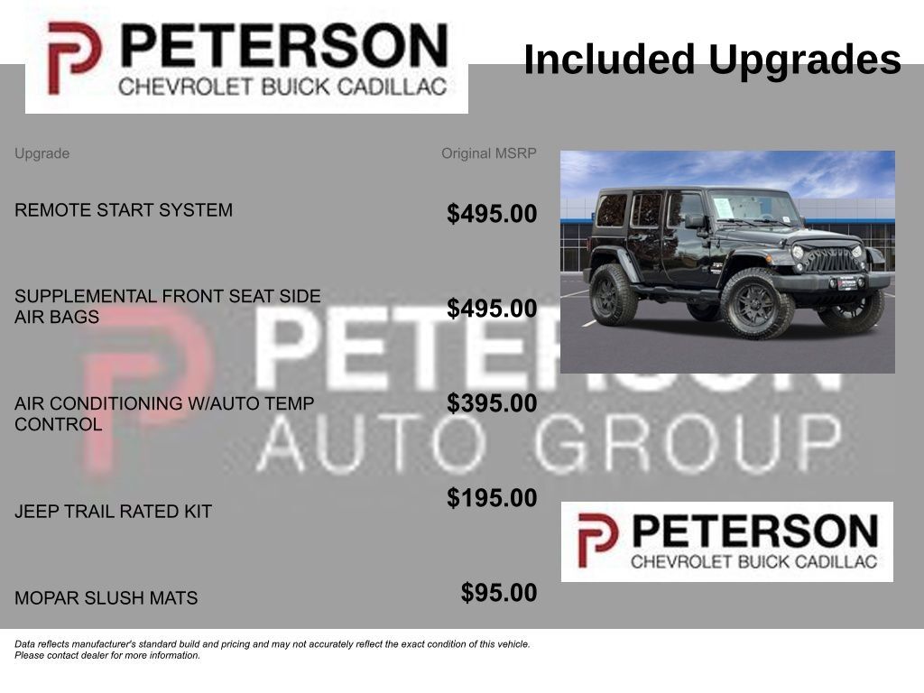 As you're blazing trails, bashing boulders, or cruising the beach, remember that your Jeep is engineered tough with ABS, stability/traction control, and airbags to keep you out of harm's way. It's time to reward yourself with this tremendously capable Wrangler Sahara! Save this Page and Call for Availability. We Know You Will Enjoy Your PETERSON CHEVROLET Test Drive Towards Ownership! Call us today 208-323-5000 to schedule your VIP test drive!