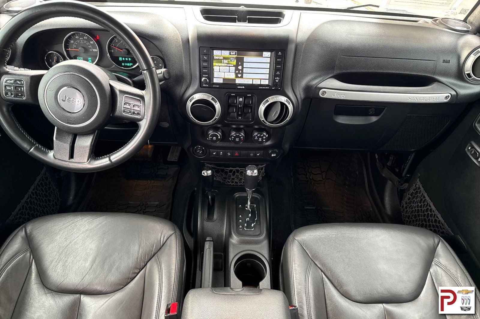 Imagine yourself behind the wheel of our Sahara in the Premium Sound and Leather Package's supportive heated leather seats, surrounded by amenities including power windows/locks, keyless entry, remote start, an auto-dimming rearview mirror, a leather-wrapped steering wheel, air conditioning, available satellite radio, Uconnect 6.5-inch touchscreen display, voice command, a premium nine-speaker Alpine sound system, full-color navigation system, and Bluetooth connectivity.