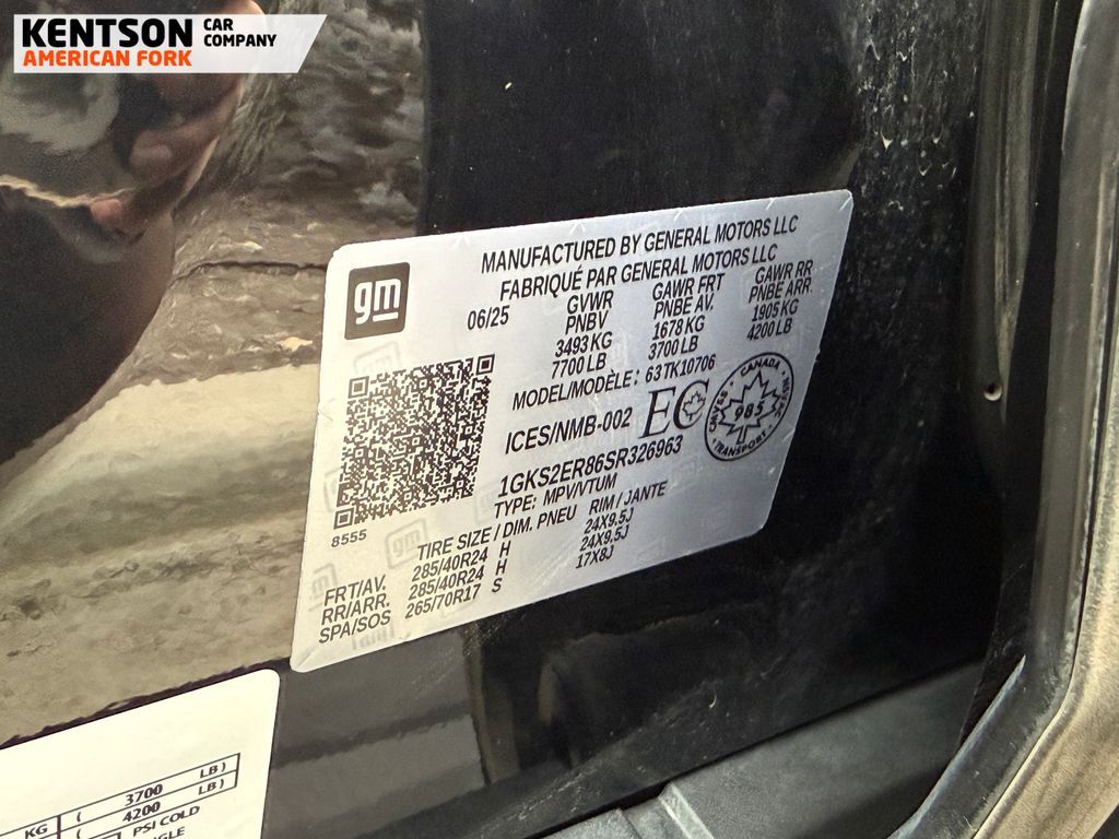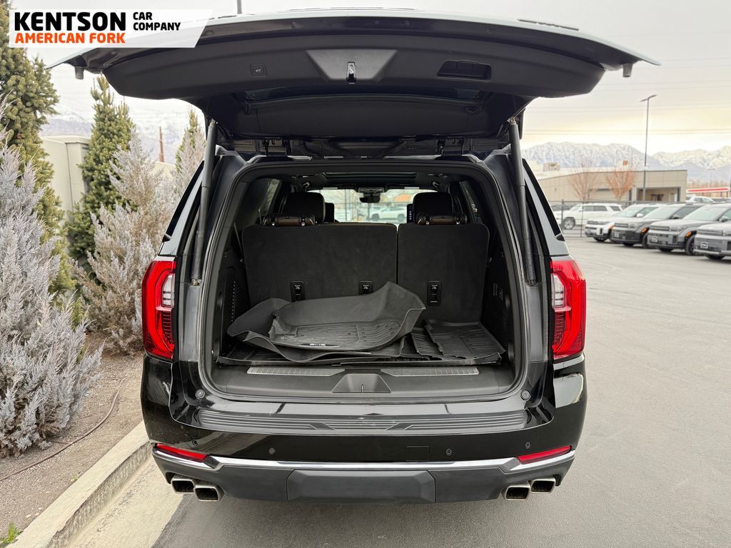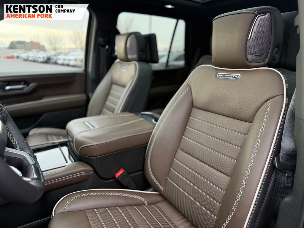 Advanced Security Package (Glass Breakage Sensor, Theft-Deterrent Alarm System, Vehicle Inclination Sensor, and Vehicle Interior Movement Sensor), Advanced Technology Package (3 Years of OnStar Services/Safety Services, Driver Attention Assist, Inside Rearview Auo-Dimming Rear Camera Mirror, Rear Seat Media System, and Super Cruise), Max Trailering Package (Blind Zone Steering Assist with Trailering, Extra Capacity Cooling System, Hitch View, Integrated Trailer Brake Controller, and Smart Trailer Integration Indicator), Premium Capability Package with Active Response 4WD (Air Ride Adaptive Suspension and Electronic Limited Slip Differential (ELSD)), 15'' Diagonal Multi-Color Head-Up Display, 18 Speakers, 3.23 Rear Axle Ratio, 3rd row seats: split-bench, 4-Spoke Leather-Wrapped Steering Wheel, 4-Way Power Driver Lumbar Seat Adjuster, 4-Way Power Front Passenger Lumbar Seat Adjuster, 4-Wheel Disc Brakes, 8'' Diagonal Rear Touchscreen Climate Control, ABS brakes, Adaptive suspension, Air Conditioning, Alloy wheels, AM/FM radio: SiriusXM with 360L, Apple CarPlay/Android Auto, Audio memory, Auto High-beam Headlights, Auto-dimming door mirrors, Auto-dimming Rear-View mirror, Auto-leveling suspension, Automatic temperature control, AutoSense Hands-Free Power Liftgate, Bodyside moldings, Bose 18-Speaker Surround with Centerpoint, Brake assist, Bright Front and Rear Door Sill Plates, Bumpers: body-color, Compass, Delay-off headlights, Driver 2-Way Power Upper Shoulder, Driver door bin, Driver Power Massage Seat, Driver vanity mirror, Dual Exhaust System, Dual front impact airbags, Dual front side impact airbags, Dual-Pane Panoramic Power Sunroof, Electronic Stability Control, Emergency communication system: OnStar and GMC connected services capable, Exterior Parking Camera Rear, Four wheel independent suspension, Front anti-roll bar, Front Bucket Seats, Front Center Armrest, Front dual zone A/C, Front fog lights, Front Passenger 2-Way Power Upper Shoulder, Front Passenger Power Massage Seat, Front reading lights, Full Grain Leather Seats, Fully automatic headlights, Garage door transmitter, Headphones, Heads-Up Display, Heated door mirrors, Heated Driver and Front Passenger Seats, Heated front seats, Heated rear seats, Heated steering wheel, Hill Descent Control, Illuminated entry, Leather steering wheel, Low tire pressure warning, Magnetic Ride Control Suspension, Memory seat, Navigation system: GMC Connected Navigation, Occupant sensing airbag, Outside temperature display, Overhead airbag, Overhead console, Panic alarm, Passenger door bin, Passenger vanity mirror, Perforated Heather and Ventilated Driver and Front Passenger Seats, Power door mirrors, Power driver seat, Power Liftgate, Power moonroof, Power passenger seat, Power Release 2nd Row