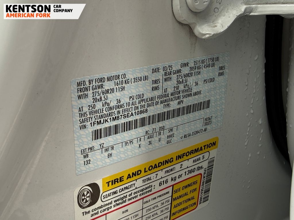 Equipment Group 600A Standard Package (2nd Row Power-Folding Captain's Chairs), 10 Speakers, 3.73 Axle Ratio, 3rd row seats: split-bench, 4-Wheel Disc Brakes, ABS brakes, Adjustable pedals, Air Conditioning, Alloy wheels, AM/FM radio: SiriusXM with 360L, Apple CarPlay/Android Auto, Auto High-beam Headlights, Auto-dimming door mirrors, Auto-dimming Rear-View mirror, Automatic temperature control, Brake assist, Bumpers: body-color, Compass, Delay-off headlights, Driver door bin, Driver vanity mirror, Dual front impact airbags, Dual front side impact airbags, Electronic Stability Control, Emergency communication system: 911 Assist, Exterior Parking Camera Rear, Four wheel independent suspension, Front anti-roll bar, Front Bucket Seats, Front Center Armrest, Front dual zone A/C, Front License Plate Bracket, Front reading lights, Fully automatic headlights, Garage door transmitter, Genuine wood dashboard insert, Genuine wood door panel insert, Heated & Ventilated Leather Front Captain's Chairs, Heated door mirrors, Heated front seats, Heated rear seats, Heated steering wheel, Illuminated entry, Leather steering wheel, Low tire pressure warning, Memory seat, Navigation System, Occupant sensing airbag, Outside temperature display, Overhead airbag, Overhead console, Panic alarm, Passenger door bin, Passenger vanity mirror, Pedal memory, Power door mirrors, Power driver seat, Power moonroof: Vista Roof, Power passenger seat, Power steering, Power windows, Radio data system, Radio: B&O Sound System by Bang & Olufsen, Rain sensing wipers, Rear air conditioning, Rear anti-roll bar, Rear reading lights, Rear window defroster, Rear window wiper, Reclining 3rd row seat, Remote keyless entry, Security system, SiriusXM w/360L, Speed control, Speed-sensing steering, Speed-Sensitive Wipers, Split folding rear seat, Spoiler, Steering wheel memory, Steering wheel mounted audio controls, Tachometer, Telescoping steering wheel, Tilt steering wheel, Traction control, Trip computer, Turn signal indicator mirrors, Variably intermittent wipers, Ventilated front seats, Voltmeter, and Wheels: 20'' Ebony Bright Machined Aluminum.