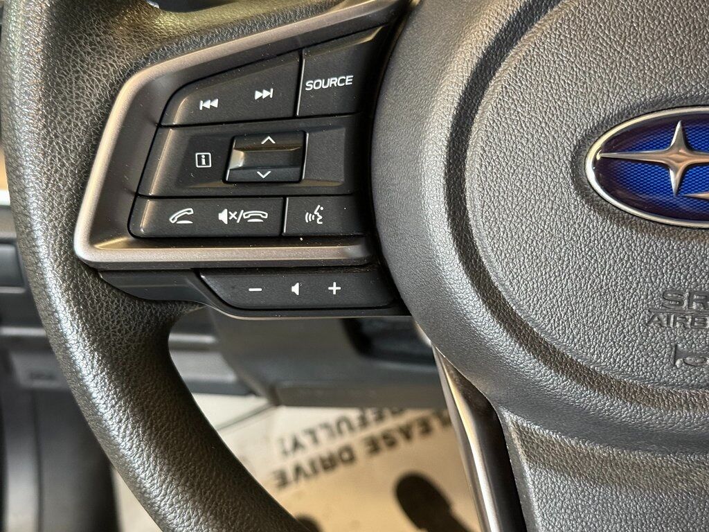 4-Wheel Disc Brakes, ABS brakes, Air Conditioning, Anti-whiplash front head restraints, Auto High-beam Headlights, Automatic temperature control, Backup Camera, Brake assist, Dual front impact airbags, Dual front side impact airbags, Electronic Stability Control, Four wheel independent suspension, Front anti-roll bar, Front dual zone A/C, Knee airbag, Occupant sensing airbag, Overhead airbag, Panic alarm, Power steering, Power windows, Radio: Subaru STARLINK Dual 7.0'' Multimedia System, Rear window defroster, Remote keyless entry, Security system, Speed-sensing steering, STARLINK/Apple CarPlay/Android Auto, Steering wheel mounted audio controls, TPMS Sensors, Traction control, Wheels: 16'' x 6.0'' Full Cap 1/2 J Steel.
