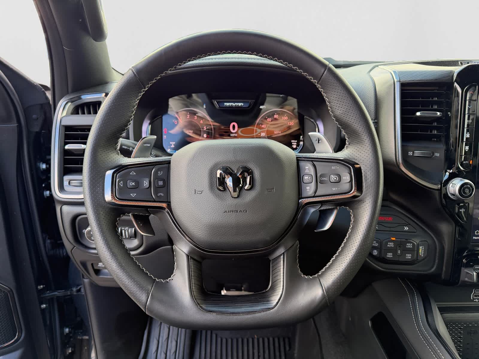 Leather Seats, Navigation, 4x4, Heated Driver Seat, Back-Up Camera, Premium Sound System, Satellite Radio, iPod/MP3 Input, Bluetooth®, Trailer Hitch. MP3 Player, Keyless Entry, Privacy Glass, Steering Wheel Controls. Ram RHO with Forged Blue Metallic exterior and Black interior features a Straight 6 Cylinder Engine.