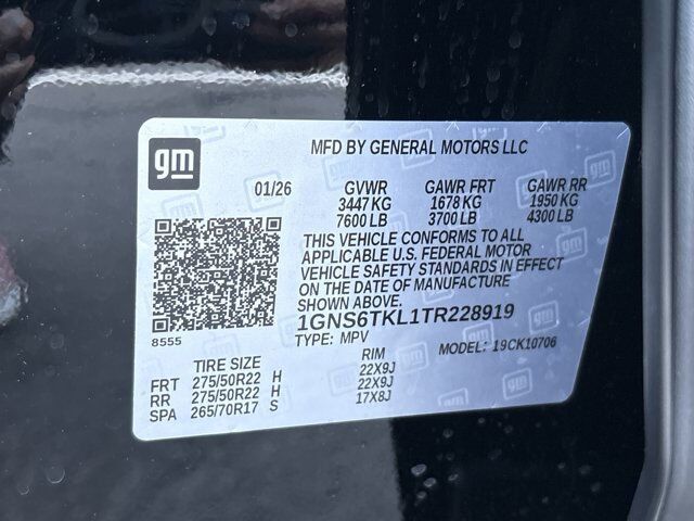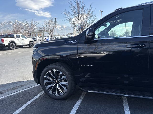 Preferred Equipment Group 3LZ,8-Way Power Driver Seat Adjuster,Memory Settings,8-Way Power Front Passenger Seat Adjuster,First and Second Rows Premium Floor Liners,3rd Row 60/40 Power-Folding Split-Bench Seat,Frontal Driver and Outboard Passenger Airbags,Power Release 2nd Row Bucket Seats,4-Way Power Driver Lumbar Seat Adjuster,4-Way Power Front Passenger Lumbar Seat Adjuster,Chrome Door Handles with Body-Color Strip,Color-Keyed Carpeting Floor Covering,1st and 2nd Row Color-Keyed Carpeted Floor Mats,Remote Start,Bright Front and Rear Door Sill Plates,Dual-Pane Power Panoramic Sunroof,All-Weather Cargo Mat,Floor Console,Inside Rearview Auo-Dimming Rear Camera Mirror,Outside Heated Power-Adjustable Mirrors,3.23 Rear Axle Ratio,Hill Descent Control,Integrated Trailer Brake Controller,Wireless Phone Charging,Heated Driver and Front Passenger Seats,Heated 2nd Row Outboard Seats,Key Card,Heated Steering Wheel,Driver and Front Passenger Heated and Ventilated Seats,Dual Exhaust System,Power Tilt and Telescopic Steering Column,3-Spoke Wrapped Steering Wheel,Max Trailering Package,2-Speed Active Electronic AutoTrac Transfer Case,Sun and Tow Package,Hitch View with Pan/Zoom Image Adjustment,Wheels: 22 x 9 Bright Machined Aluminum,3 Years SiriusXM,Premium Liner Protection Package,3rd Row All-Weather Floor Liners,Set of 4 Wheel Locks,Front and Rear Black Bowtie Emblems,Perforated Leather Seat Trim,Front LED Fog Lamps,LED Tail Lamps,Rear Power Liftgate,LED Headlamps with LED Daytime Running Lamps,SiriusXM with 360L Trial Subscription,Interior Camera,Smart Trailer Integration Indicator,Universal Home Remote,Blind Zone Steering Assist with Trailering,Bose 10-Speaker Centerpoint Surround Audio System Feature,Radio: 17.7 Diagonal Advanced Color LCD Display,15 Diagonal Multi-Color Head-Up Display,Extra Capacity Cooling System,Magnetic Ride Control Suspension,Advanced Trailering Package,4-Wheel Disc Brakes,Navigation system: Google built-in compatibility (select service plan required,terms and limitations apply),Apple CarPlay/Android Auto,Premium audio system: Chevrolet Infotainment 3 Premium,Emergency communication system: OnStar and Chevrolet connected services capable,AM/FM radio: SiriusXM with 360L,Auto High-beam Headlights,Exterior Parking Camera Rear,Compass,Heads-Up Display,10 Speakers,Auto-dimming Rear-View mirror,Ventilated front seats,Variably intermittent wipers,Turn signal indicator mirrors,Trip computer,Traction control,Tilt steering wheel,Telescoping steering wheel,Steering wheel mounted audio controls,Steering wheel memory,Split folding rear seat,Speed-sensing steering,Speed control,Security system,Remote keyless entry,Rear window wiper,Rear window defroster,Rear reading lights,Rear anti-roll bar,Rear air conditioning,Rain sensing wipers,Radio data system,Power windows,Power steering,Power passenger seat,Power driver seat,Power door mirrors,Passenger vanity mirror,Passenger door bin,Panic alarm,Overhead console,Overhead airbag,Outside temperature display,Occupant sensing airbag,Memory seat,Low tire pressure warning,Illuminated entry,Heated steering wheel,Heated rear seats,Heated front seats,Heated door mirrors,Garage door transmitter,Fully automatic headlights,Front reading lights,Front fog lights,Front dual zone A/C,Front anti-roll bar,Four wheel independent suspension,Dual front side impact airbags,Dual front impact airbags,Driver vanity mirror,Driver door bin,Delay-off headlights,Bumpers: body-color,Brake assist,Automatic temperature control,Auto-leveling suspension,Auto-dimming door mirrors,Alloy wheels,Adjustable head restraints: driver and passenger w/tilt,Adaptive suspension,ABS brakes,3rd row seats: split-bench,Voltmeter,Tachometer,Spoiler,Power Liftgate,Front Center Armrest,Front Bucket Seats,Electronic Stability Control,Air Conditioning,SUSPENSION MAGNETIC RIDE CONTROL,TIRES 275/50R22SL ALL-SEASON BLACKWALL (STD),HILL DESCENT CONTROL,LPO ALL-WEATHER CARGO MAT (dealer-installed),LPO ALL-WEATHER FLOOR LINERS 3RD ROW (dealer-installed),COOLING SYSTEM EXTRA CAPACITY,TRAILER BRAKE CONTROLLER INTEGRATED,3 YEARS SIRIUSXM,SUN AND TOW PACKAGE includes (C3U) power sunroof and (NHT) Max Trailering Package,HIGH COUNTRY PREFERRED EQUIPMENT GROUP includes standard equipment,REAR AXLE 3.23 RATIO,LPO BLACK BOWTIE EMBLEMS FRONT AND REAR (dealer-installed),ENGINE 6.2L ECOTEC3 V8 with Dynamic Fuel Management Direct Injection and Variable Valve Timing includes aluminum block construction (420 hp [313 kW] @ 5600 rpm 460 lb-ft of torque [624 Nm] @ 4100 rpm) (STD),HITCH VIEW with image adjustment Pan/Zoom,ADVANCED TRAILERING PACKAGE includes (UKW) Blind Zone Steering Assist with Trailering (PZ8) Hitch View and (UET) Smart Trailer Integration Indicator,AUDIO SYSTEM 17.7 DIAGONAL ADVANCED COLOR LCD DISPLAY with Google built-in compatibility (select service plan required terms and limitations apply) including navigation capability connected apps personalized profiles for each driver's settings Natural Voice Recognition and Phone Integration (STD),JET BLACK PERFORATED LEATHER SEATING SURFACES,TRANSFER CASE ACTIVE 2-SPEED ELECTRONIC AUTOTRAC with rotary controls includes neutral position for dinghy towing,SUNROOF POWER PANORAMIC DUAL-PANE TILT-SLIDING with express-open and close and power sunshade,LPO PREMIUM FLOOR LINERS 1ST AND 2ND ROWS WITH PREMIUM BRAND BADGING (dealer-installed),LPO PREMIUM LINER PROTECTION PACKAGE includes (AAK) 1st and 2nd row premium floor liners LPO (RIB) 3rd row all-weather floor liner LPO and (CAV) all-weather cargo mat LPO (dealer-installed),BLIND ZONE STEERING ASSIST WITH TRAILERING,BLACK,WHEELS 22 X 9 (55.9 CM X 22.9 CM) BRIGHT MACHINED ALUMINUM AND PAINTED AFTER MIDNIGHT (Includes (SFE) wheel locks LPO.) (STD),SMART TRAILER INTEGRATION INDICATOR,TRANSMISSION 10-SPEED AUTOMATIC electronically controlled with overdrive includes Traction Select System including tow/haul (STD),SEATS FRONT BUCKET (STD),MAX TRAILERING PACKAGE includes (ZL6) Advanced Trailering Package (JL1) trailer b