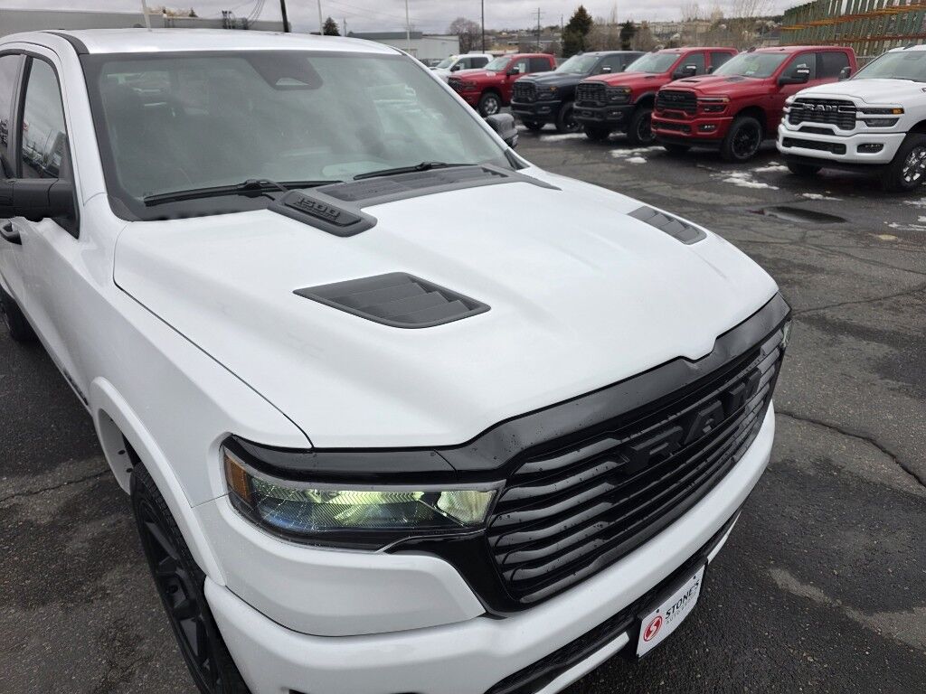 Quick Order Package 21H Laramie. Laramie Level 2 Equipment Group: SiriusXM Radio Service; USB Host Flip; Rain Sensitive Windshield Wipers; 14.4" Touchscreen Display; Integrated Center Stack Radio; Front Passenger Interactive Display; Integrated Voice Command with Bluetooth; Connectivity - US/Canada; Uconnect 5 Nav with 14.4" Display; GPS Navigation; 4G LTE Wi-Fi Hot Spot; Harman/kardon 19 Speaker Premium Sound; SiriusXM with 360L; Connected Travel and Traffic Services; Cluster 12" TFT Color Display; Power Tailgate. Night Edition: Black Headlamp Bezels; Auto Power-Folding Mirrors; 22" X 9" Forged Aluminum Wheels; Exterior Mirrors with Heating Element; Proximity Approach/departure Lamps; Auto Dim Exterior Driver Mirror; Anti-Spin Differential Rear Axle; Accent Color Door Handles; Black Interior Accents; Body Color Front Bumper; Grille Surround 3 Black Texture 2 Black; Body Color Rear Bumper with Step Pads; RAM Grille Badge - Black; Black Painted Exterior Mirrors Caps; Exterior Mirrors Approach Lamps; Accent Color Premium Power Mirrors; Exterior Mirrors with Supplemental Signals; Sport Performance Hood; Exterior Mirrors Courtesy Lamps; Black Exterior Truck Badging; Accent Color Tailgate Handle; Exterior Mirrors with Memory; Dual Exhaust with Black Tips; Convex Wide-Angle Exterior Mirror Insert; Black Tail Lamp Bezels. 22" X 9" Forged Aluminum Wheels. Power Deployable Running Boards. RamBox Cargo Management System. Anti-Spin Differential Rear Axle. Trailer Brake Control. MyFlexCare Service Plan. MOPAR Front and Rear Rubber Floor Mats. Equipment listed is based on original vehicle build and subject to change. Please confirm the accuracy of the included equipment by calling the dealer prior to purchase.