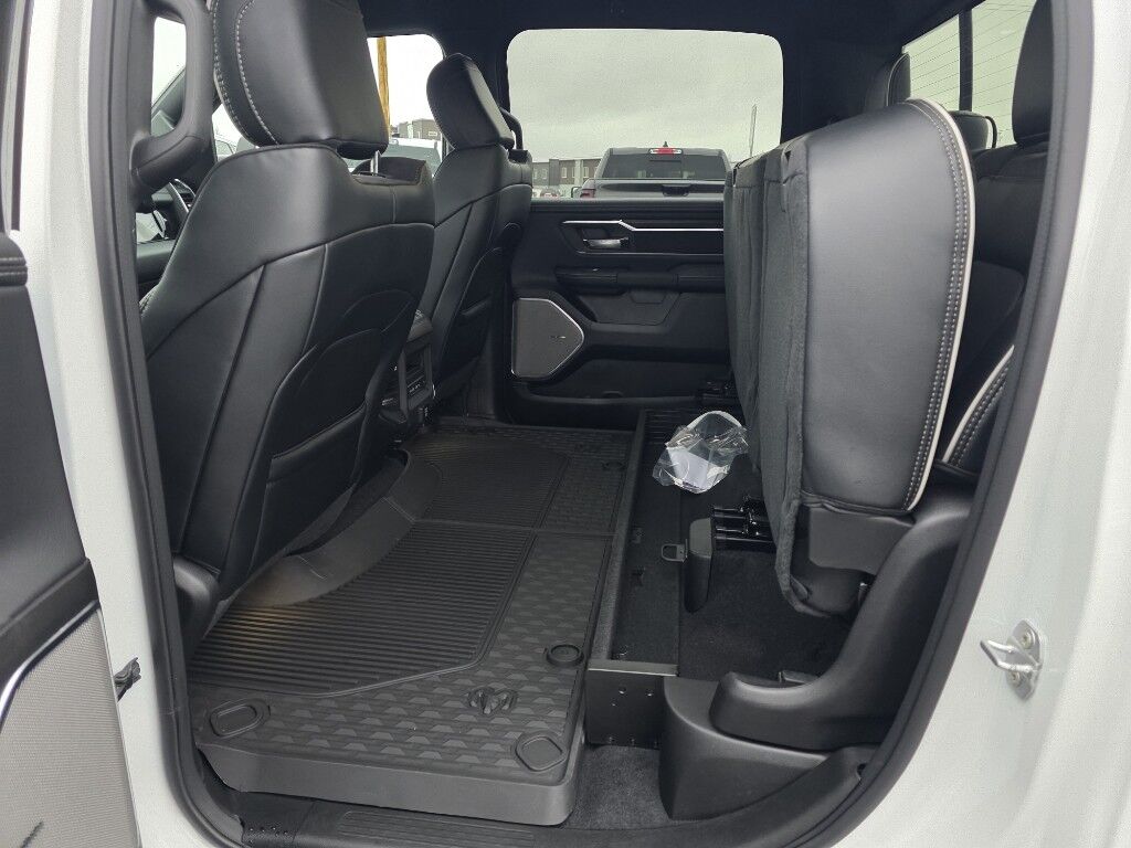 Quick Order Package 21H Laramie,Laramie Level 2 Equipment Group: SiriusXM Radio Service; USB Host Flip; Rain Sensitive Windshield Wipers; 14.4" Touchscreen Display; Integrated Center Stack Radio; Front Passenger Interactive Display; Integrated Voice Command with Bluetooth; Connectivity - US/Canada; Uconnect 5 Nav with 14.4" Display; GPS Navigation; 4G LTE Wi-Fi Hot Spot; Harman/kardon 19 Speaker Premium Sound; SiriusXM with 360L; Connected Travel and Traffic Services; Cluster 12" TFT Color Display; Power Tailgate,Night Edition: Black Headlamp Bezels; Auto Power-Folding Mirrors; 22" X 9" Forged Aluminum Wheels; Exterior Mirrors with Heating Element; Proximity Approach/departure Lamps; Auto Dim Exterior Driver Mirror; Anti-Spin Differential Rear Axle; Accent Color Door Handles; Black Interior Accents; Body Color Front Bumper; Grille Surround 3 Black Texture 2 Black; Body Color Rear Bumper with Step Pads; RAM Grille Badge - Black; Black Painted Exterior Mirrors Caps; Exterior Mirrors Approach Lamps; Accent Color Premium Power Mirrors; Exterior Mirrors with Supplemental Signals; Sport Performance Hood; Exterior Mirrors Courtesy Lamps; Black Exterior Truck Badging; Accent Color Tailgate Handle; Exterior Mirrors with Memory; Dual Exhaust with Black Tips; Convex Wide-Angle Exterior Mirror Insert; Black Tail Lamp Bezels,22" X 9" Forged Aluminum Wheels,Power Deployable Running Boards,RamBox Cargo Management System,Anti-Spin Differential Rear Axle,Trailer Brake Control,MyFlexCare Service Plan,MOPAR Front and Rear Rubber Floor Mats,Forward Collision Warning-Plus,Power open and close tailgate,Ventilated driver and front passenger seats,Integrated navigation system with voice activation,Blind Spot Detection,Keyfob remote start,Heated steering wheel,Uconnect w/Bluetooth handsfree wireless device connectivity,Apple CarPlay/Android Auto smart device wireless mirroring,Heated driver and front passenger seats,Simulated suede and leather front seat upholstery,Driver seat with 8-way directional controls,Front passenger seat with 8-way directional controls,RamBox integrated pickup box storage,Keyfob trunk control,14.4 inch primary display,Pedestrian Emergency Braking,4G LTE Wi-Fi Hot Spot mobile hotspot internet access,ParkView rear mounted camera,Active Lane Management System,Adaptive cruise control with stop and go,Brake Assist predictive brake assist system,Cruise control with steering wheel mounted controls,Heated rear seats,Primary monitor touchscreen,Cross Path Detection collision warning,Driver seat power reclining, lumbar support, cushion tilt, fore/aft control and height adjustable control,Part and full-time 4WD,Hurricane 3L I-6 gasoline direct injection, DOHC, variable valve control, twin turbo, regular unleaded, engine with 420HP,Hurricane 3L I-6 DOHC,Smart key with hands-free access and push button start,Smart device remote start,Push-button,Active aerodynamics,Front passenger touchscreen,Bluetooth wireless audio streaming,Gauge cluster display size: 12.00,Following distance alert,Dual-zone front climate control,Full gauge cluster screen,Auto high-beam headlights,Sentry Key immobilizer,Harman/kardon speakers,Active noise cancellation,Connected Travel & Traffic Services real-time traffic,Trailer brake controller,Trailer sway control,Uconnect external memory control,Internet radio capability,9 USB ports