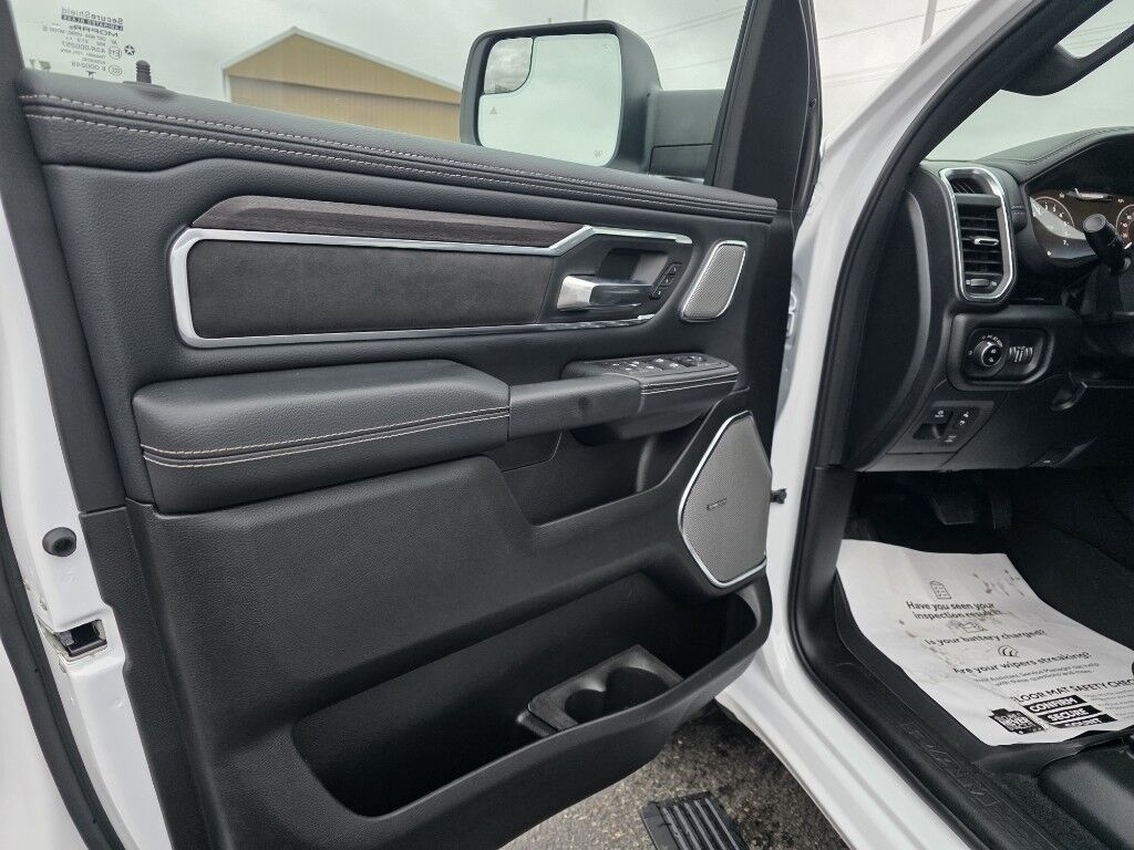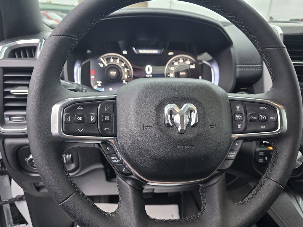 Protect this Ram 1500 from unwanted accidents with a cutting edge backup camera system. This 1/2 ton pickup has automated speed control that adjusts to maintain a safe following distance, enhancing highway driving convenience. The installed navigation system will keep you on the right path. This vehicle's Forward Collision Warning feature alerts drivers to potential front-end collisions. This vehicle is equipped with the latest generation of XM/Sirius Radio. This 1/2 ton pickup comes equipped with Android Auto for seamless smartphone integration on the road. Keep your hands warm all winter with a heated steering wheel in this 1/2 ton pickup . Start this 1/2 ton pickup from inside with remote start. Apple CarPlay: Seamless smartphone integration for this 1/2 ton pickup - stay connected and entertained on the go! Enjoy your music even more with the premium sound system in the vehicle. The leather seats in this vehicle are a must for buyers looking for comfort, durability, and style.