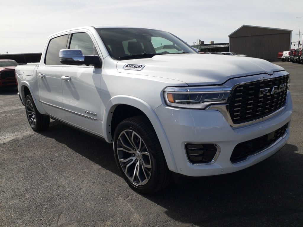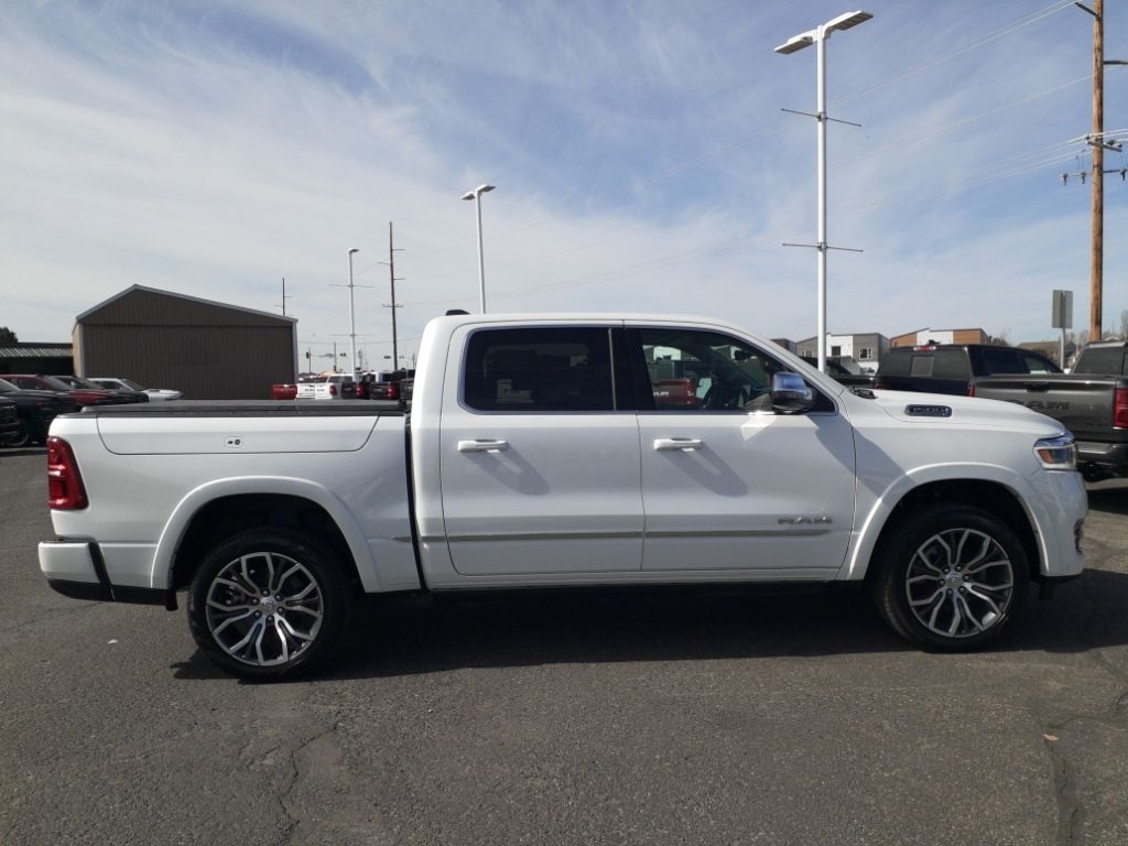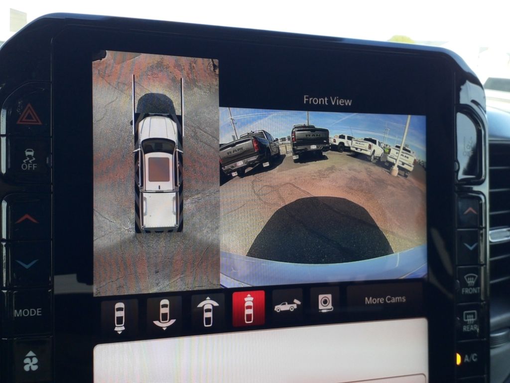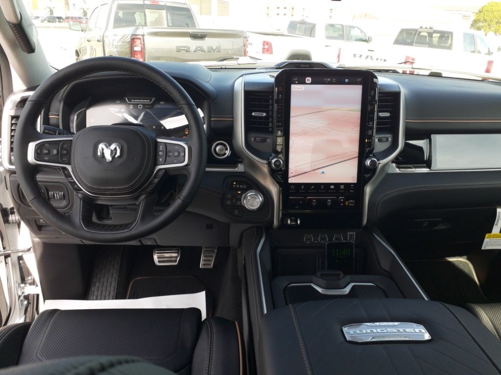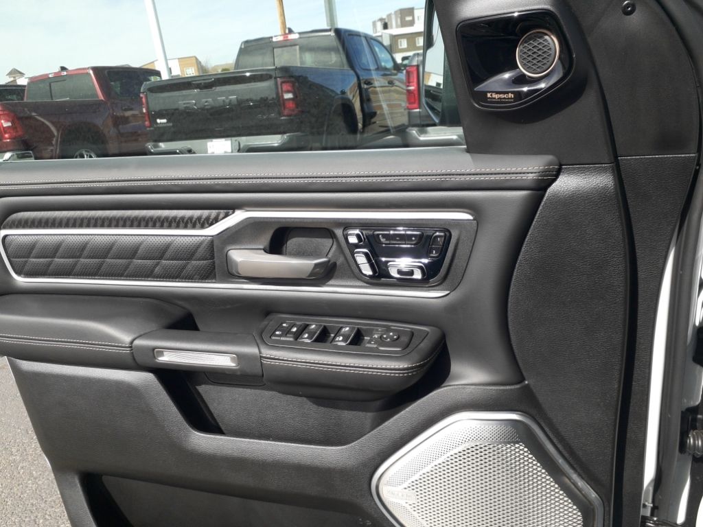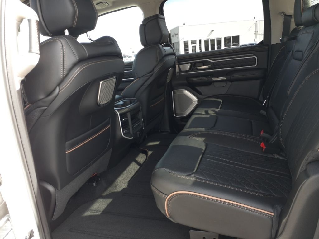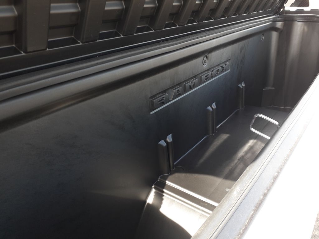 Bed Utility Group: Truck Bed Cargo Divider; MOPAR Deployable Bed Step; MOPAR 4 Adjustable Cargo Tie-Down Hooks; Exterior 115V AC Outlet,Quick Order Package 22V Tungsten,Ivory White Tri-Coat PC,Trailer Brake Control,MyFlexCare Service Plan,Intersection Collision Assist forward collision mitigation with left turn assist,Power open and close tailgate,Ventilated driver and front passenger seats,Integrated navigation system with voice activation,Blind Spot Detection,Keyfob remote start,Heated steering wheel,Uconnect w/Bluetooth handsfree wireless device connectivity,Apple CarPlay/Android Auto smart device wireless mirroring,Heated driver and front passenger seats,First and second-row sliding and tilting glass sunroof with express open/close activation sunshade,Leather front seat upholstery,MOPAR retractable rear step,Driver seat with 12-way directional controls,Front passenger seat with 12-way directional controls,RamBox integrated pickup box storage,Keyfob trunk control,14.4 inch primary display,Hands-off cruise control,Pedestrian Emergency Braking,4G LTE Wi-Fi Hot Spot mobile hotspot internet access,Rear mounted camera,Active Lane Management System,Adaptive cruise control with stop and go,Head-up display,Predictive brake assist system,Cruise control with steering wheel mounted controls,Ventilated rear seats,Heated rear seats,Primary monitor touchscreen,Cross Path Detection collision warning,Driver seat power reclining, lumbar support, cushion extension, seatback side bolster support, cushion tilt, fore/aft control and height adjustable control,Part and full-time 4WD,Hurricane 3L I-6 gasoline direct injection, DOHC, variable valve control, twin turbo, premium unleaded, engine with 540HP,Hurricane 3L I-6 DOHC,Front wireless smart device charging,Traffic Sign Recognition,Evasive Steer Assist evasion assist system,Intersection Collision Assist System front cross traffic warning,Smart key with hands-free access and push button start,Keyfob air suspension control,Keycard activated door locks,Aerial view camera,Smart device remote start,Push-button,Video-feed rearview mirror,Front passenger touchscreen,Wireless audio streaming,Smart device-as-key proximity door locks,Gauge cluster display size: 12.00