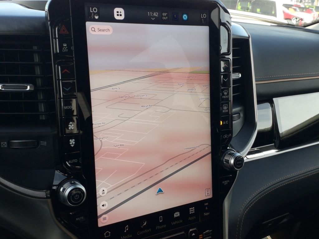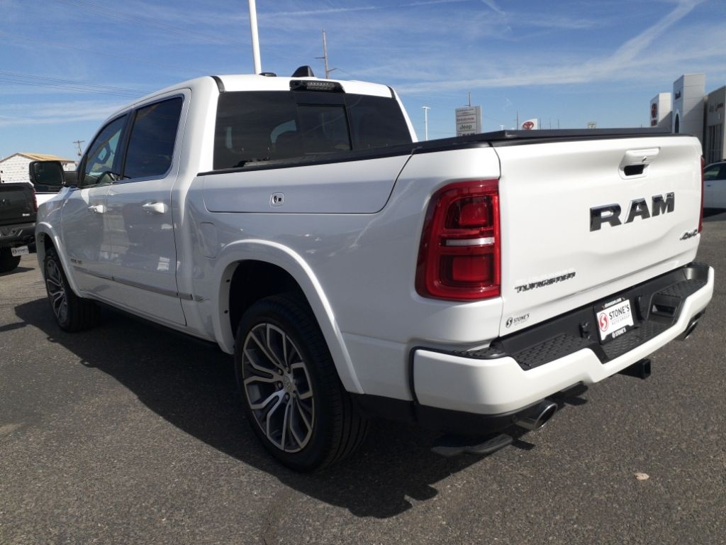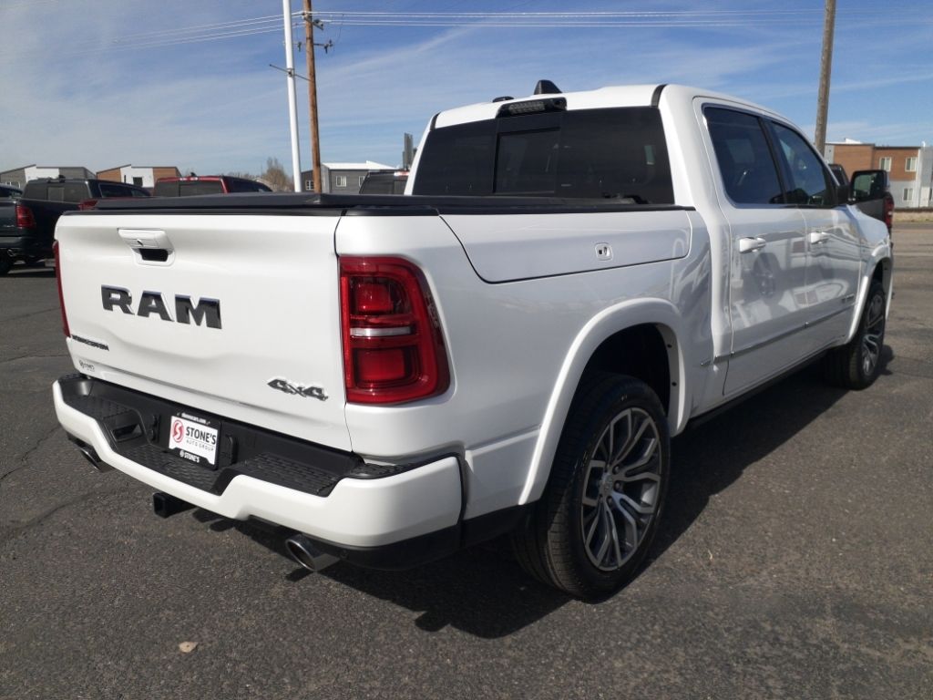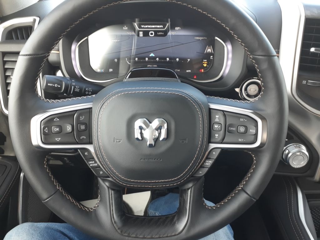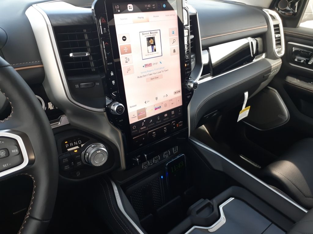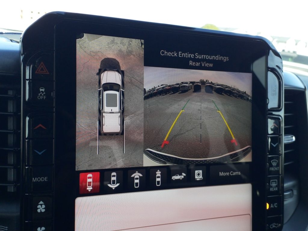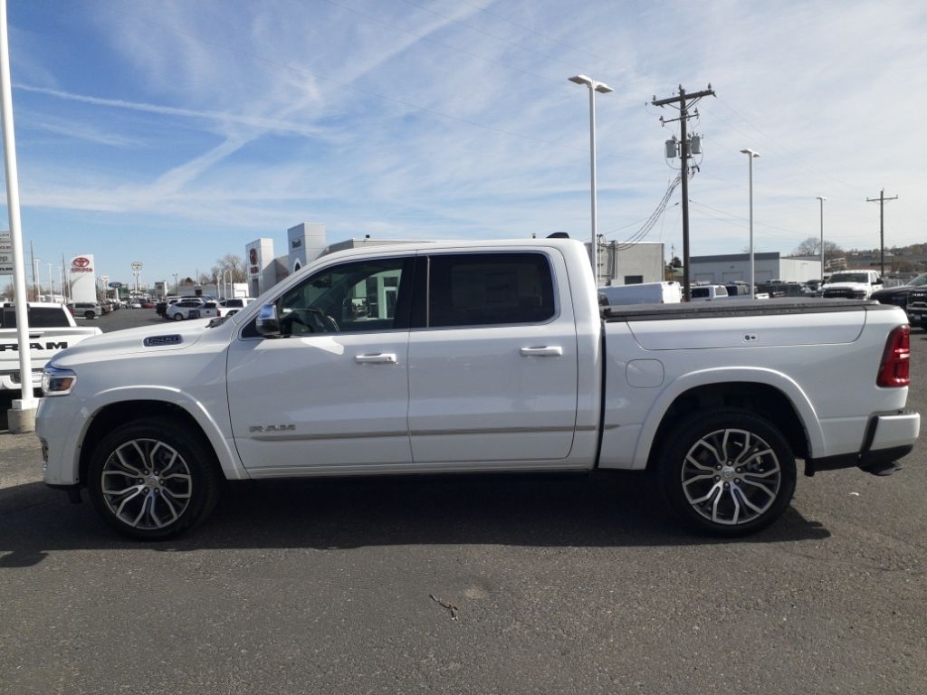 Bed Utility Group: Truck Bed Cargo Divider; MOPAR Deployable Bed Step; MOPAR 4 Adjustable Cargo Tie-Down Hooks; Exterior 115V AC Outlet,Quick Order Package 22V Tungsten,Ivory White Tri-Coat PC,Trailer Brake Control,MyFlexCare Service Plan,Intersection Collision Assist forward collision mitigation with left turn assist,Power open and close tailgate,Ventilated driver and front passenger seats,Integrated navigation system with voice activation,Blind Spot Detection,Keyfob remote start,Heated steering wheel,Uconnect w/Bluetooth handsfree wireless device connectivity,Apple CarPlay/Android Auto smart device wireless mirroring,Heated driver and front passenger seats,First and second-row sliding and tilting glass sunroof with express open/close activation sunshade,Leather front seat upholstery,MOPAR retractable rear step,Driver seat with 12-way directional controls,Front passenger seat with 12-way directional controls,RamBox integrated pickup box storage,Keyfob trunk control,14.4 inch primary display,Hands-off cruise control,Pedestrian Emergency Braking,4G LTE Wi-Fi Hot Spot mobile hotspot internet access,Rear mounted camera,Active Lane Management System,Adaptive cruise control with stop and go,Head-up display,Predictive brake assist system,Cruise control with steering wheel mounted controls,Ventilated rear seats,Heated rear seats,Primary monitor touchscreen,Cross Path Detection collision warning,Driver seat power reclining, lumbar support, cushion extension, seatback side bolster support, cushion tilt, fore/aft control and height adjustable control,Part and full-time 4WD,Hurricane 3L I-6 gasoline direct injection, DOHC, variable valve control, twin turbo, premium unleaded, engine with 540HP,Hurricane 3L I-6 DOHC,Front wireless smart device charging,Traffic Sign Recognition,Evasive Steer Assist evasion assist system,Intersection Collision Assist System front cross traffic warning,Smart key with hands-free access and push button start,Keyfob air suspension control,Keycard activated door locks,Aerial view camera,Smart device remote start,Push-button,Video-feed rearview mirror,Front passenger touchscreen,Wireless audio streaming,Smart device-as-key proximity door locks,Gauge cluster display size: 12.00