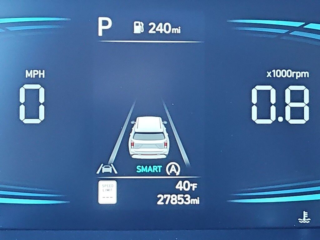 Option Group 01,Apple CarPlay & Android Auto smart device mirroring,Lane Following Assist (LFA) hands-on cruise control,Forward Collision-Avoidance Assist (FCA) w/Pedestrian/Cyclist Detection,Highway Driving Assist 1 (HDA 1) Automatic curve slowdown cruise control,Smart Cruise Control with Stop & Go (SCC),Brake assist system,Cruise control with steering wheel mounted controls,Power liftgate rear cargo door,Heated driver and front passenger seats,H-Tex leatherette front seat upholstery,Forward Collision-Avoidance Assist (FCA) w/Pedestrian, Cyclist & Junction-Turning Detection,Driver Attention Warning (DAW),Smart key with hands-free access and push button start,Lane Keep Assist (LKA),Blind Spot Collision Warning (BCW),Rear Cross-Traffic Collision-Avoidance Assist (RCCA),Traffic sign recognition with automatic speed limit assist,Keyfob keyless entry,High Beam Assist (HBA) auto high-beam headlights,Hill Assist Control (HAC),Fixed third-row seats,Blue Link vehicle tracker with vehicle slowdown,External memory control,Front wireless smart device charging,Mobile hotspot internet access,Proximity cargo area access release,Rear mounted camera,Keyfob remote start,Bluetooth handsfree wireless device connectivity,Electronic stability control system,Automatic climate control,Driver seat power reclining, lumbar support, cushion tilt, fore/aft control and height adjustable control,Automatic full-time AWD,Bluetooth wireless audio streaming,Integrated navigation system with voice activation,LED daytime running lights,Primary monitor touchscreen,Standard grade speakers,Lambda II 3.8L V-6 gasoline direct injection, DOHC, D-CVVT variable valve control, regular unleaded, engine with 291HP,Lambda II 3.8L V-6 DOHC,Blue Link restricted driving mode/alerts,Smart device remote start,Push-button,Automatic brake hold,Hyundai Digital Key 2.0 Touch smart device-as-key proximity door locks,Safe Exit Warning (SEW) external exit warning system,Dual-zone front climate control,Rear climate control system with separate controls,Manual fold into floor third-row seat,Immobilizer