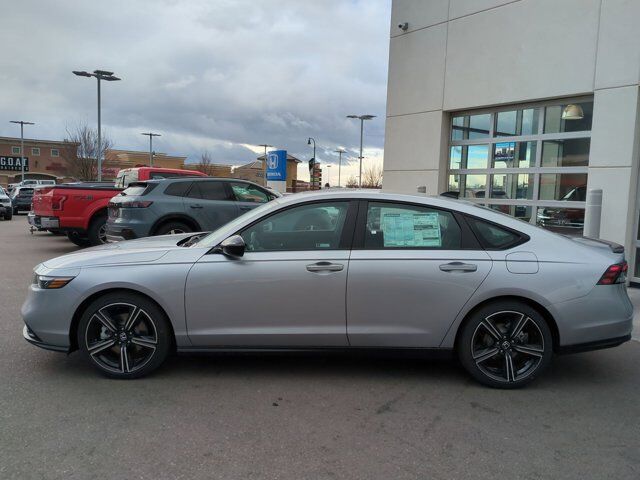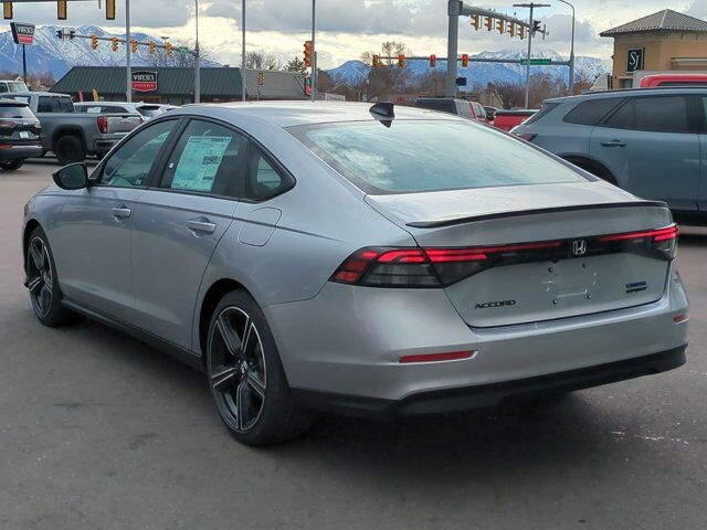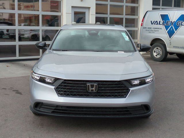 Ken Garff Honda is proud to offer this fantastic-looking 2026 Honda Accord Hybrid Sport in Solar Silver Metallic. FWD Sport CVT2.0L I4 DOHC 16V, 4-Wheel Disc Brakes, 8 Speakers, ABS brakes, Adaptive Cruise Control: Adaptive Cruise Control (ACC) with Low-Speed Follow, Air Conditioning, Alloy wheels, AM/FM radio, Apple CarPlay/Android Auto, Auto High-beam Headlights, Automatic temperature control, Blind Spot Information (BSI) System warning, Brake assist, Bumpers: body-color, Compass, Delay-off headlights, Driver door bin, Driver vanity mirror, Dual front impact airbags, Dual front side impact airbags, Electronic Stability Control, Emergency communication system: HondaLink, Exterior Parking Camera Rear, Fabric Seat Trim, Four wheel independent suspension, Front anti-roll bar, Front Bucket Seats, Front Center Armrest, Front dual zone A/C, Front reading lights, Fully automatic headlights, Heated Front Bucket Seats, Heated front seats, Illuminated entry, Knee airbag, Lane departure: Lane Keeping Assist System (LKAS) active, Leather Shift Knob, Leather steering wheel, Low tire pressure warning, Occupant sensing airbag, Outside temperature display, Overhead airbag, Overhead console, Panic alarm, Passenger door bin, Passenger vanity mirror, Power door mirrors, Power driver seat, Power moonroof, Power steering, Power windows, Radio data system, Radio: 180-Watt Audio System, Rear anti-roll bar, Rear reading lights, Rear seat center armrest, Rear side impact airbag, Rear window defroster, Remote keyless entry, Security system, Speed control, Speed-sensing steering, Speed-Sensitive Wipers, Split folding rear seat, Spoiler, Steering wheel mounted audio controls, Telescoping steering wheel, Tilt steering wheel, Traction control, Trip computer, Variably intermittent wipers, Wheels: 19 x 8.5J Berlina Black, 2.0L I4 DOHC 16V.46/41 City/Highway MPG Fuel Economy estimates are based on EPA mileage ratings. Actual mileage will vary depending on driving conditions, habits, vehicle maintenance, and other factors. Advertised Prices do not include any dealer installed options and advertised prices exclude leases.
