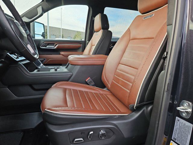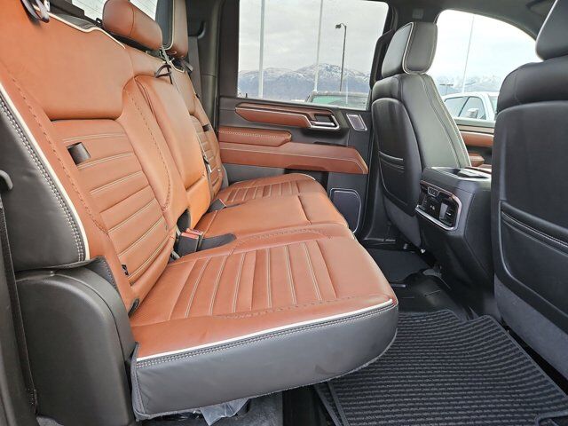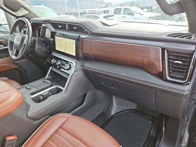 LICENSE PLATE KIT FRONT,AUDIO SYSTEM 13.4 DIAGONAL PREMIUM GMC INFOTAINMENT SYSTEM with Google built in apps such as navigation and voice assistance includes color touch-screen multi-touch display AM/FM stereo Bluetooth streaming audio for music and most phones; featuring wireless Android Auto and Apple CarPlay capability for compatible phones. (STD),GVWR 12 100 LBS. (5488 KG) WITH SINGLE REAR WHEELS (STD),TRANSMISSION ALLISON 10-SPEED AUTOMATIC (STD),LPO MULTIPRO AUDIO SYSTEM BY KICKER (dealer-installed),WHEELS 20 (50.8 CM) ULTRA-BRIGHT MACHINED ALUMINUM WHEELS WITH GLOSS BLACK INSERTS with Black painted pockets (STD),DENALI ULTIMATE PREFERRED EQUIPMENT GROUP includes standard equipment,ENGINE DURAMAX 6.6L TURBO-DIESEL V8 B20-DIESEL COMPATIBLE (470 hp [350.5 kW] @ 2800 rpm 975 lb-ft of torque [1322 Nm] @ 1600 rpm) (STD),REAR AXLE 3.42 RATIO,TITANIUM RUSH METALLIC,ALPINE UMBER FULL GRAIN LEATHER SEATING SURFACES,SEATS FRONT BUCKET WITH CENTER CONSOLE (STD),Back-Up Camera,Heads-Up Display,Lane Departure Warning,Front Collision Mitigation,Front Collision Warning,Automatic Highbeams,Tow Hitch,Turbocharged,Keyless Start,Locking/Limited Slip Differential,Four Wheel Drive,Tow Hooks,Power Steering,ABS,4-Wheel Disc Brakes,Aluminum Wheels,Tires - Front All-Terrain,Tires - Rear All-Terrain,Conventional Spare Tire,Sun/Moonroof,Generic Sun/Moonroof,Running Boards/Side Steps,Power Retractable Running Boards,Bed Liner,Daytime Running Lights,LED Headlights,Automatic Highbeams,Fog Lamps,Heated Mirrors,Power Mirror(s),Integrated Turn Signal Mirrors,Power Folding Mirrors,Intermittent Wipers,Variable Speed Intermittent Wipers,Rain Sensing Wipers,Privacy Glass,Rear Defrost,Sliding Rear Window,Integrated Tailgate Step,Premium Sound System,AM/FM Stereo,Navigation System,MP3 Capability,Bluetooth Connection,Auxiliary Audio Input,Smart Device Integration,Satellite Radio,Requires Subscription,Satellite Radio,Requires Subscription,Premium Sound System,Bluetooth Connection,Bluetooth Connection,Smart Device Integration,WiFi Hotspot,Bucket Seats,Leather Seats,Power Driver Seat,Driver Adjustable Lumbar,Seat-Massage,Power Passenger Seat,Passenger Adjustable Lumbar,Seat-Massage,Pass-Through Rear Seat,Rear Bench Seat,Heated Front Seat(s),Heated Front Seat(s),Cooled Front Seat(s),Heated Rear Seat(s),Mirror Memory,Seat Memory,Floor Mats,Floor Mats,Leather Steering Wheel,Heated Steering Wheel,Adjustable Steering Wheel,Steering Wheel Audio Controls,Heads-Up Display,Tire Pressure Monitor,Power Windows,Power Windows,Power Door Locks,Remote Engine Start,Keyless Entry,Power Door Locks,Keyless Start,Cruise Control,Adaptive Cruise Control,Universal Garage Door Opener,Security System,MP3 Capability,Auxiliary Audio Input,MP3 Capability,Auxiliary Audio Input,Climate Control,Multi-Zone A/C,A/C,Rear Defrost,Auto-Dimming Rearview Mirror,Back-Up Camera,Front Collision Mitigation,Front Collision Warning,Traction Control,Stability Control,Daytime Running Lights,Daytime Running Lights,Driver Air Bag,Passenger Air Bag,Front Side Air Bag,Front Head Air Bag,Rear Head Air Bag,Passenger Air Bag Sensor,Telematics,Requires Subscription,Rear Parking Aid,Back-Up Camera,Aerial View Display System,Back-Up Camera,Cross-Traffic Alert,Blind Spot Monitor,Lane Departure Warning,Front Collision Warning,Front Collision Mitigation,Driver Restriction Features,Tire Pressure Monitor,Tire Pressure Monitor,Telematics,Requires Subscription